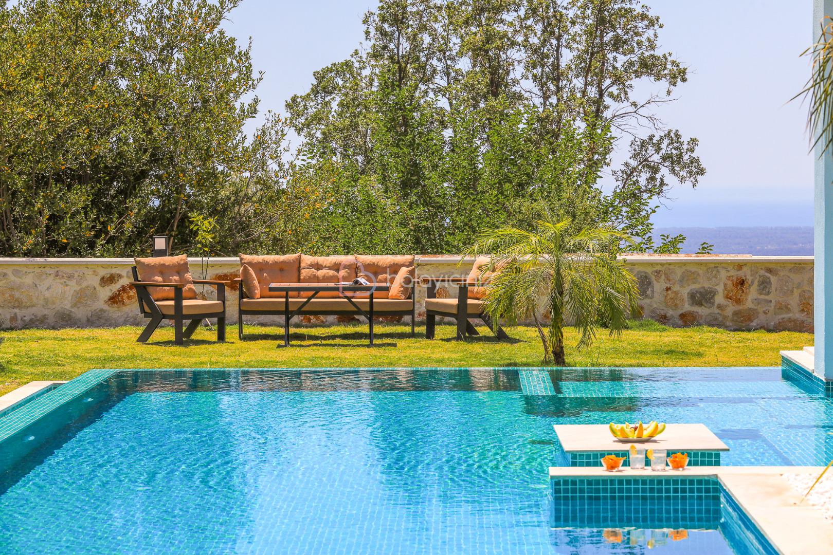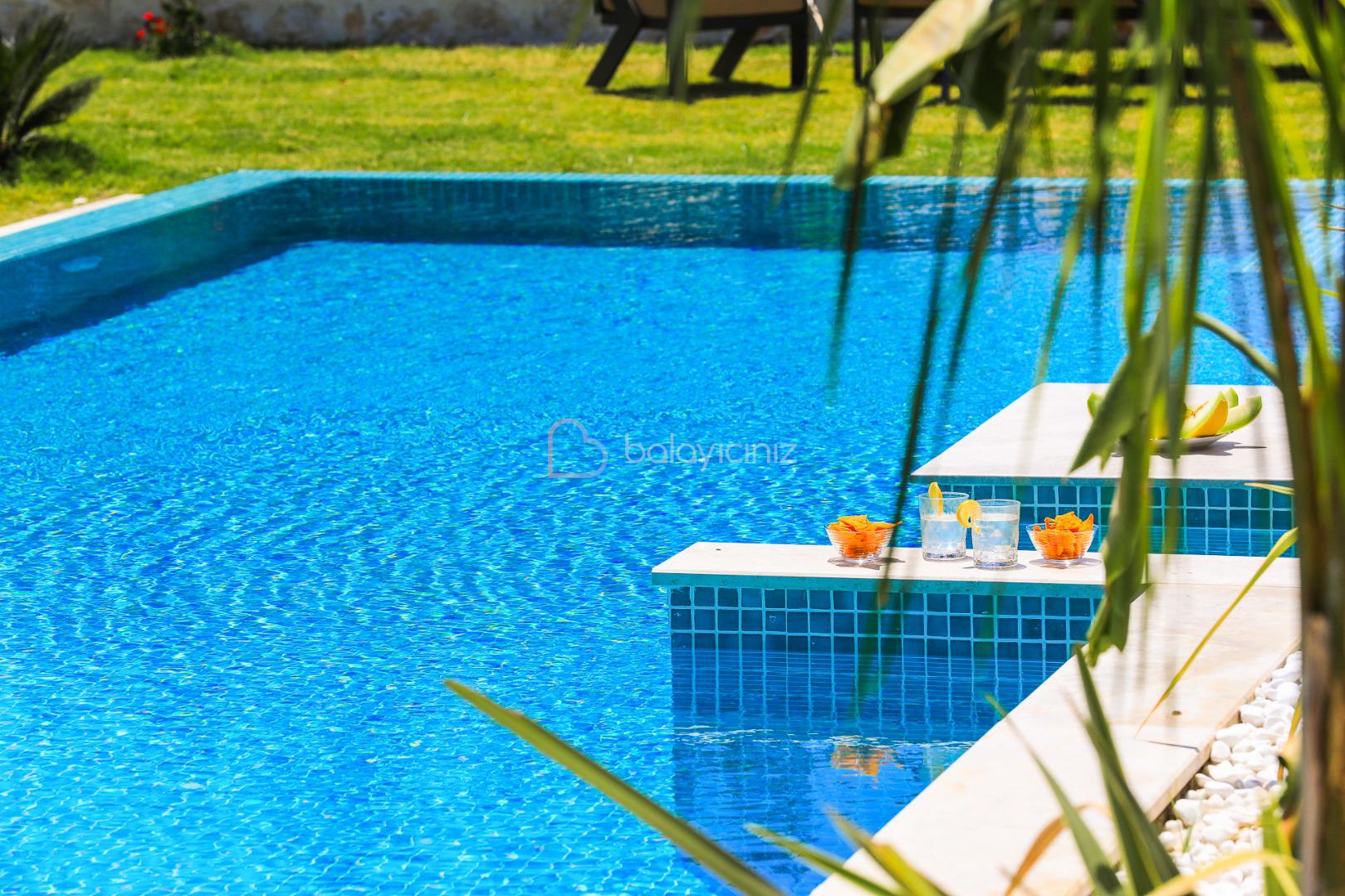 Havuz manzarası karsısında oturma grubumuz, orta sehpa, televizyon, uydu alıcısı, klima, internet, havuz alanına çıkış bulunmaktadır.