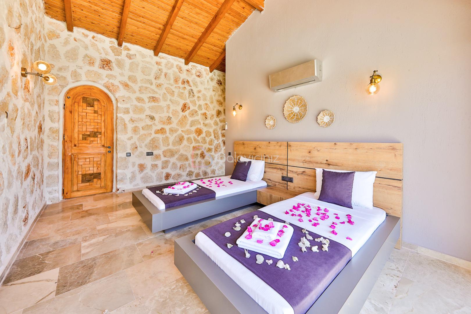 3. Yatak Odası: 2 adet tek kişilik yatak, makyaj masası, elbise dolabı, klima, banyo, tuvalet, havuz alanına çıkış bulunmaktadır.