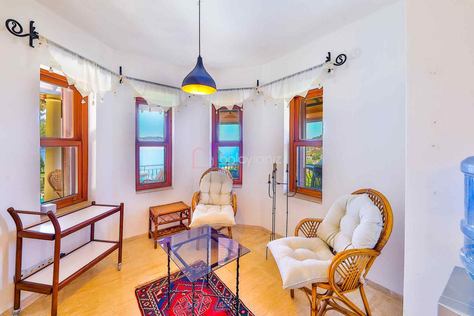 Deniz Manzarası, oturma grubu, uydu alıcı, televizyon, klima, orta sehpa, havuz kenarına çıkış ve internet, ortak tuvalaet bulunmaktadır.