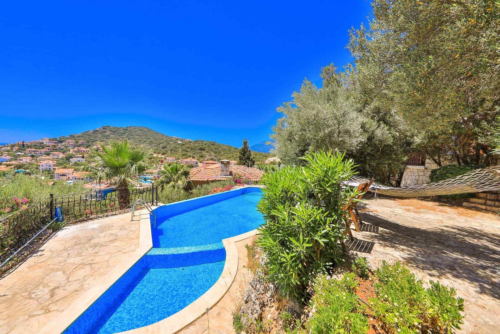 Boy: 10 m x En: 4 m genişliğinde derinliği 150 cm olan özel yüzme havuzu bulunmaktadır. Villamızın havuz ve havuz terası geniş olup deniz manzarasına sahiptir.