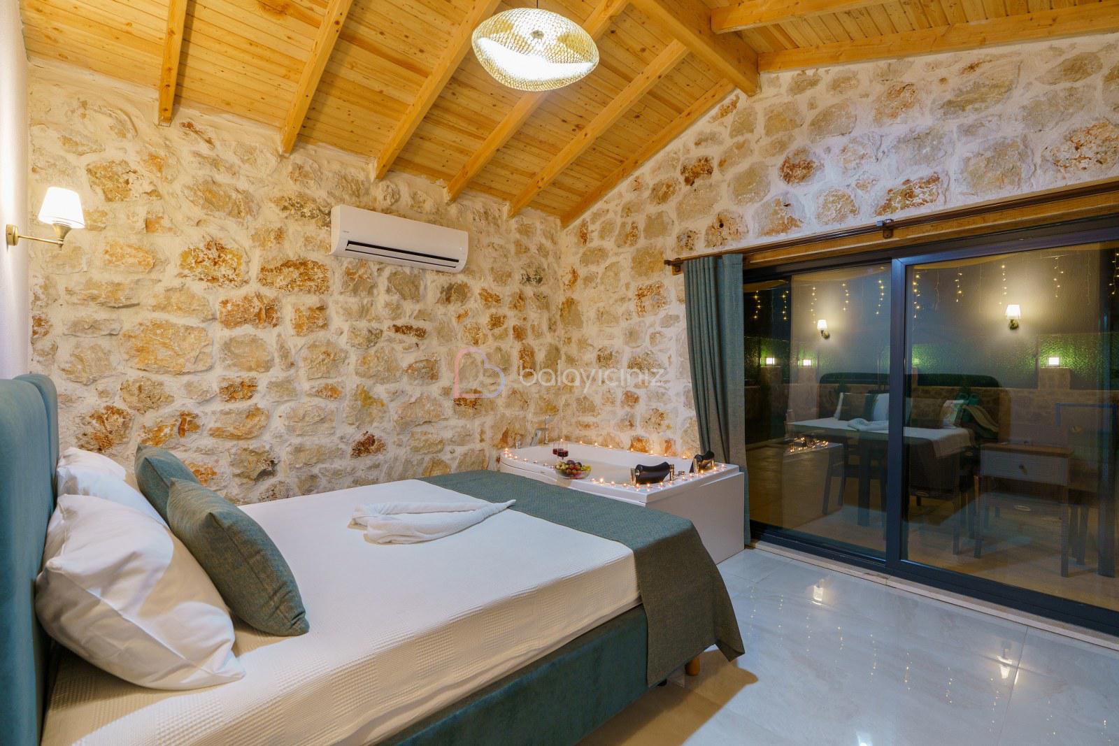 1.Yatak Odası: 1 adet çift kişilik yatak, jakuzi, klima, komodin, elbise dolabı, tuvalet banyo bulunmaktadır.