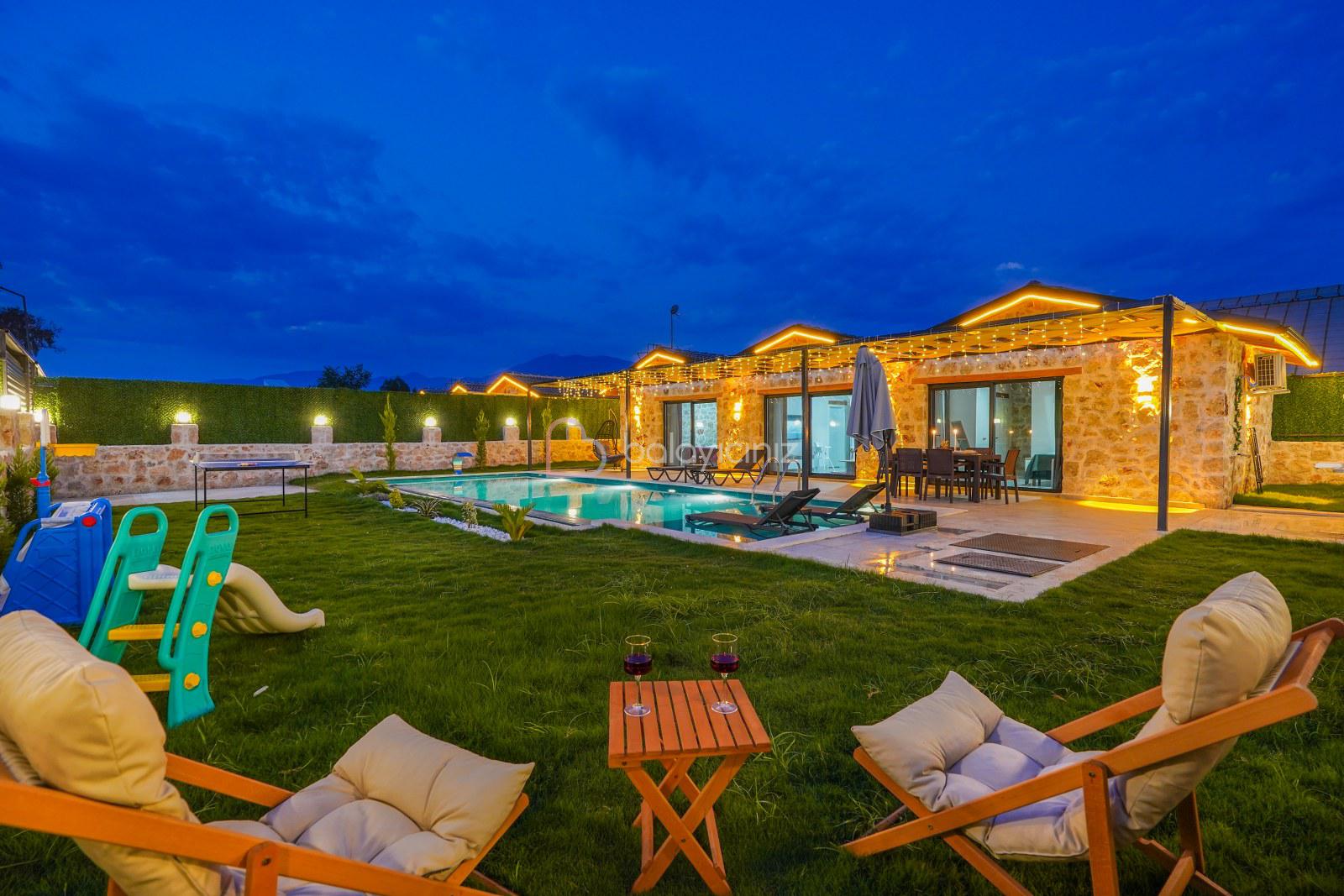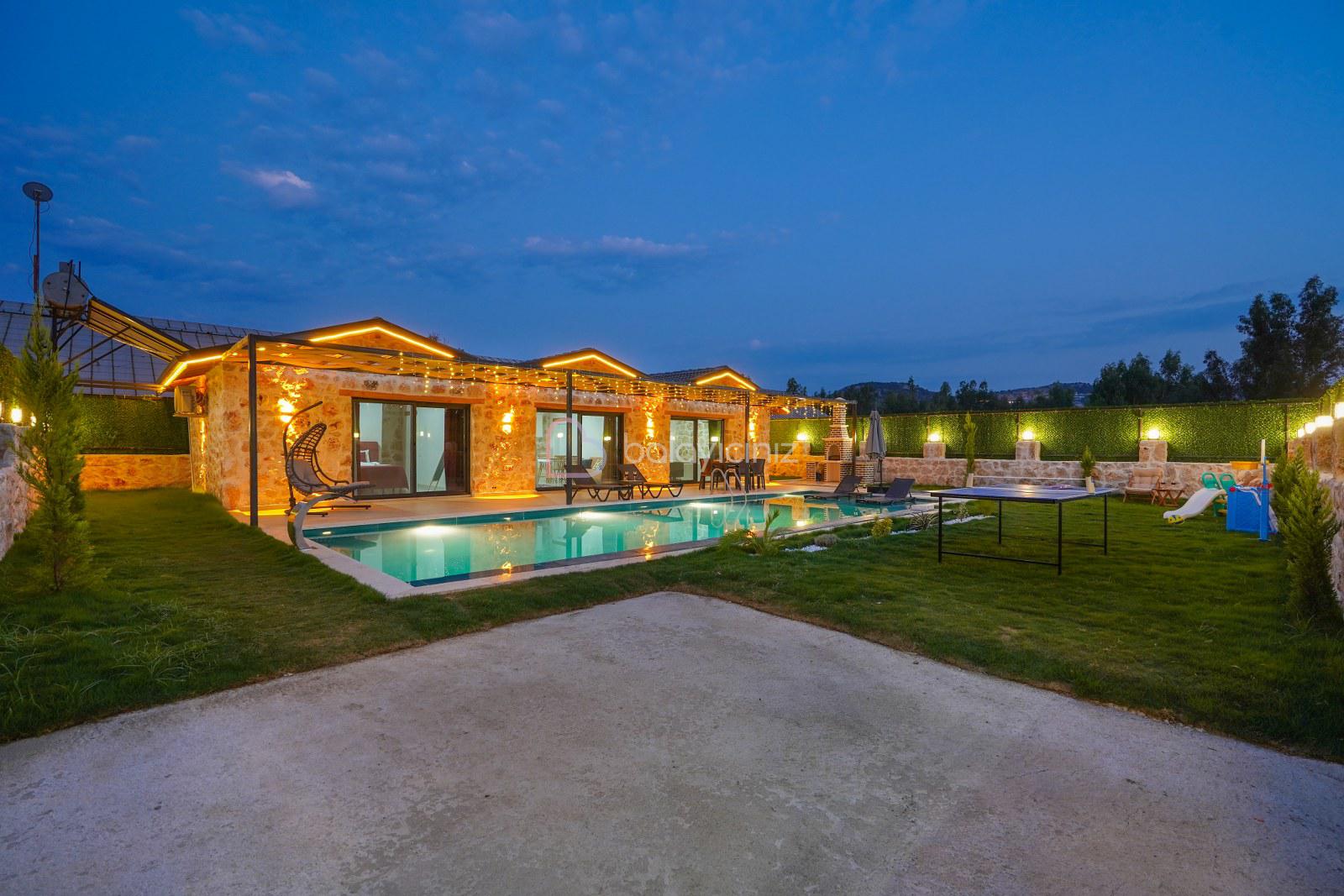 Yemek HizmetiVilla Deniz Yıldızı 1, Kalkan/Patara bölgesinde konumlanan, korunaklı, 4 kişi kapasiteli 2 yatak odalı doğa içerisinde jakuzili tatil villasıdır. Konforlu ve modern şeklinde tasarlanan Villa Deniz Yıldızı 1, doğa içerisinde, şehir hayatının gürültüsünden uzak, yemyeşil geniş bahçe alanına sahip, özel yüzme havuzu jakuzi, barbekü alanı bulunmaktadır. Tüm yılın yorgunluğunu sessiz sakin bir konumda atabileceğiniz, ihtiyacınız olan her şeyin mevcut olduğu Villa Deniz Yıldızı 1'de sizlere sadece tatilinizin tadını çıkarmak kalıyor.