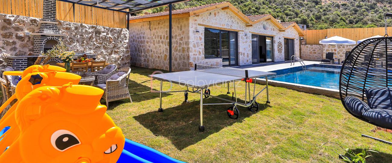 Terasında özel yüzme havuzu, şezlonglar, güneş şemsiyeleri, masa ve sandalyeler, pergole, mangal bulunmaktadır.