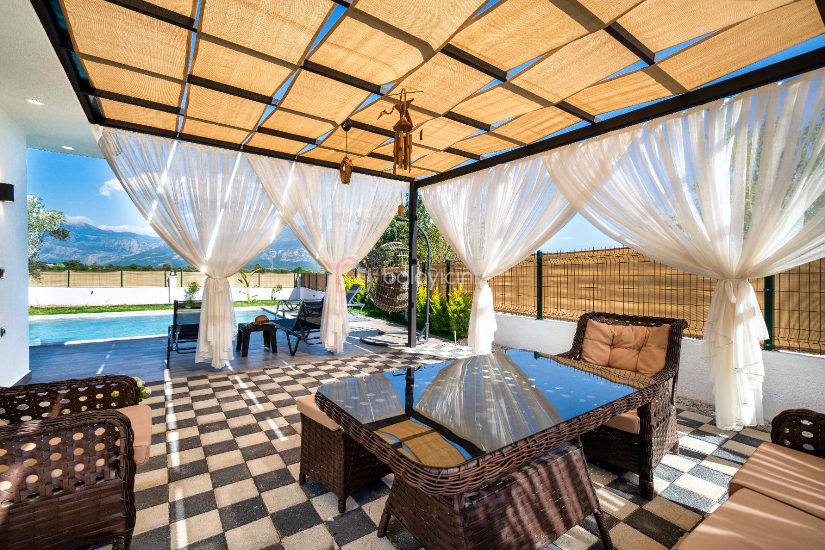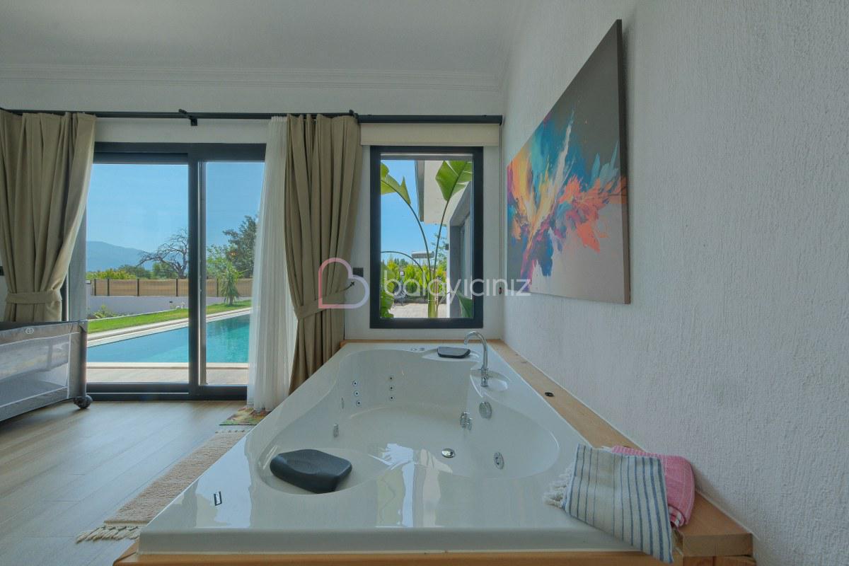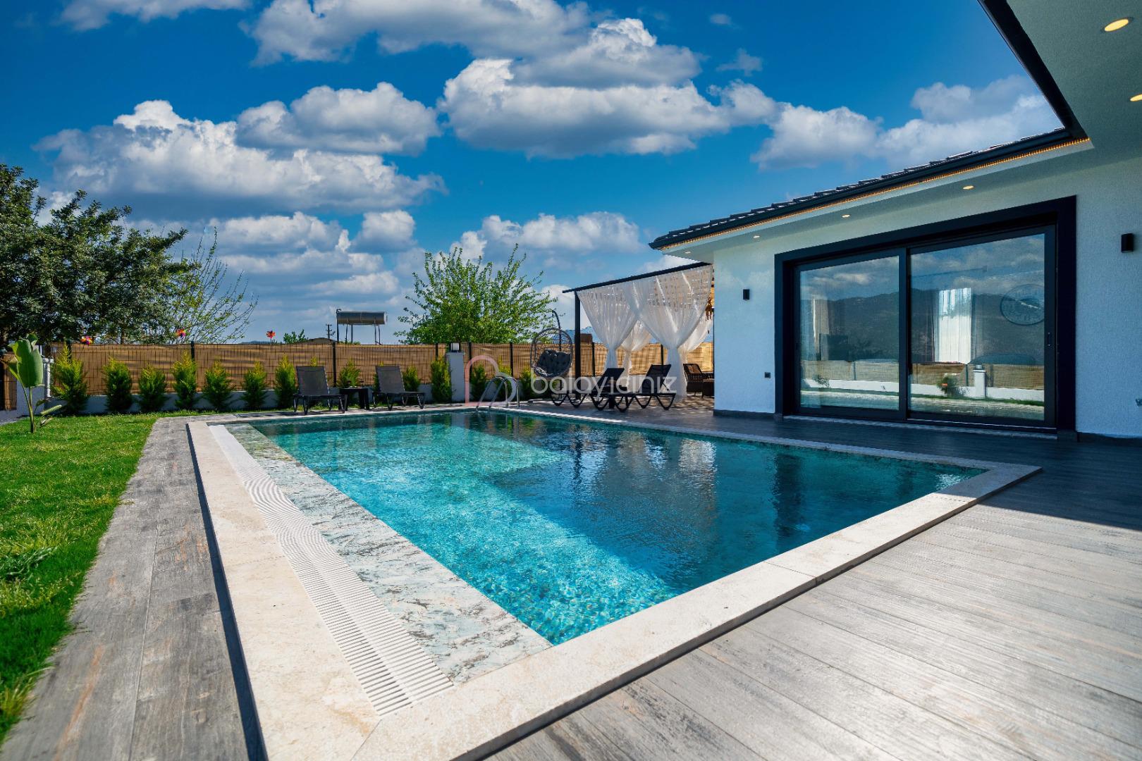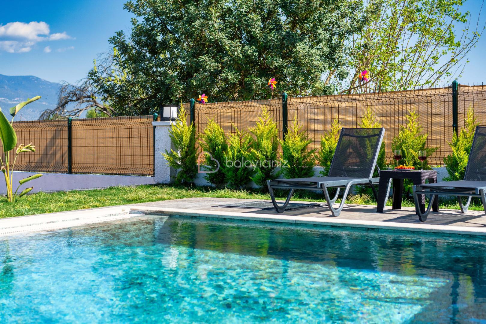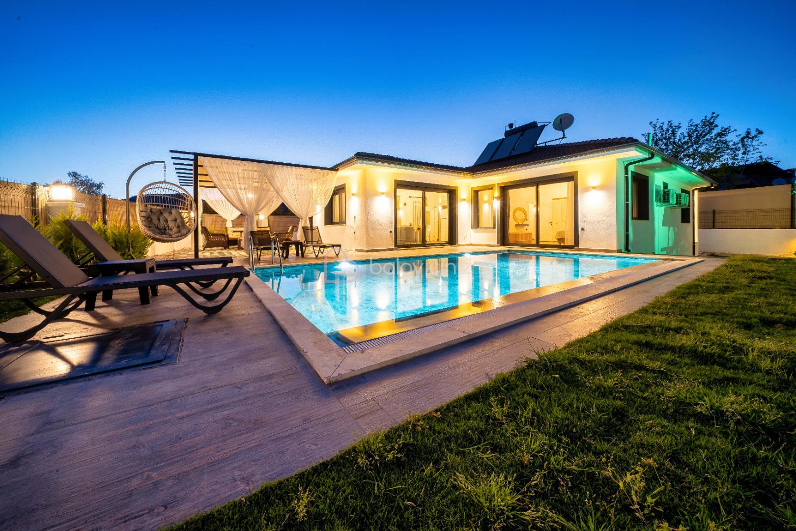 Yemek HizmetiVilla Elysian, Fethiye / Seydikemer bölgesinde doğa içerisinde konumlanan müstakil bahçeli, jakuzili, muhafazakar villamızdır. Modern mimariye sahip bu villamızda 3 adet yatak odası ile 6 kişi konaklama kapasitesine sahiptir. Yemyeşil bir atmasforde bahçe ve havuz alanına sahip olan Villa Elysian, rahatlık ve konfor ön planda tutularak dizayn edilmiştir. Modern salonu ile tam donanımlı mutfağı ile ihtiyacınız olan her şey düşünülmüştür. Geniş aileler, kalabalık arkadaş grupları için ideal bir seçenek olup sizlere sadece unutulmaz bir tatilin tadını çıkarmak kalıyor.