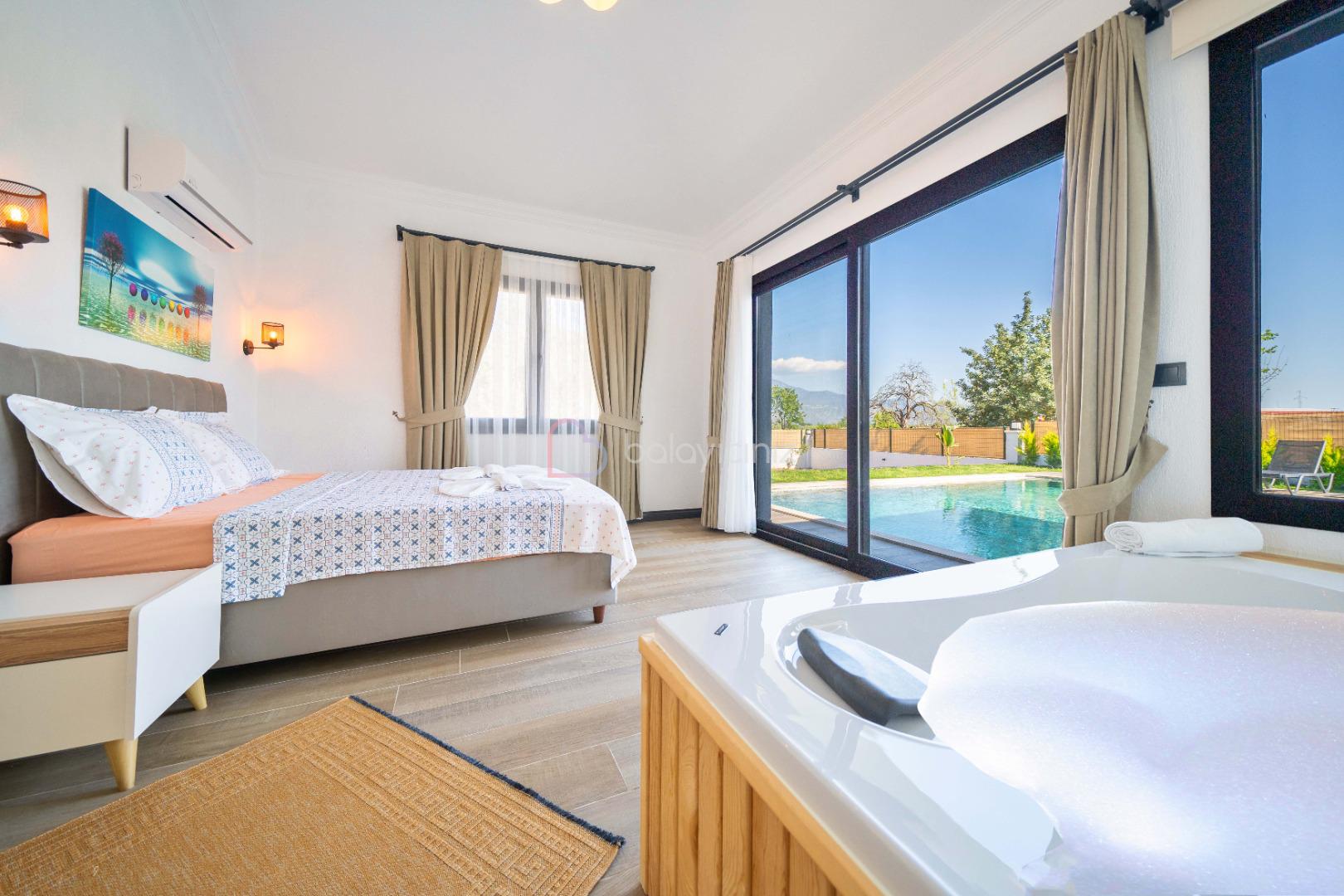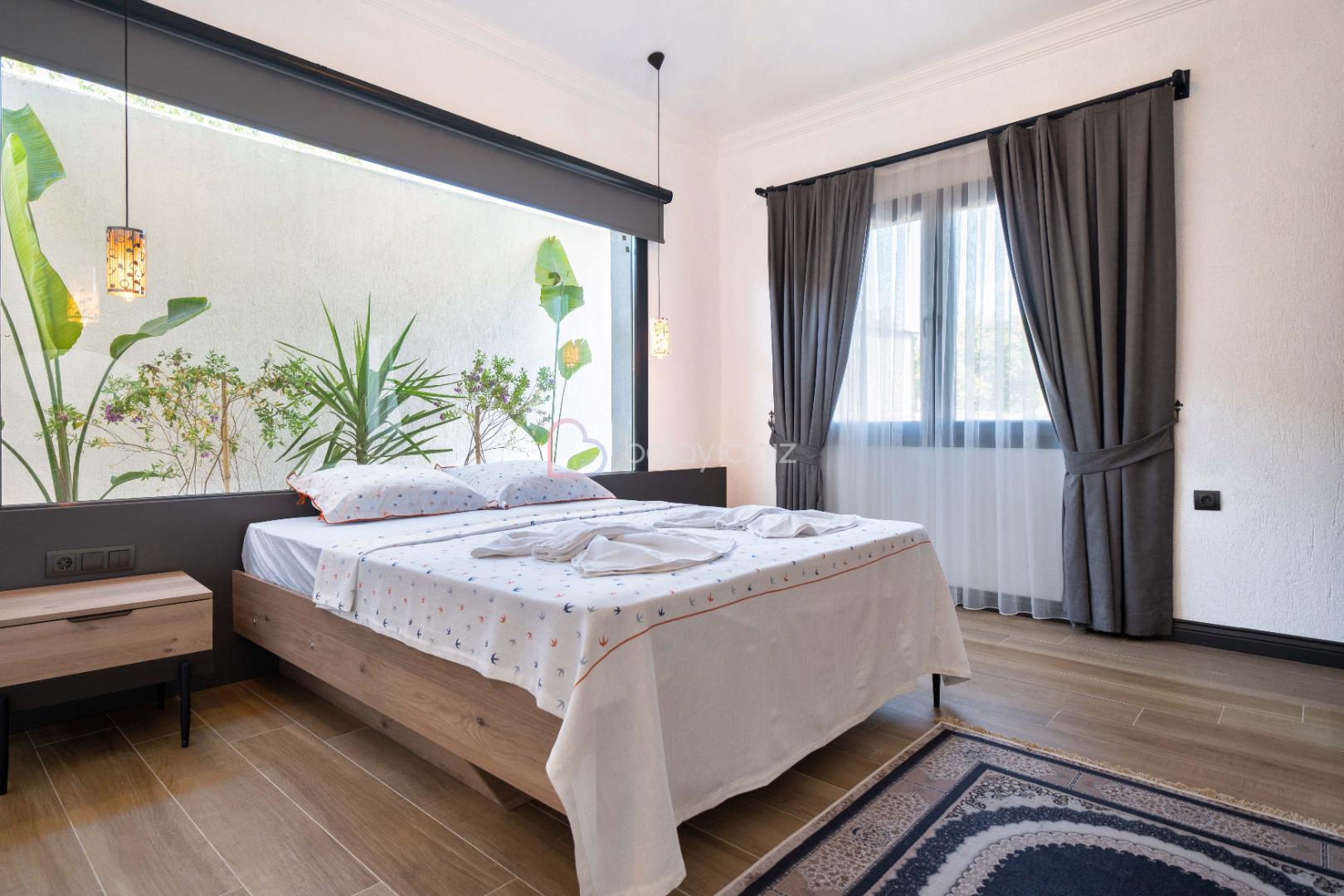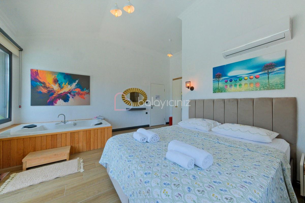 2.Yatak Odasi: 1adet çift kişilik yatak, elbise dolabı, komodin, makyaj masası, klima, jakuzi, banyo ve tuvalet bulunmaktadir.