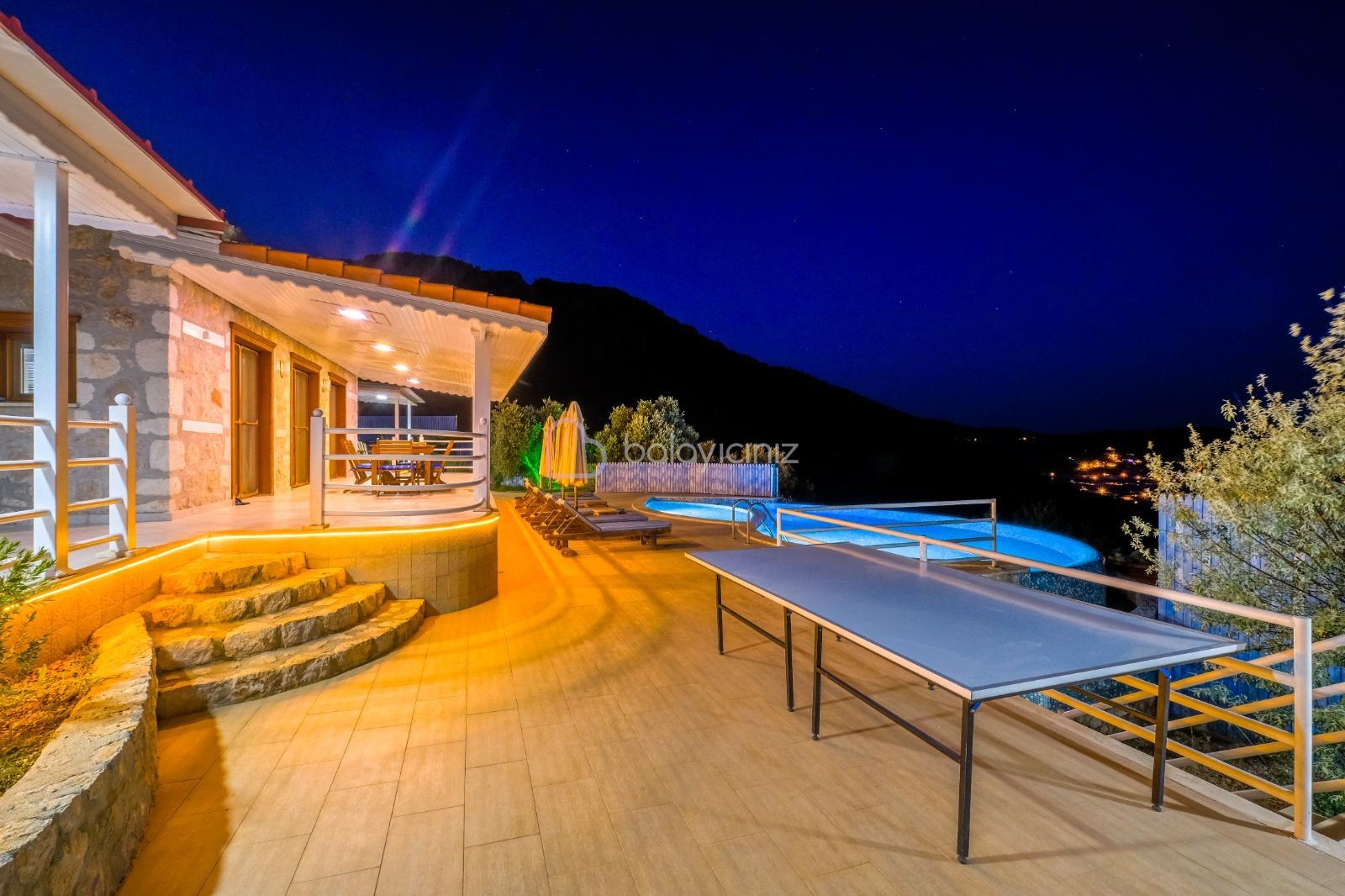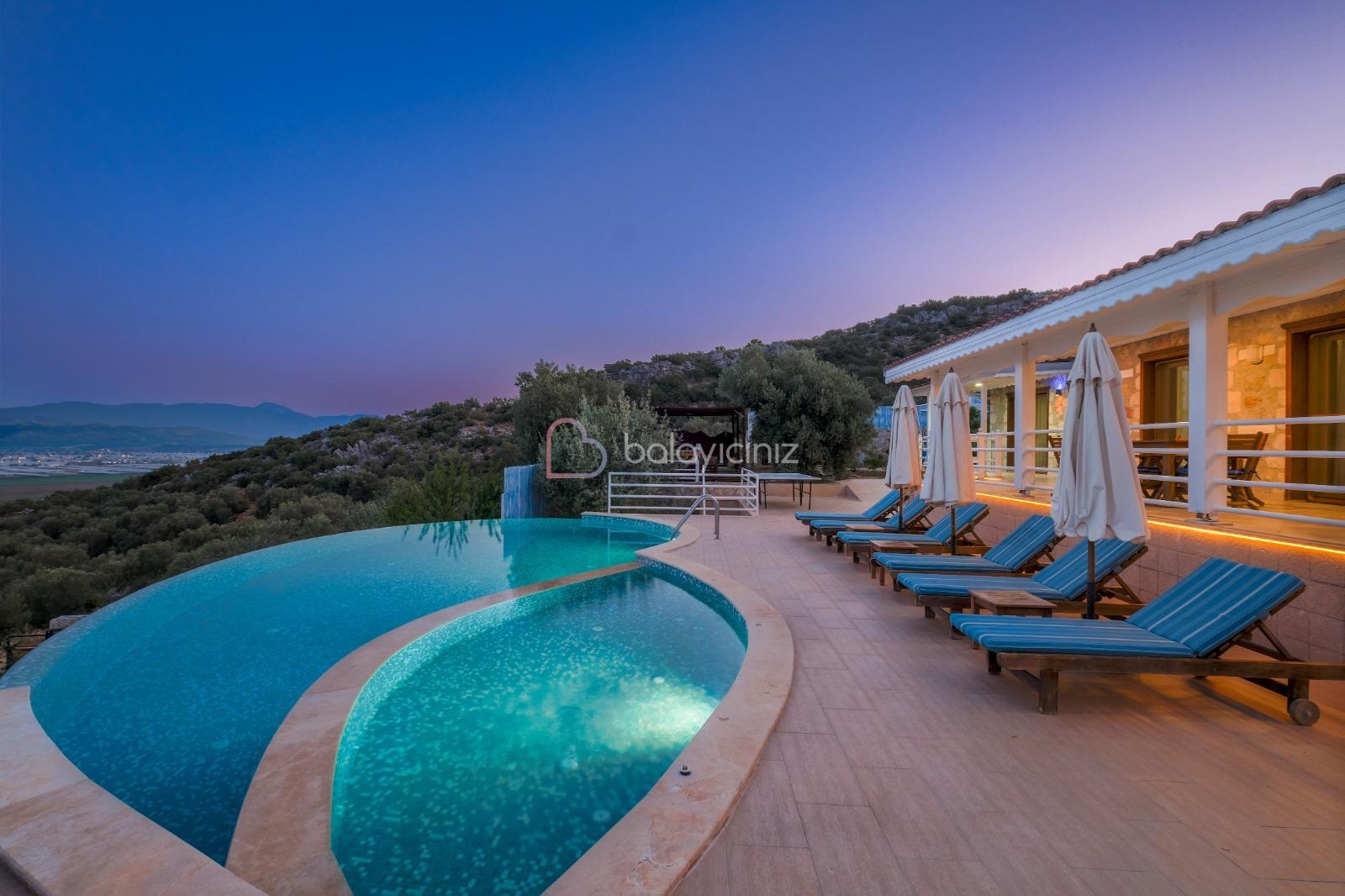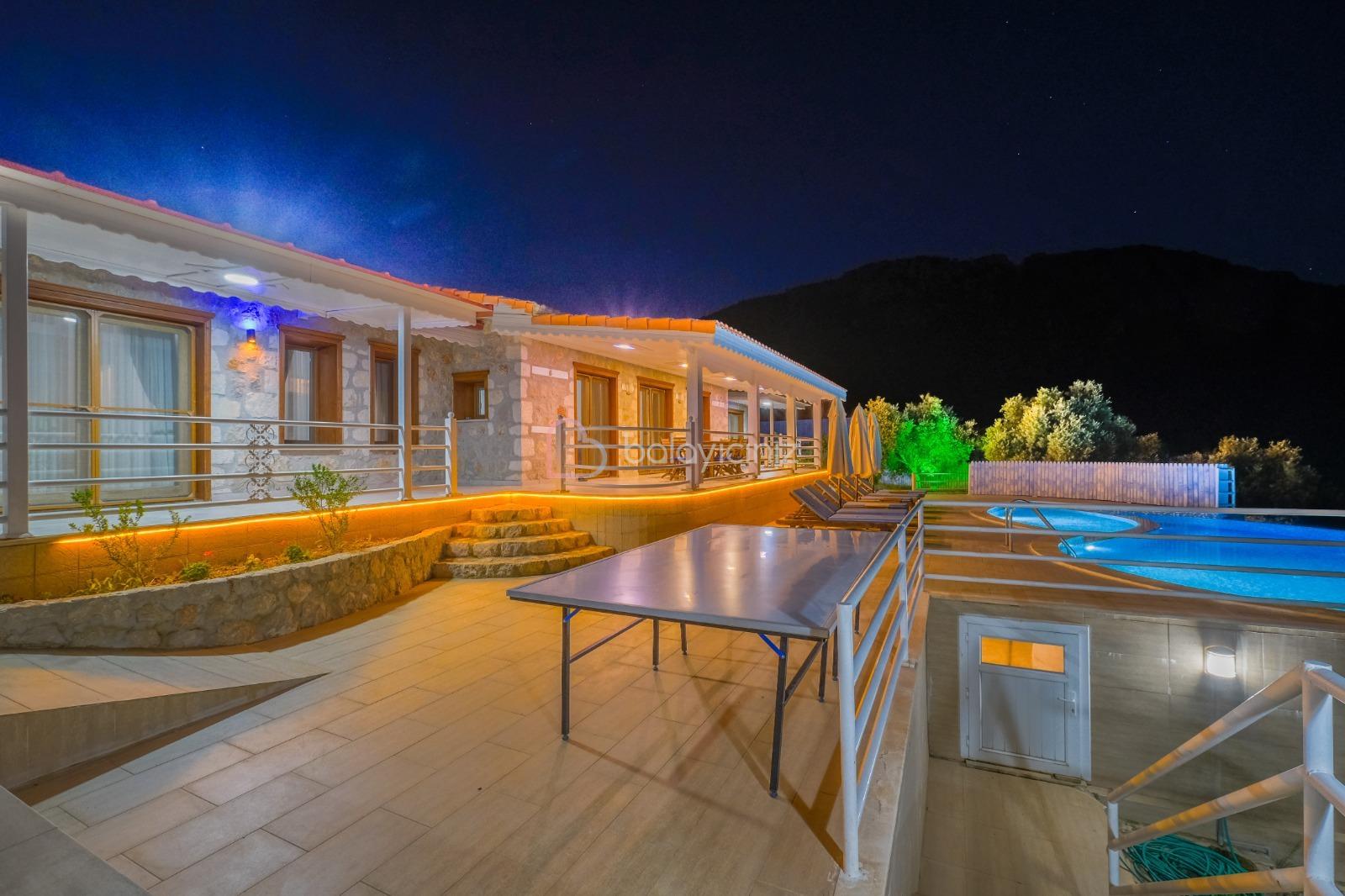 Villa Hüma, Kalkan Üzümlü mevkiinde bulunan korunaklı, jakuzili, doğa ve deniz manzaralı, özel havuzlu villadır. Villamız otantik bir konseptin modern tas mimari ile birleşimi olarak sunuluyor. Balayı çiftlerimize, kalabalık geniş aile, arkadaş grupları için şehir gürültüsünden, gözlerden uzak doğa içerisinde tatil imkânı sunmaktadır. Villamızı özel havuzu dışarıdan görünmeyecek şekilde kapatılmış olup sizlere ayrıcalıklı tatil imkânı sunmaktadır.