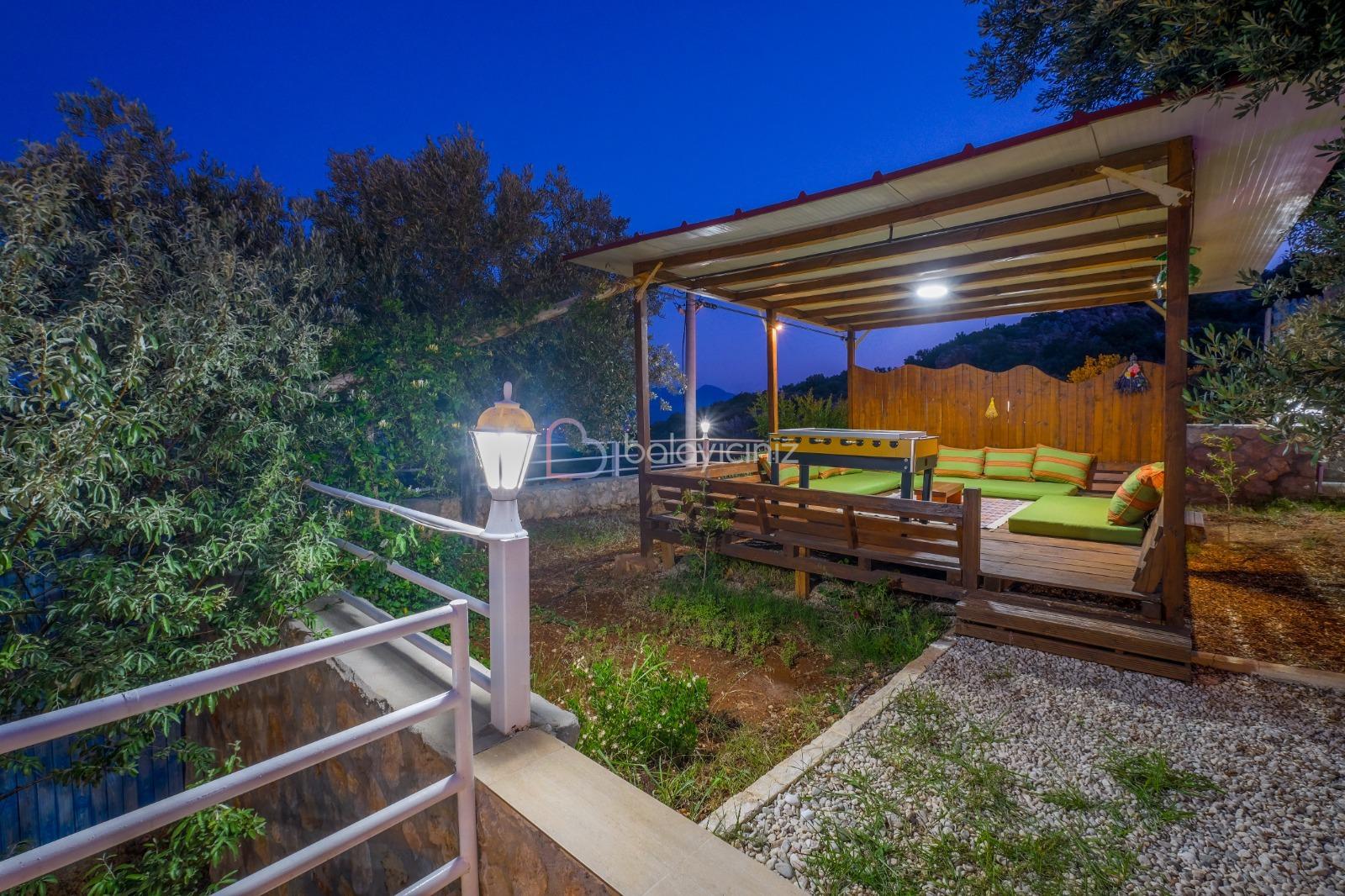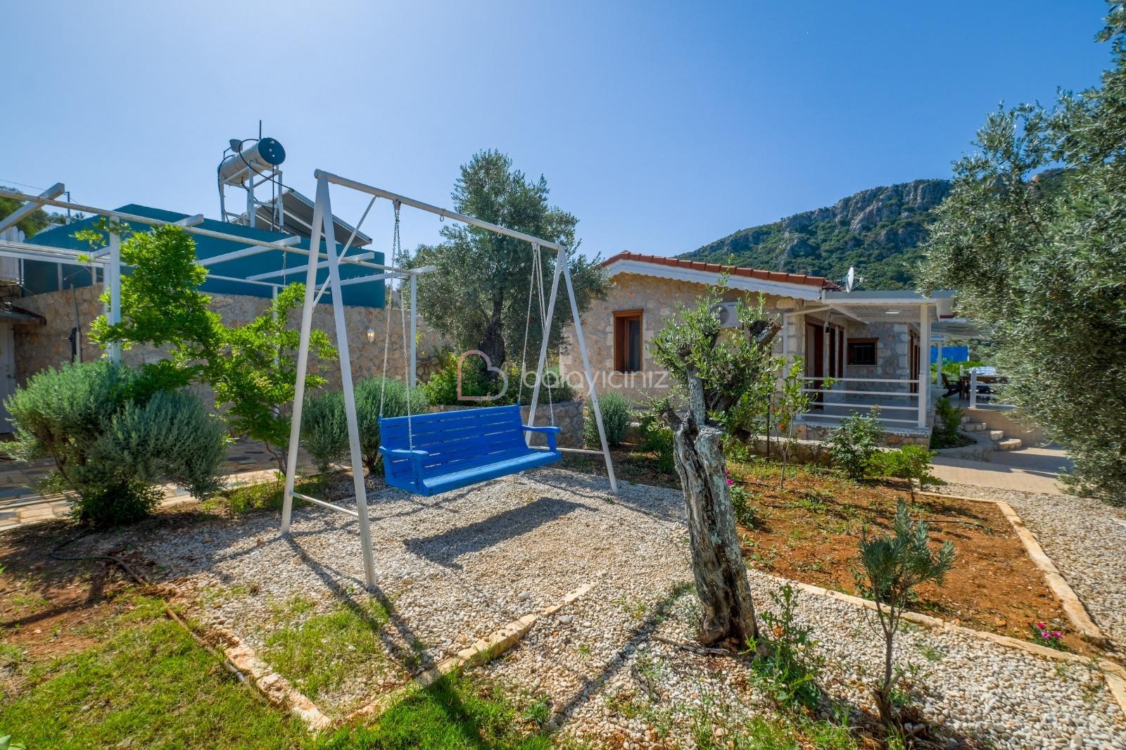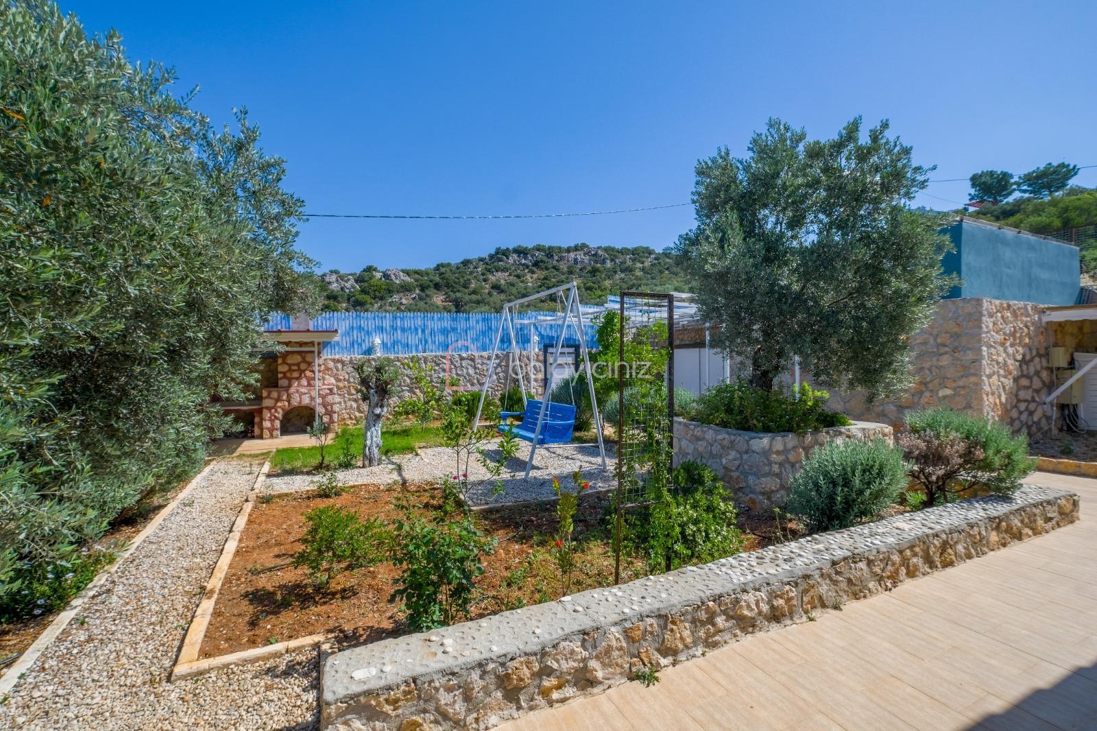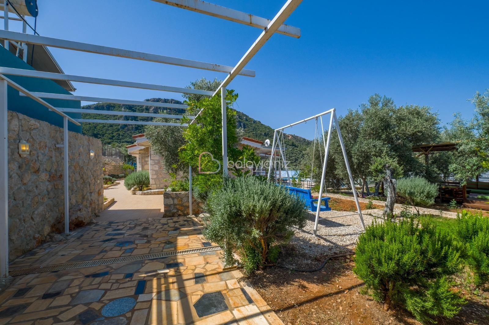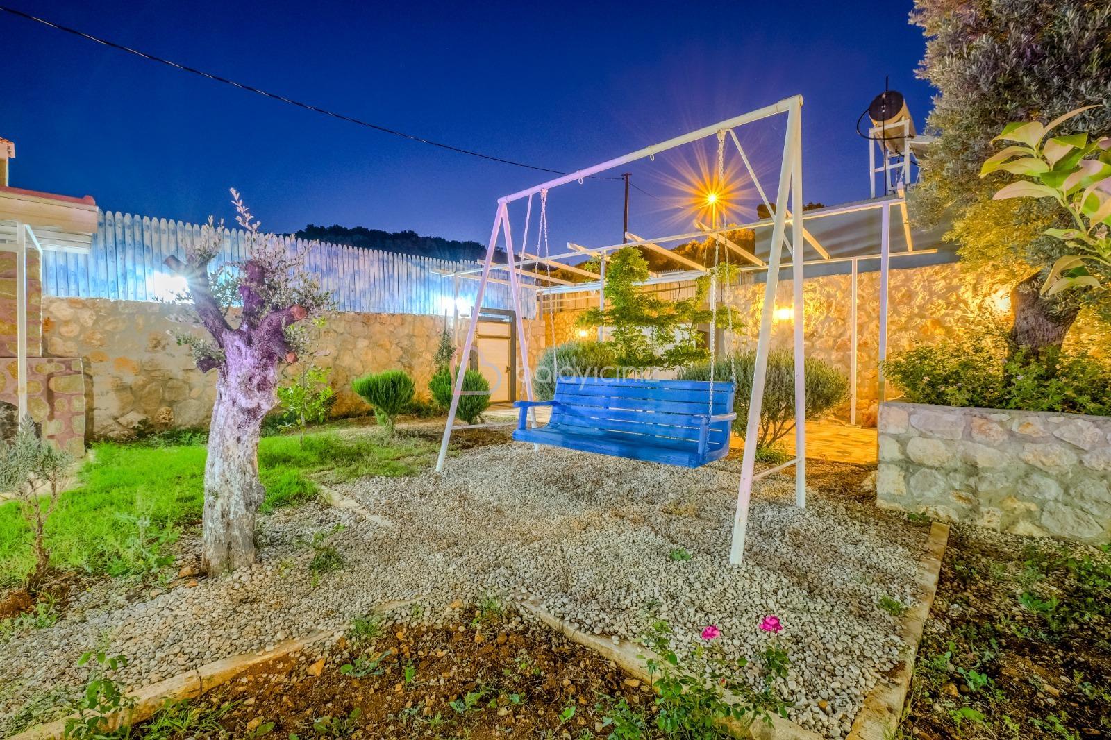 Korunaklı yüzme havuzu, şezlong, şemsiye, masa ve sandalye, salıncak, mangal bulunmaktadır.