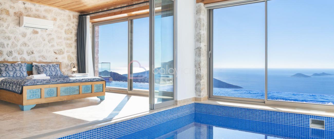 Villa Joy, muhteşem deniz ve adalar manzarasının hâkim olduğu Kalkan, Kördere mevkiinde yer almaktadır. 3 yatak odalı 6 kişilik kapasiteye uygun muazzam bir villadır. İç dekorasyonu son derece zevkli döşenmiş villamızın, ısıtmalı iç havuzunun yanı sıra büyük bir jakuzisi de bulunmaktadır. Güneşlenme alanı ve havuz alanı dışarıdan görülmeyecek şekilde kısmi korunaklı olarak planlanmıştır, bu sebepten dolayı muhafazakâr aileler ve arkadaş grupları için ideal bir tercih olacaktır.