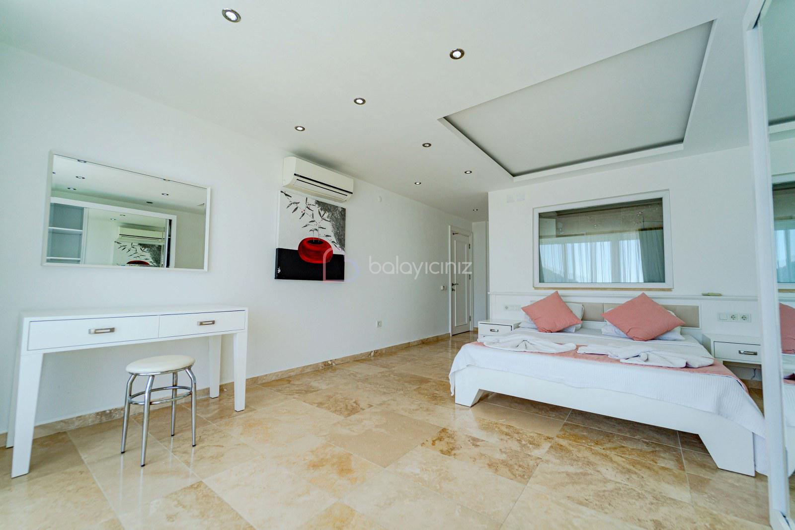 Yatak Odası 5: Suit doğa manzaralı odada çift kişilik yatak, komodin, klima, makyaj masası, elbise dolabı, ebeveyn banyosu bulunmaktadır.