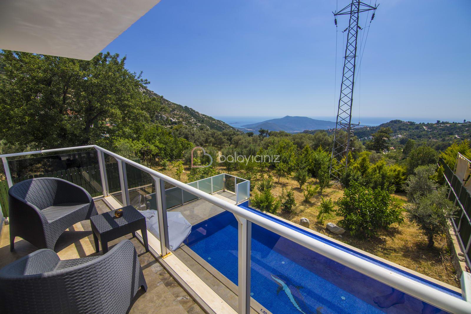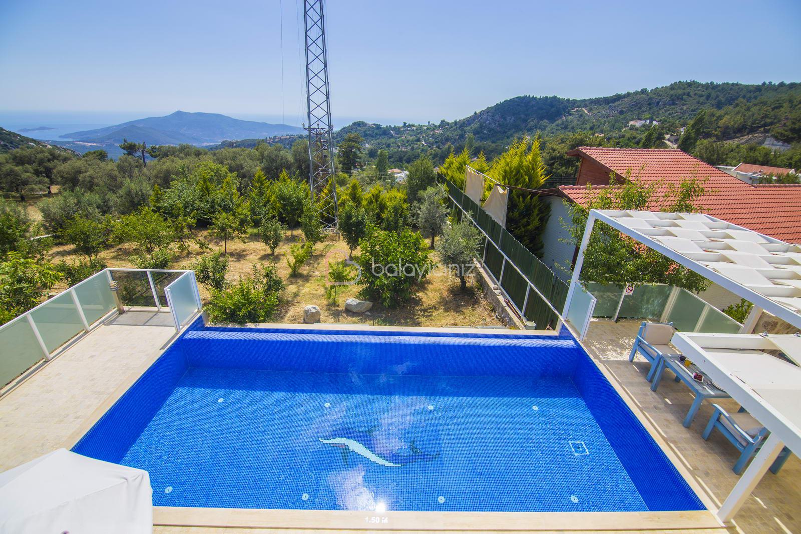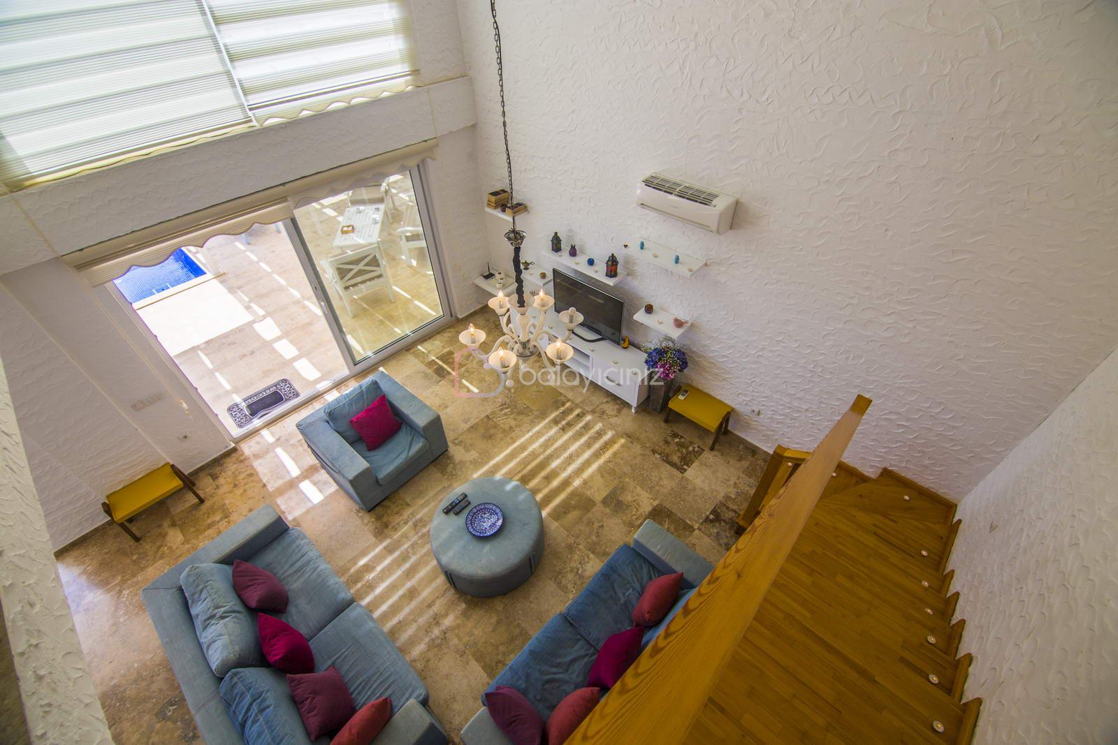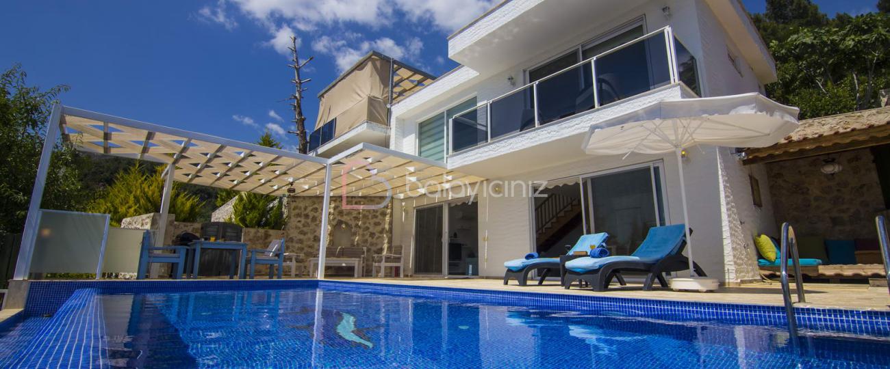 Not : Villanın güneşlenme terası ve havuzunun dış taraftan görünmemesi için gerekli önlemler alınmıştır fakat villanın diğer bölümlerinin görünürlüğü kesin olarak garanti edilememektedir.