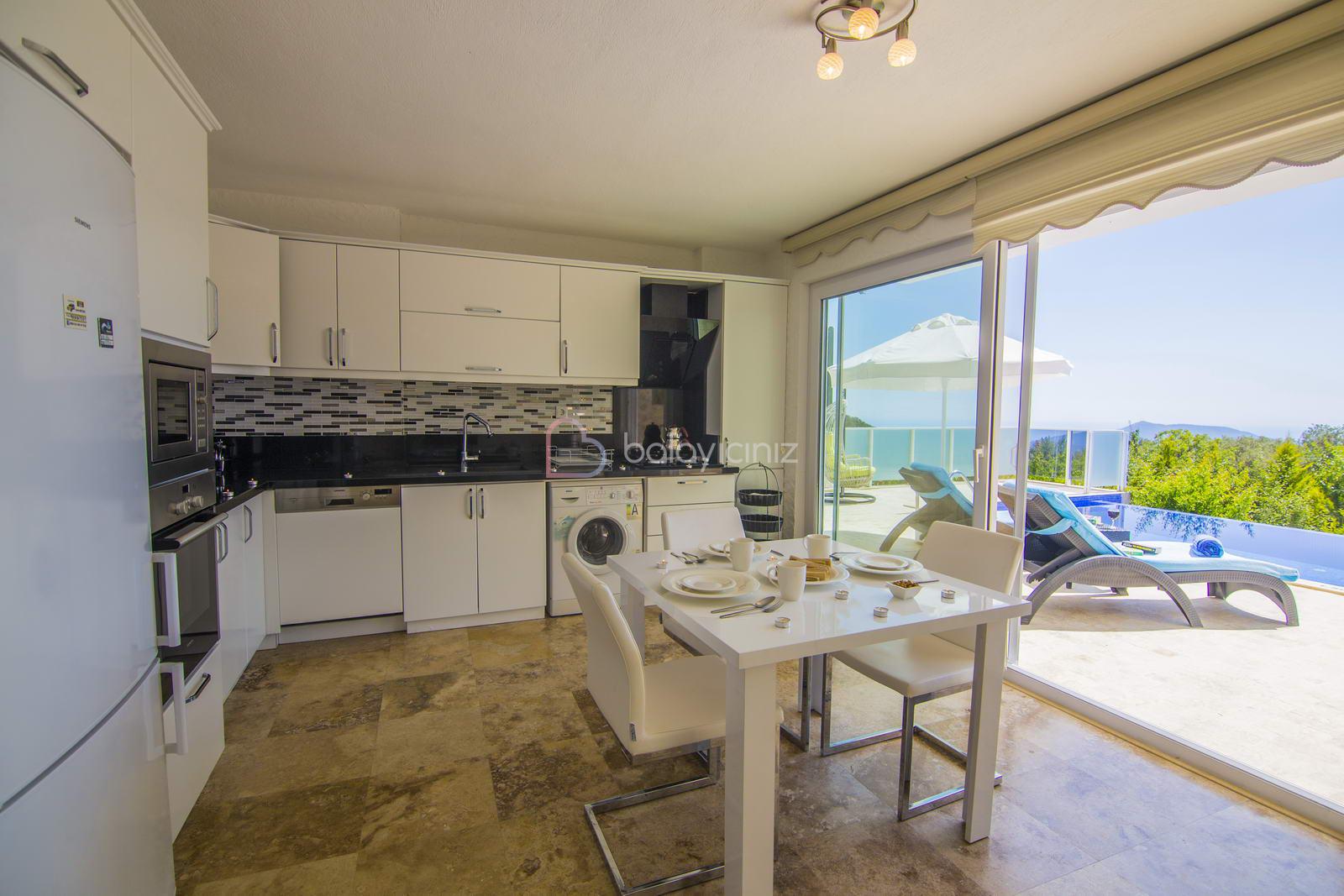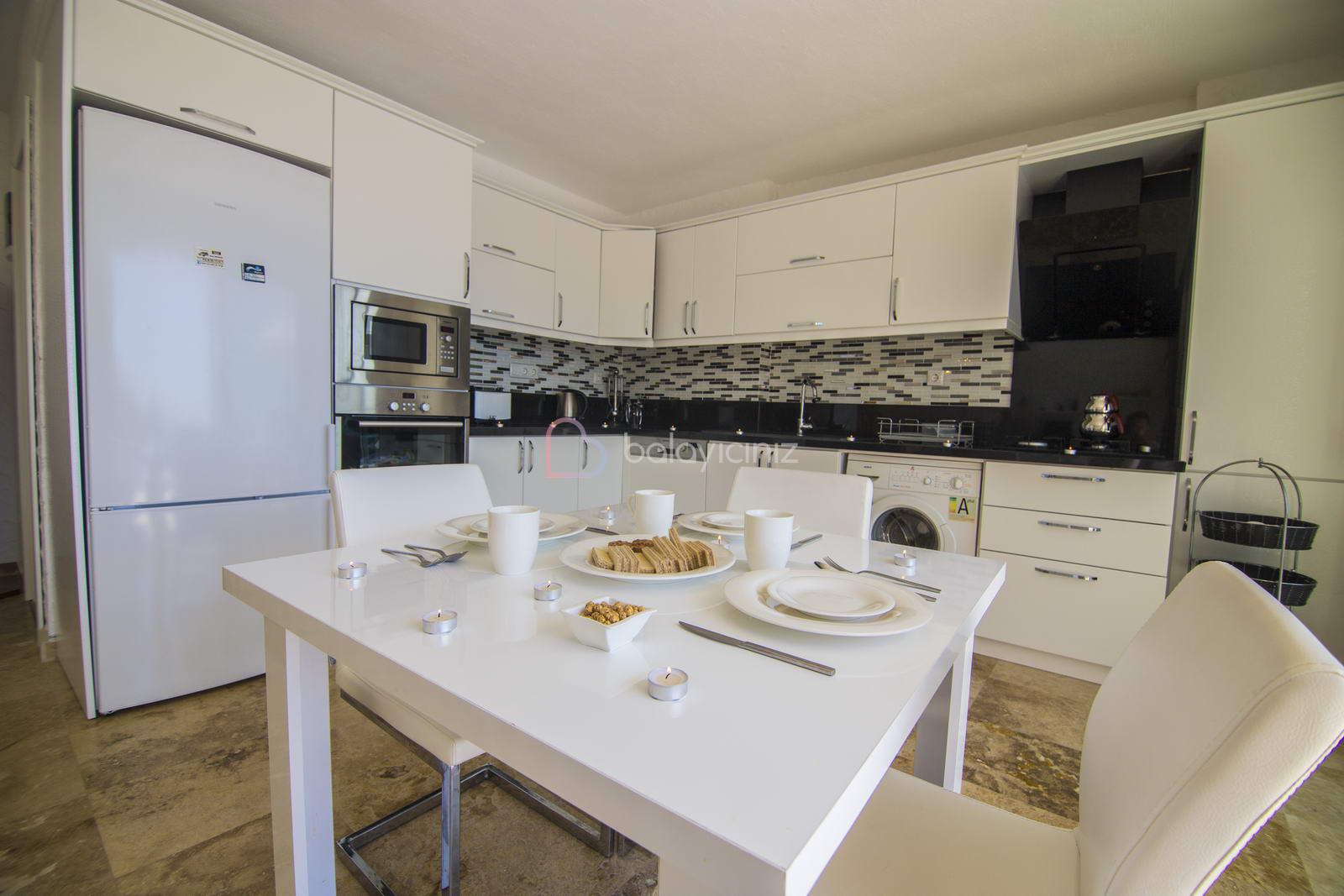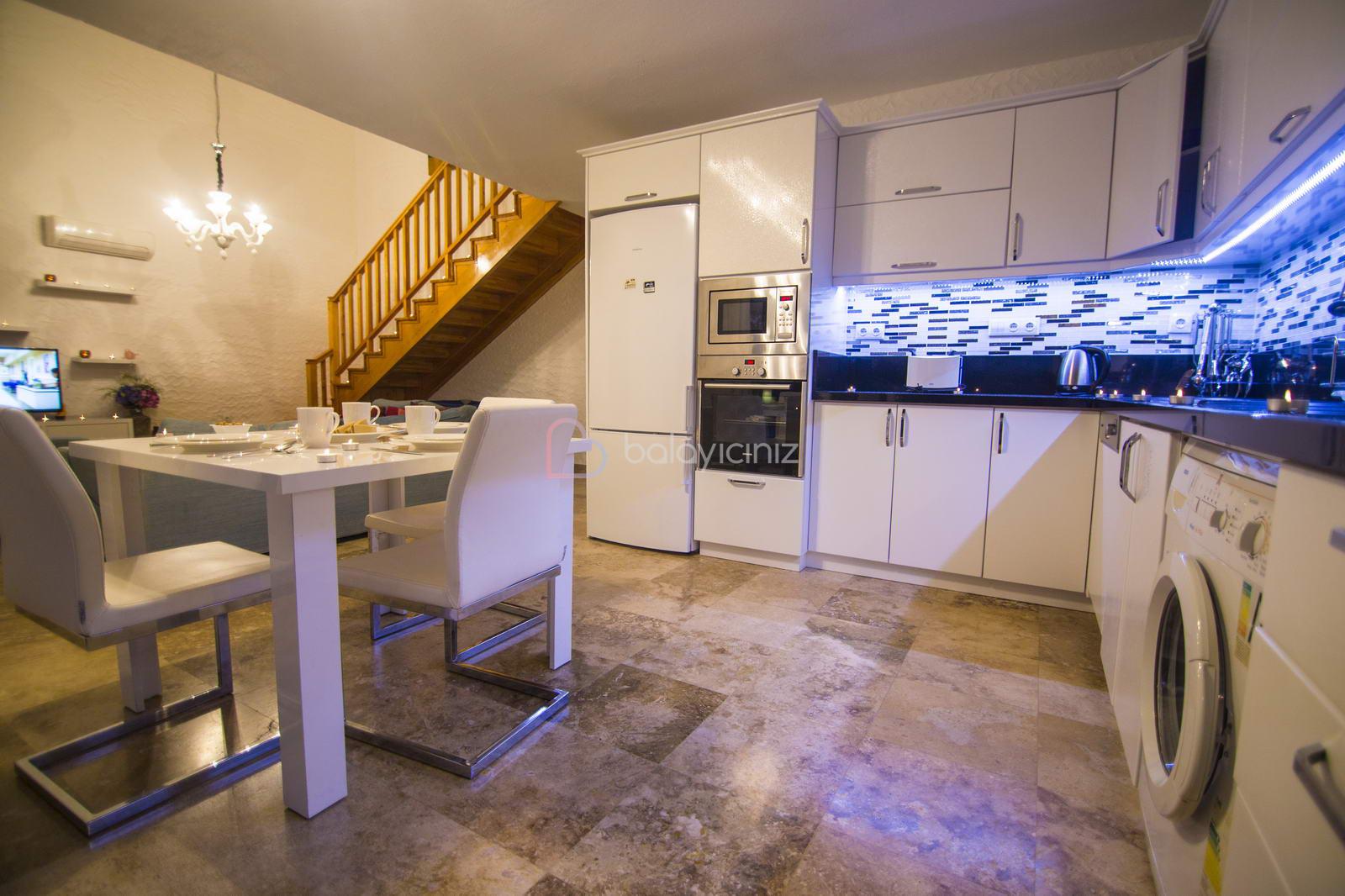Modern Amerikan Mutfak, bulaşık makinesi, çamaşır makinesi, buzdolabı, 4’ lü ocak , fırın ,elektrikli su ısıtıcı ( ketle ) , mikrodalga fırın, tost makinesi, tencere , tavalar , 4 kişilik yemek masası ve sandalyeler ,4 kişilik yemek takımı , çatal bıçak takımı , çay , kahve ve su bardakları mevcuttur.