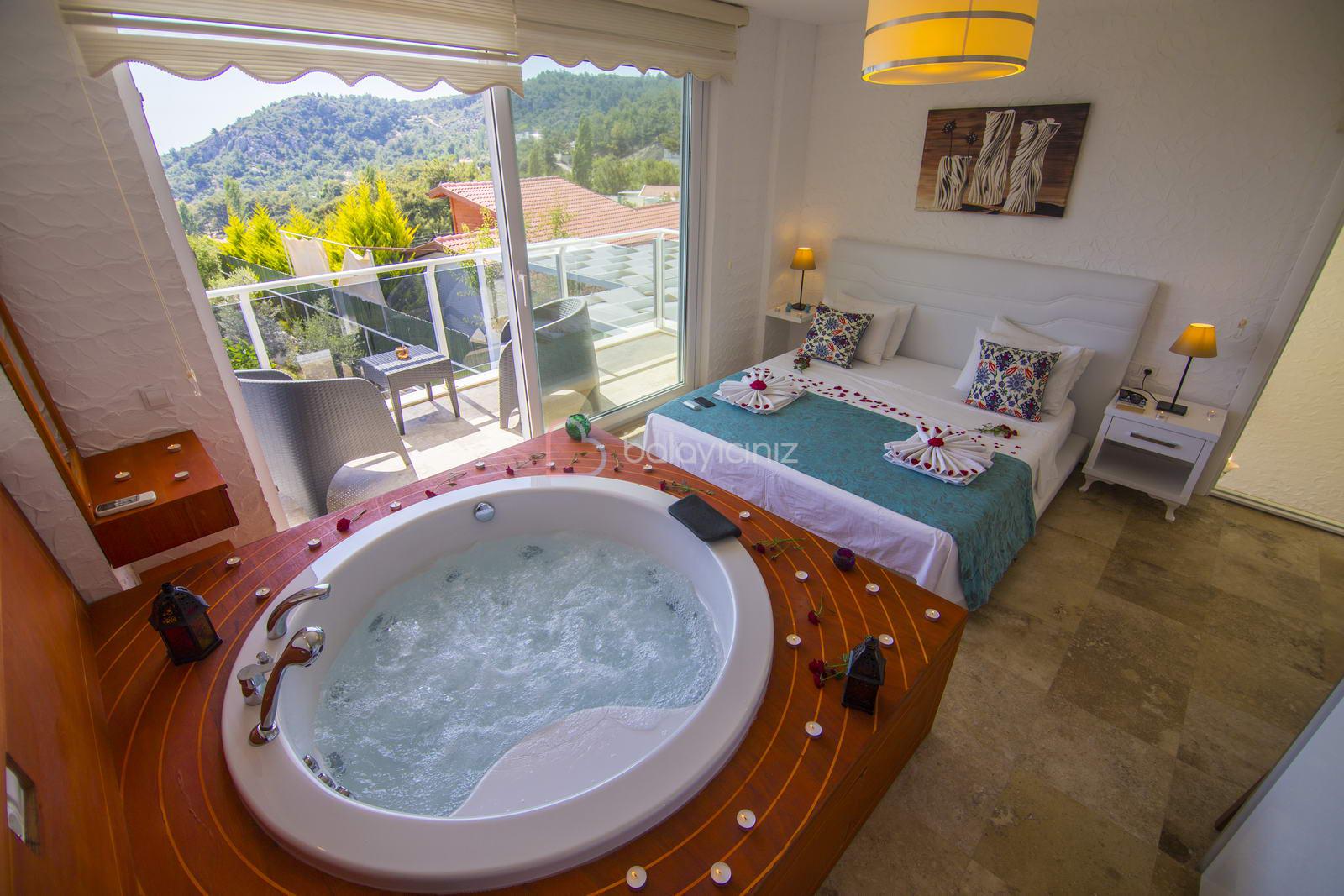 Özenle dekore edilmiş Doğa içerisinde tek yatak odalı jakuzili balayı villası
