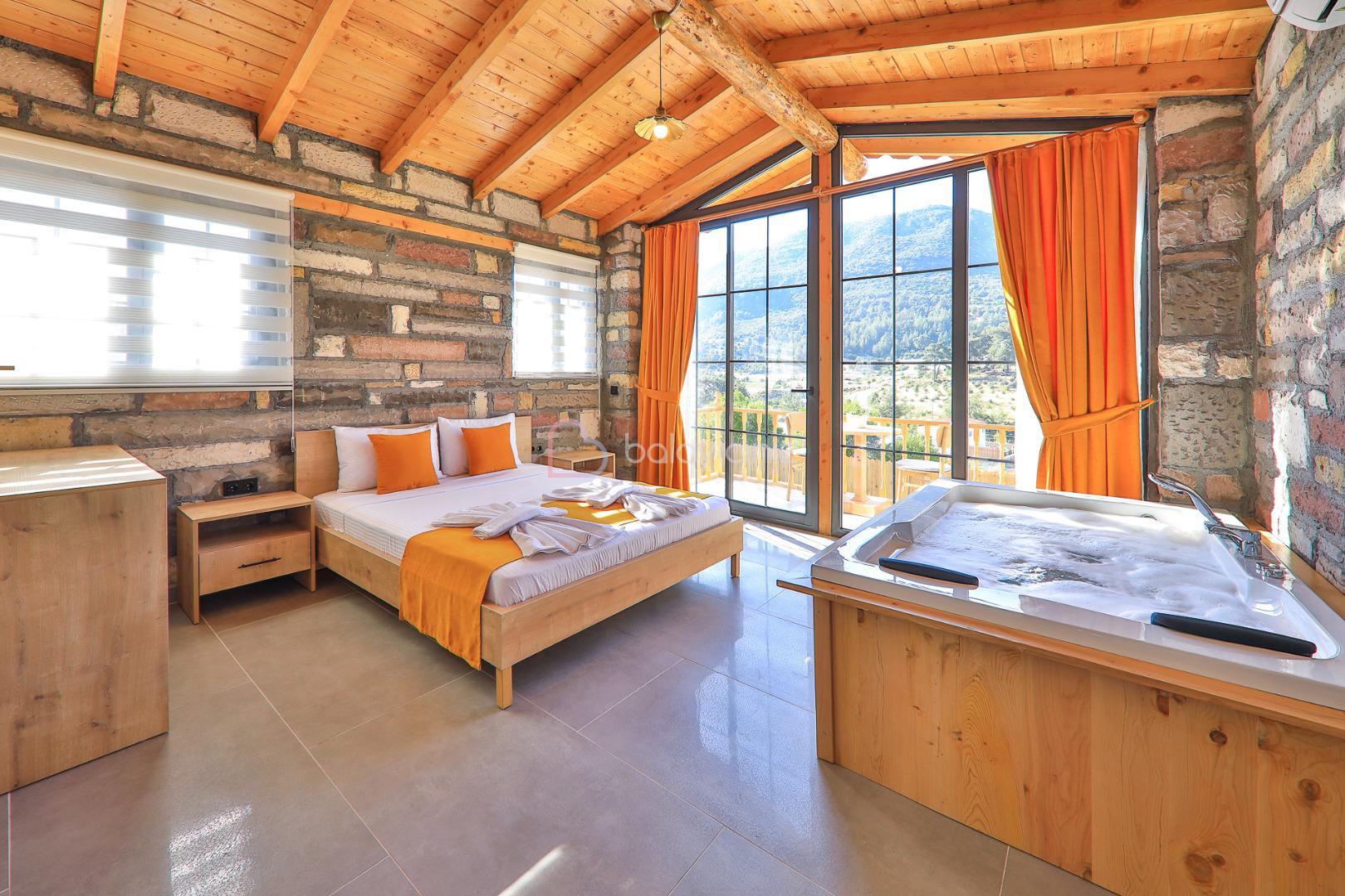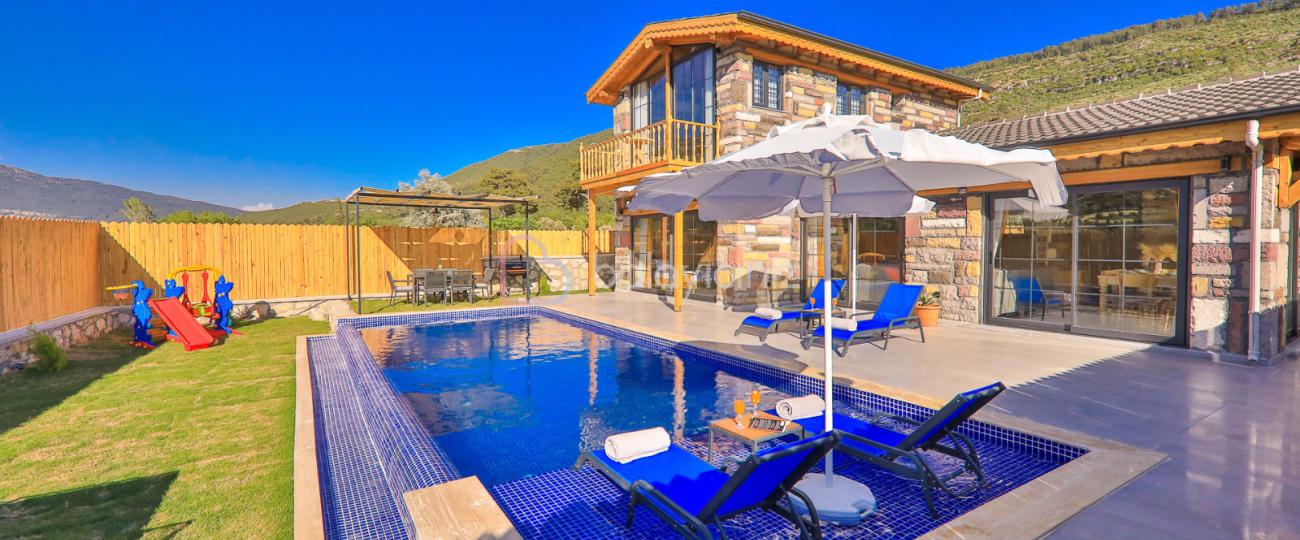 Yemek HizmetiKalkan Sarıbelen bölgesinde doğa manzarasına sahip 2 Yatak Odalı 4 Kişilik Özel Yüzme Havuzlu Muhafazakâr Kiralık modern bir villamızdır. Balayi çiftleri ve çocuklu aileler için geniş havuz terasında ve geniş bahçe alanında sessiz ve sakin rahat bir tatil arzulayan misafirlerimiz için bu villa seçeneğimiz son derece yerinde bir karar olacaktır. Villamızın tüm yatak odalarından havuz terasına çıkış bulunmaktadır.