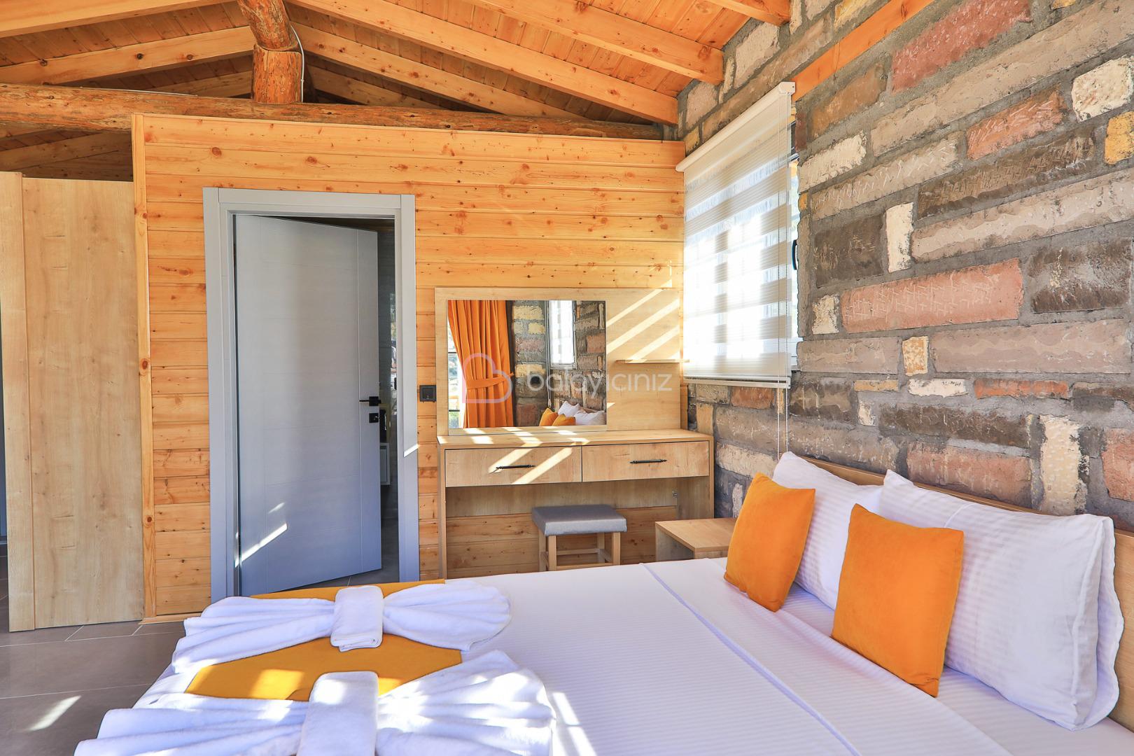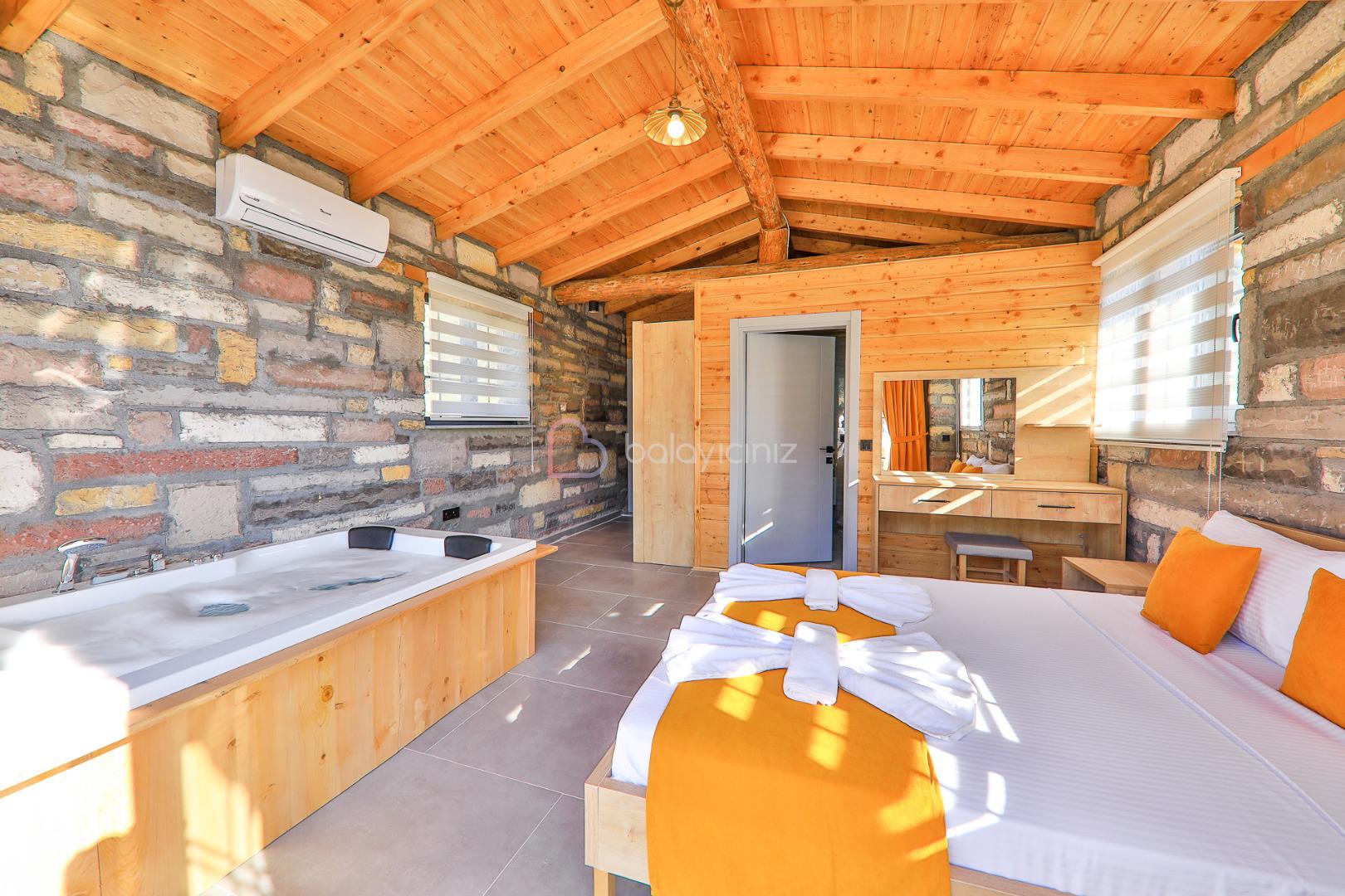 1. Yatak Odası: 1 adet çift kişilik yatak, klima, komodin, elbise dolabı, makyaj masası, jakuzi, banyo ve tuvalet bulunmaktadır.