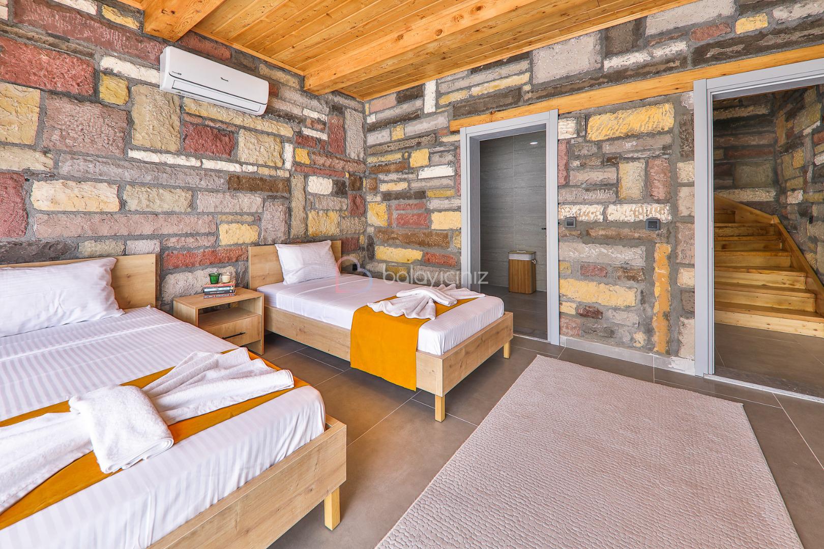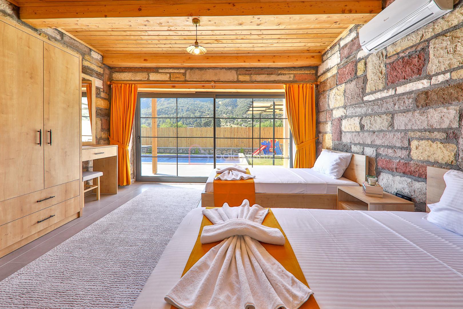 2. Yatak Odası: 2 adet tek kişilik yatak, klima, komodin, elbise dolabı, makyaj masası, banyo ve tuvalet bulunmaktadır.