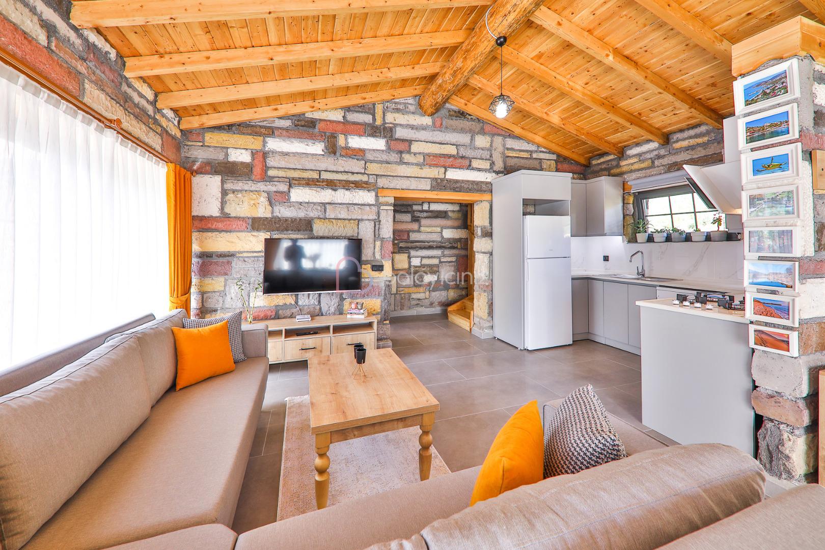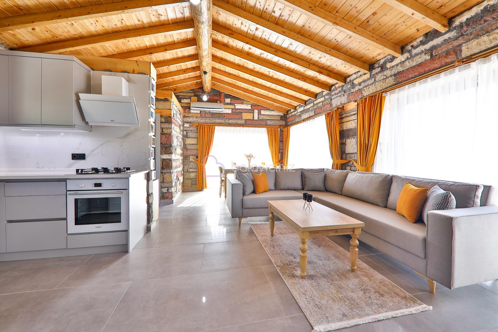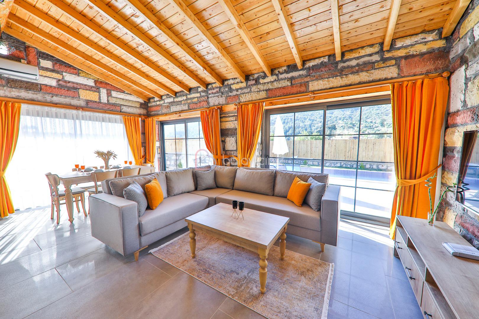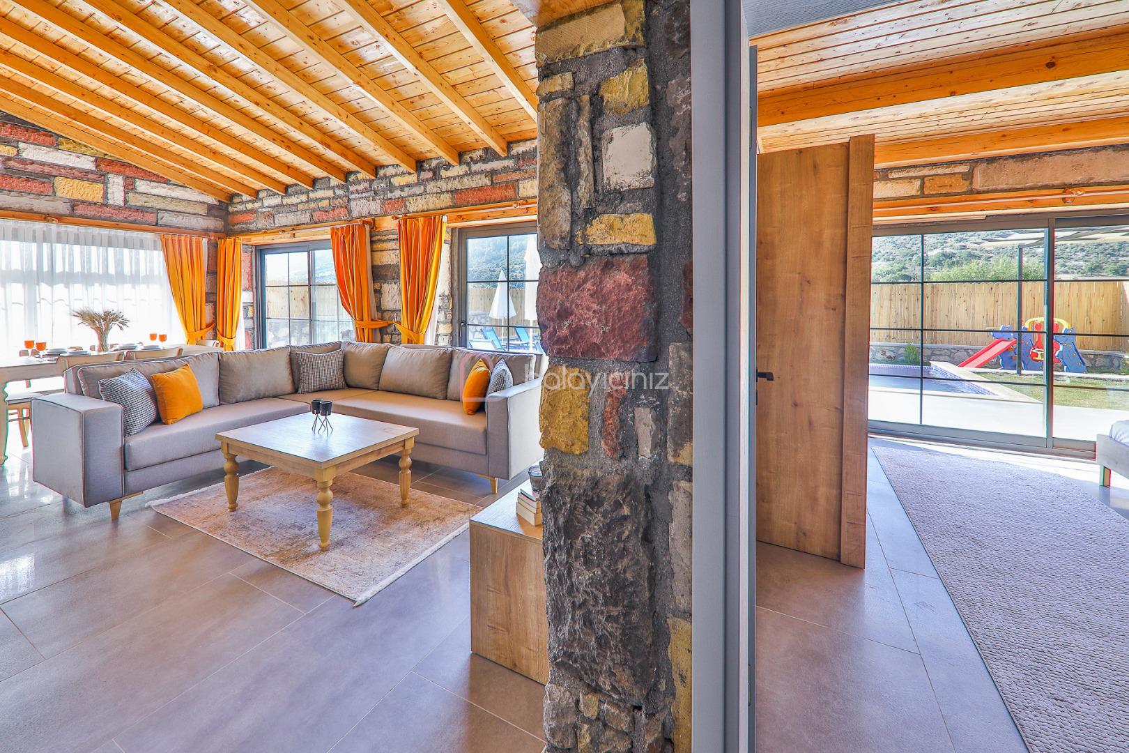 Salon içerisinde oturma grubu, televizyon, klima, sehpa bulunmaktadır. Havuz terasına çıkış yapılabilmektedir.
