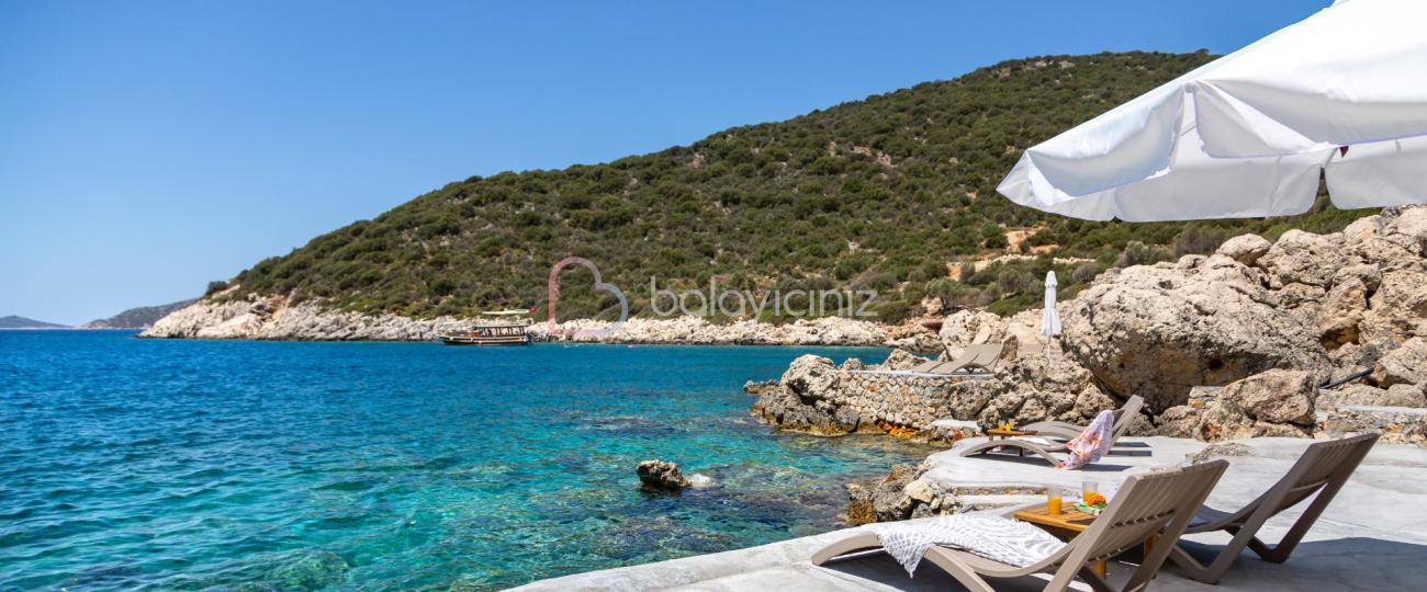 Kendine ait özel plajı bulunan Villa Lagore ‘de, iskele tarafında şezlonglar ve gölgelikli bir oturma alanı bulunmaktadır.