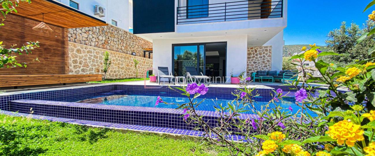Kalkan Kalamar mevkiinde bulunan jakuzili kiralık villa yazlık, 6 kişilik 3 yatak odalı