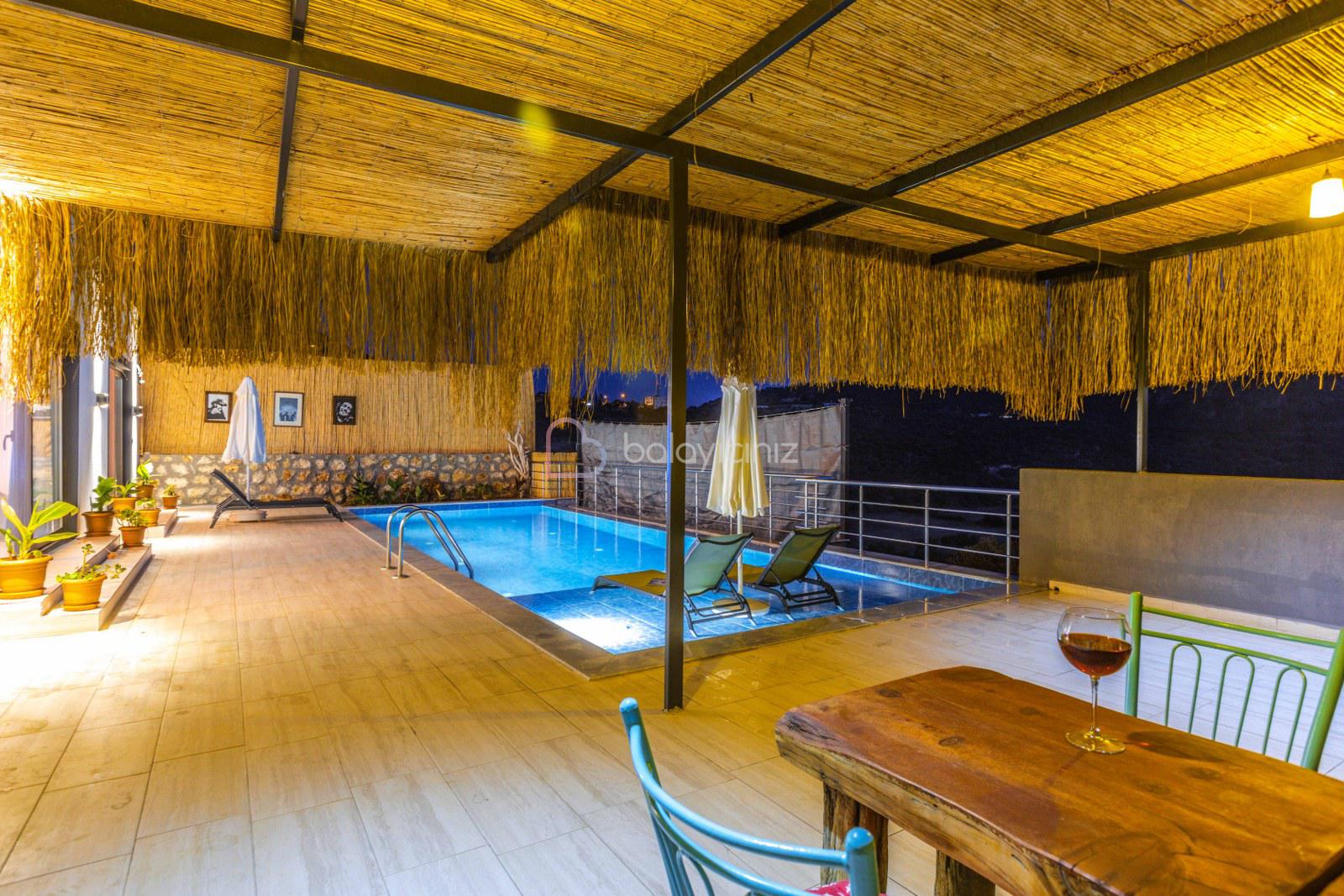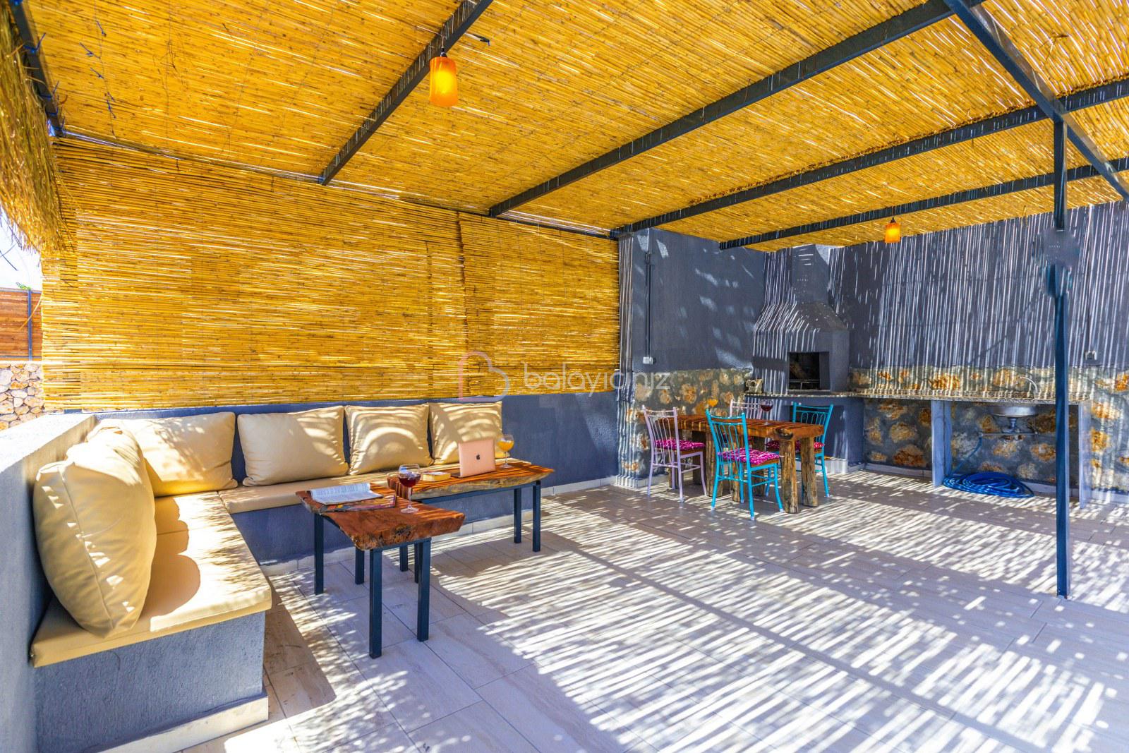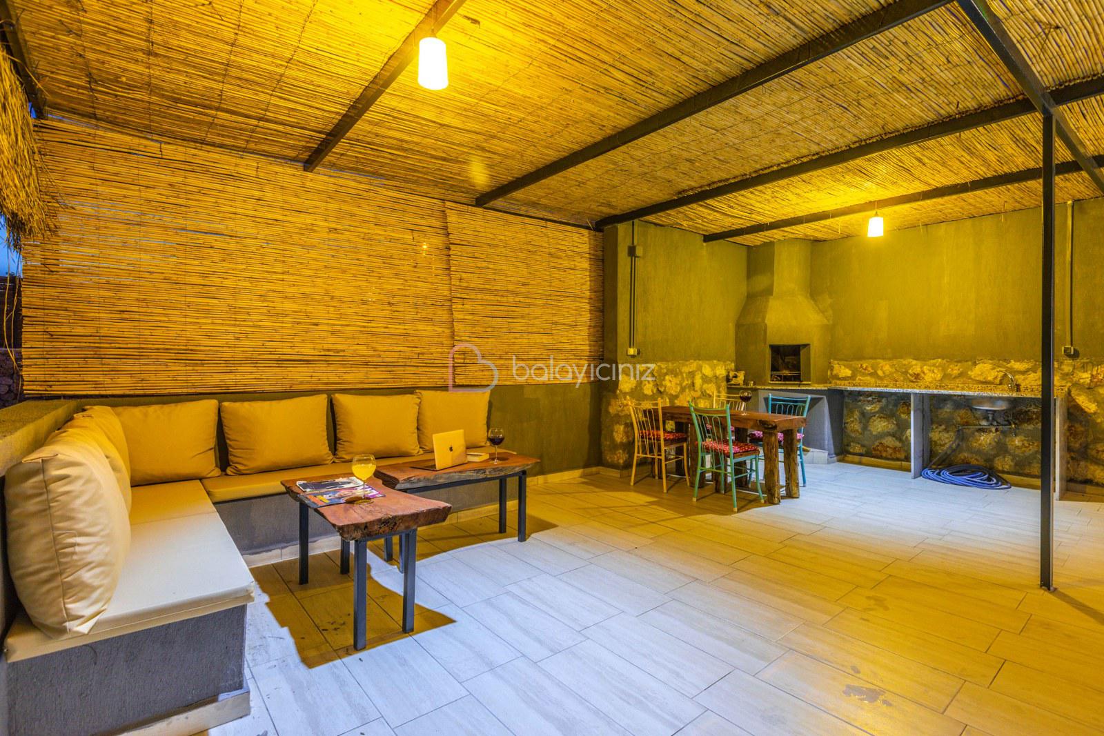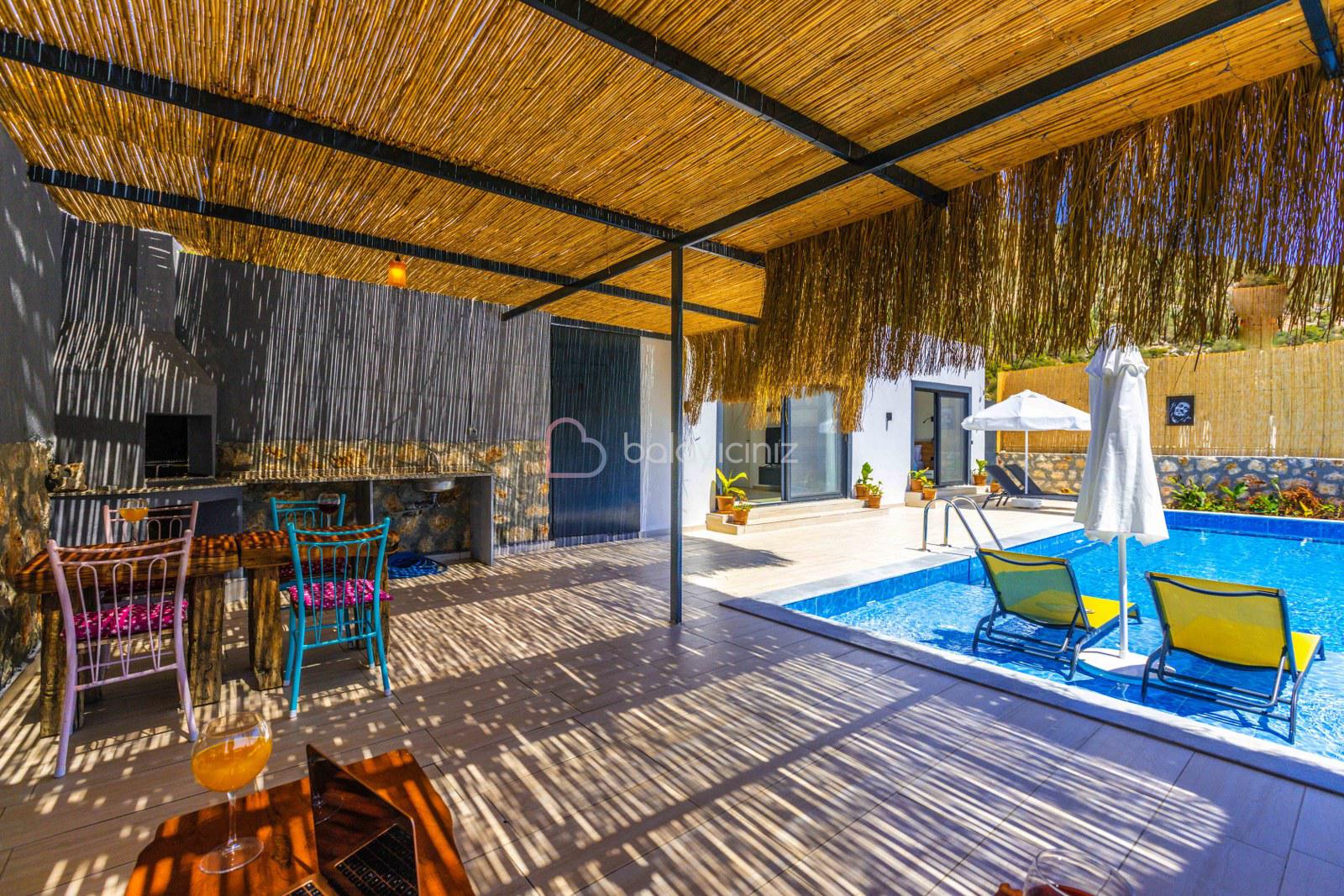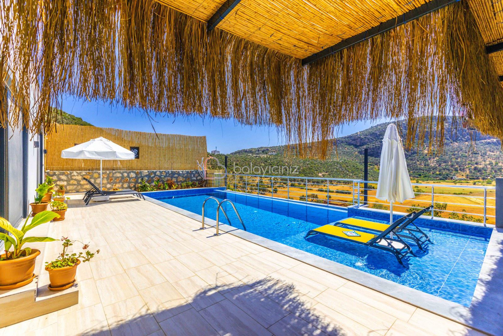 Terasında özel yüzme havuzu, şezlonglar, güneş şemsiyeleri, masa ve sandalyeler, pergole, mangal bulunmaktadır.