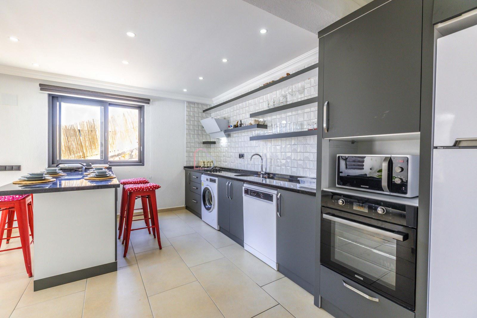 Amerikan mutfakta buzdolabı, bulaşık makinası, fırın, 4'lü ocak, mikrodalga fırın, kettle, tost makinası, yemek masası, yemek takımları, çatal ve bıçak takımları, tencere ve tava takımları, bardaklar bulunmaktadır.