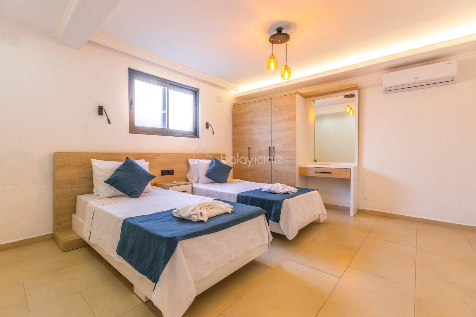 2.Yatak Odası: 2 adet tek kişilik yatak, klima, komodin, makyaj masası, elbise dolabı, banyo ve tuvalet bulunmaktadır.