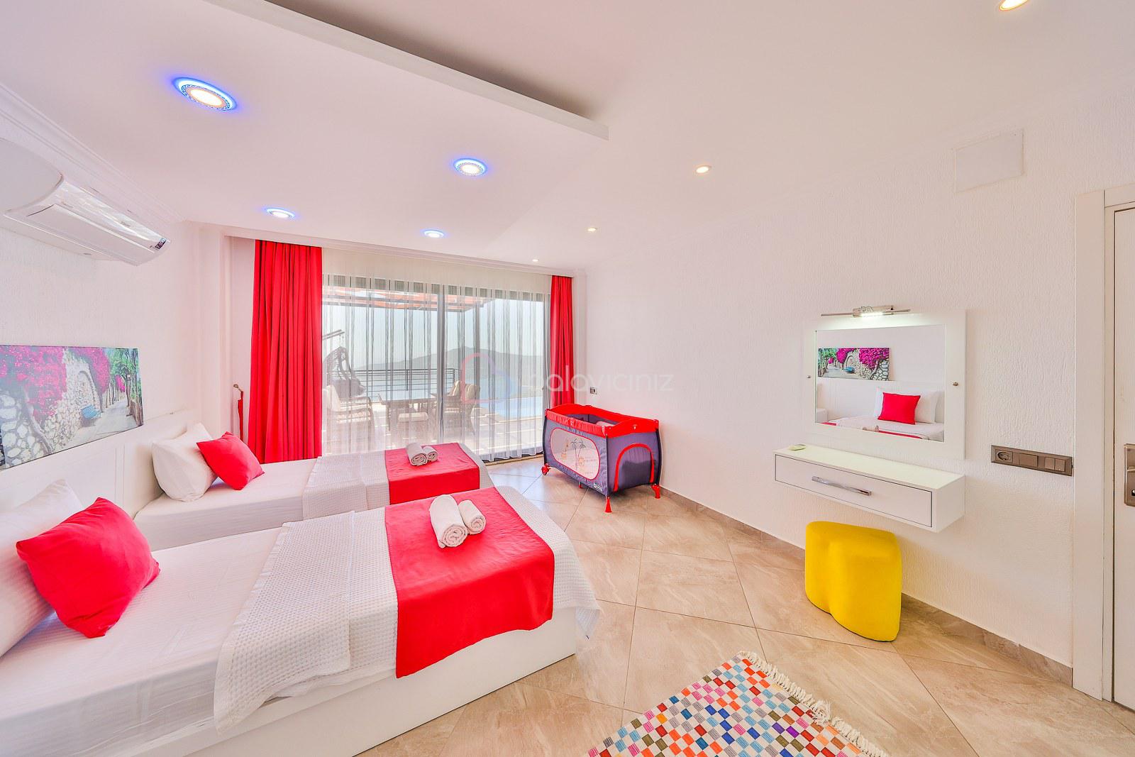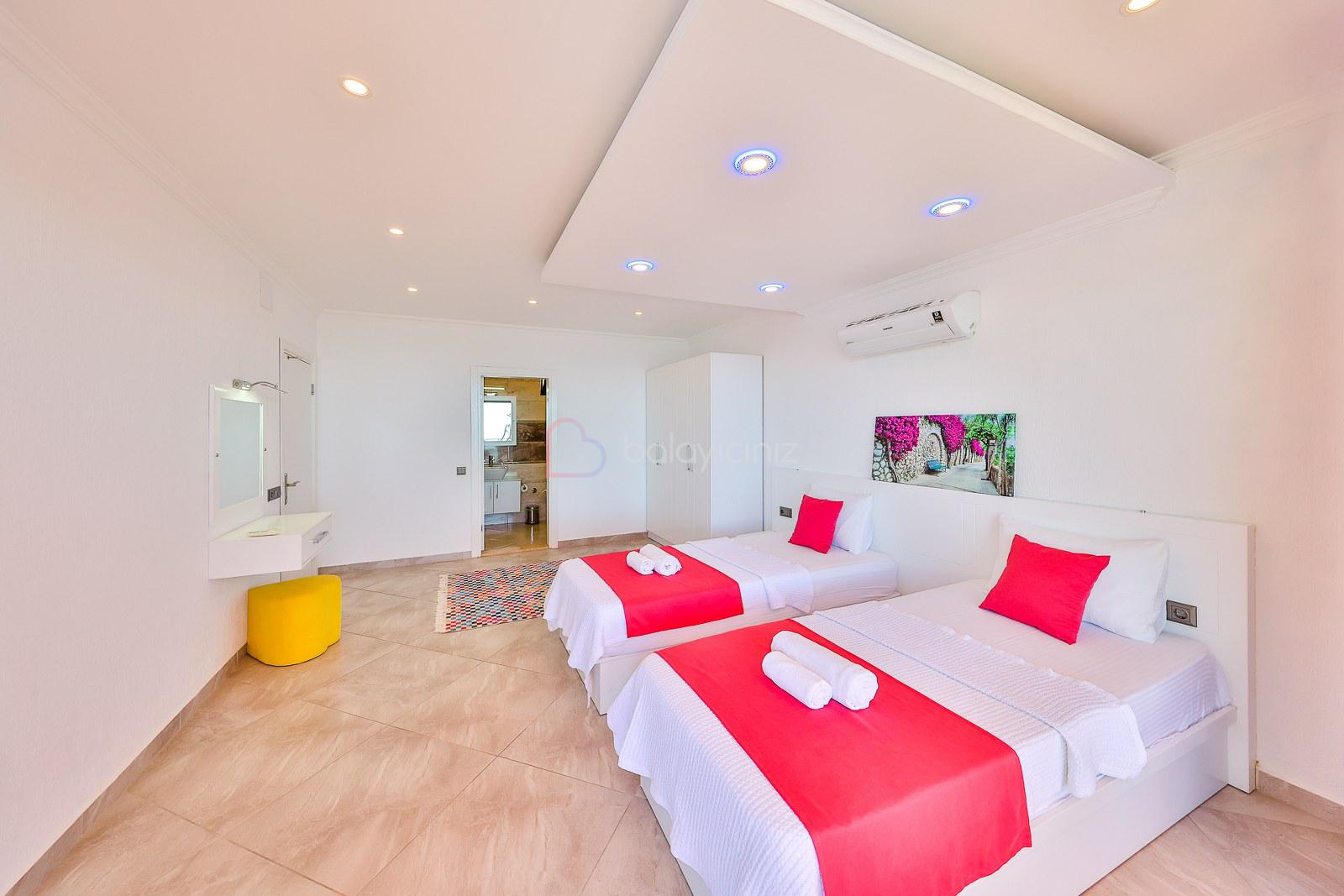 Yatak Odası2 : 2 adet tek kişilik yatak, elbise dolabı, komodin, makyaj masası, klima, tuvalet ve banyo bulunmaktadır.