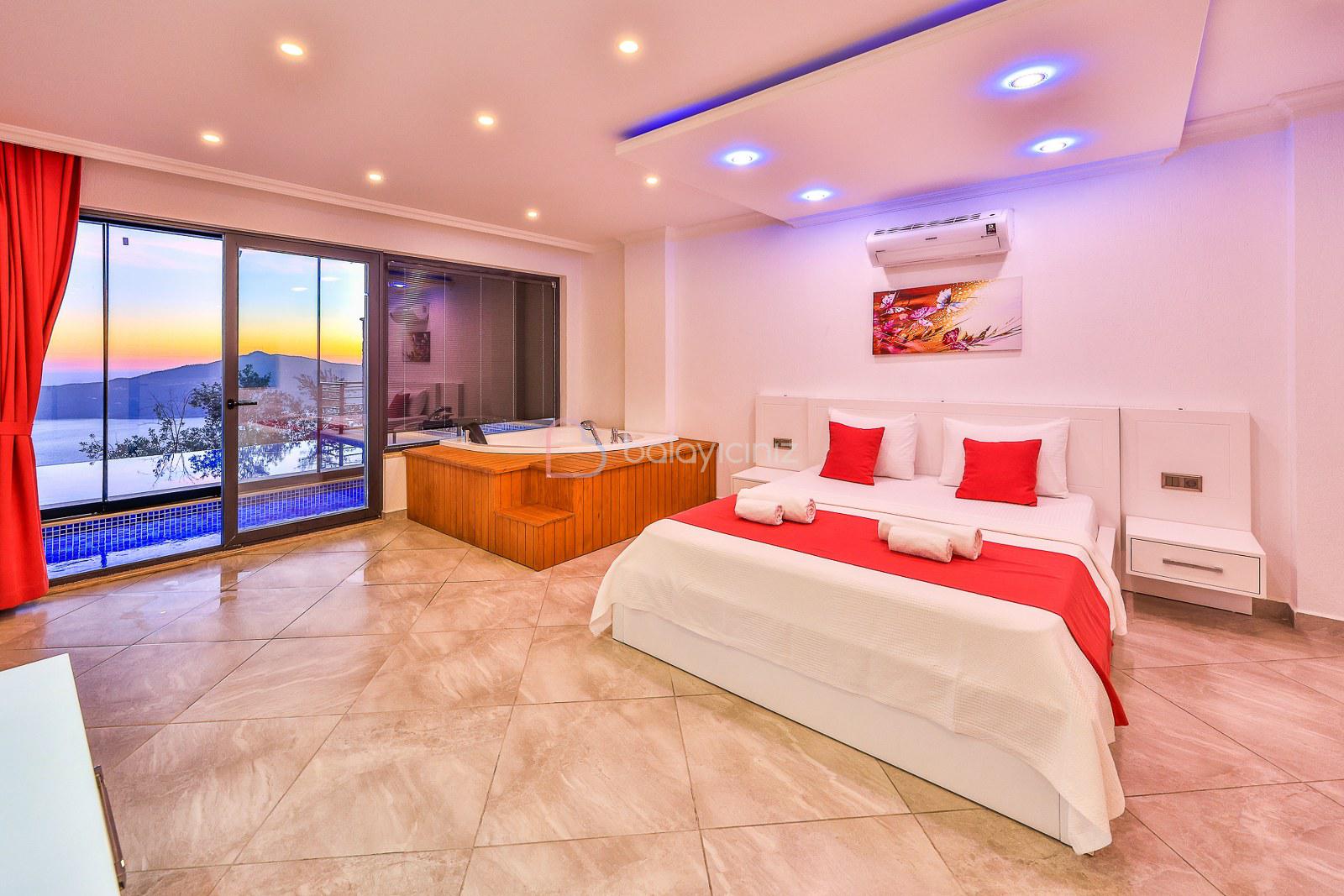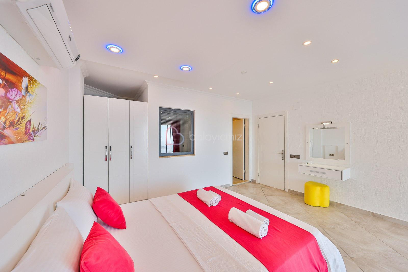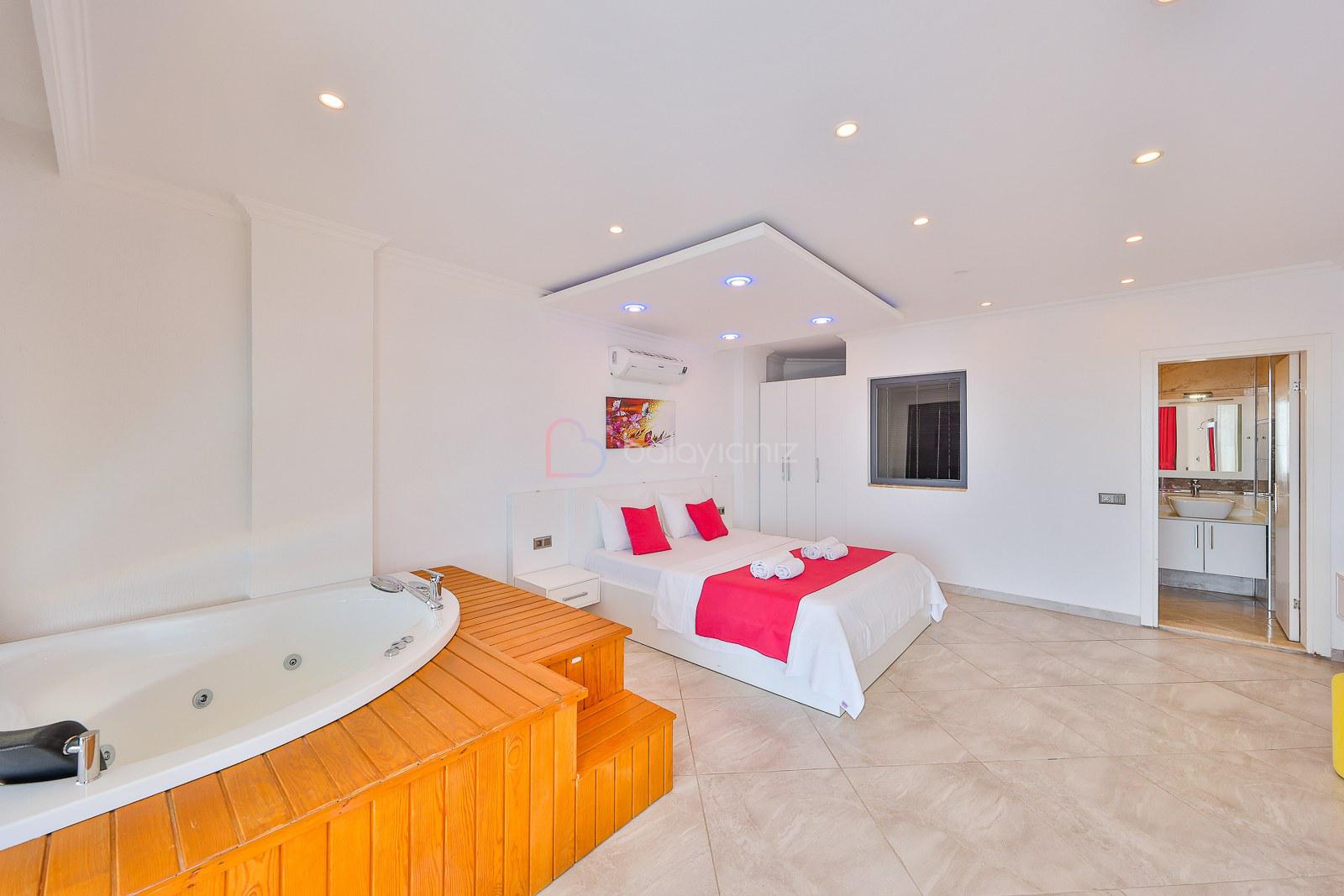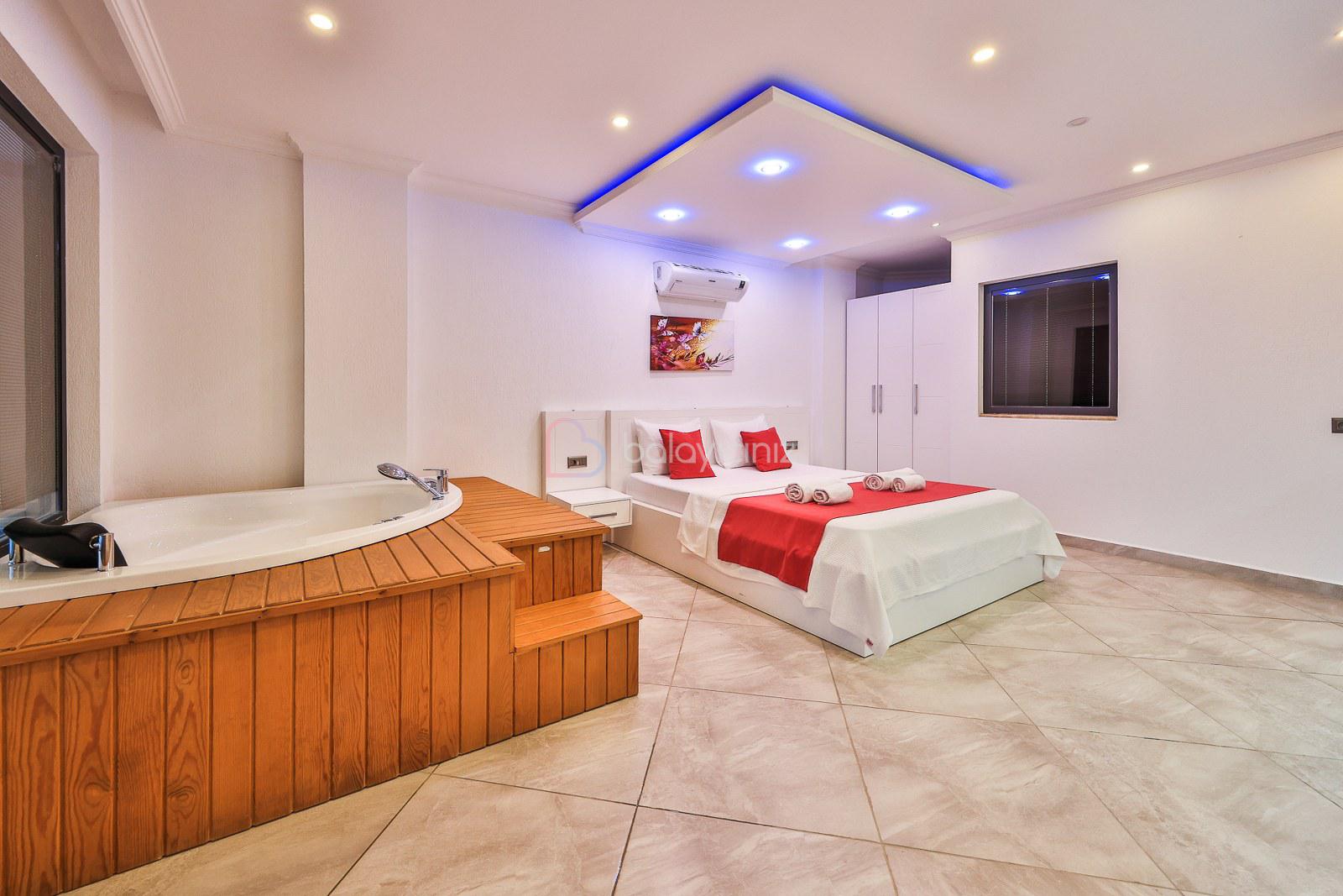 Yatak Odası1 : 1 adet çift kişilik yatak, elbise dolabı, komodin, klima, makyaj masası, kapalı havuz, jakuzi, tuvalet ve banyo bulunmaktadır.