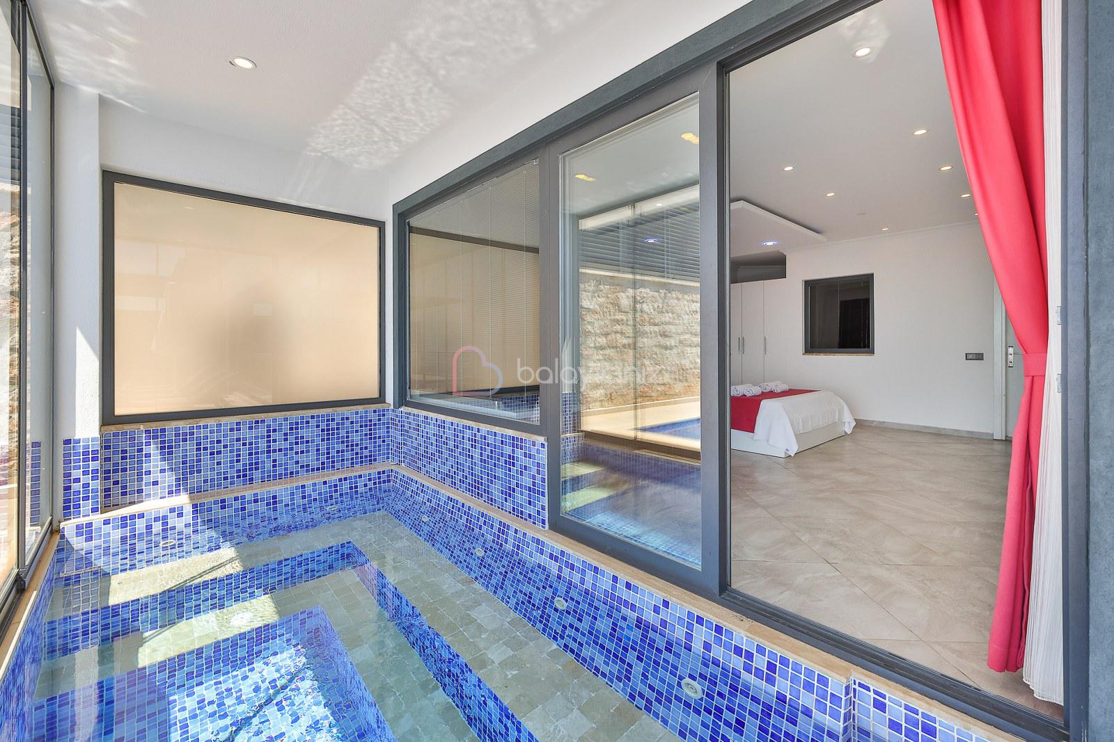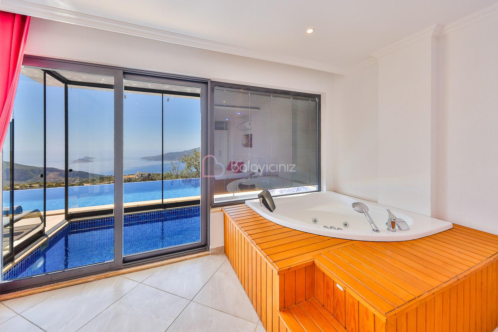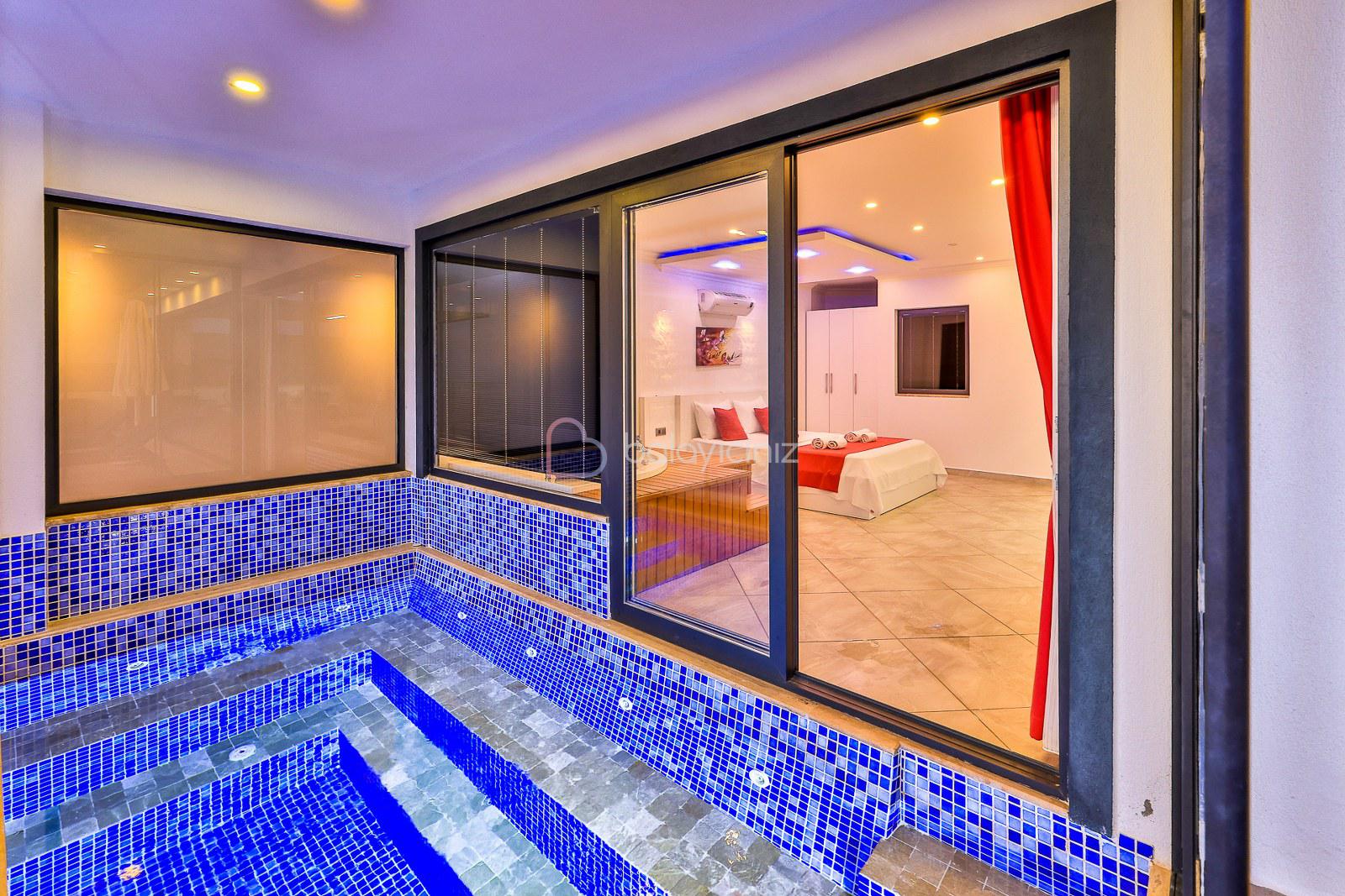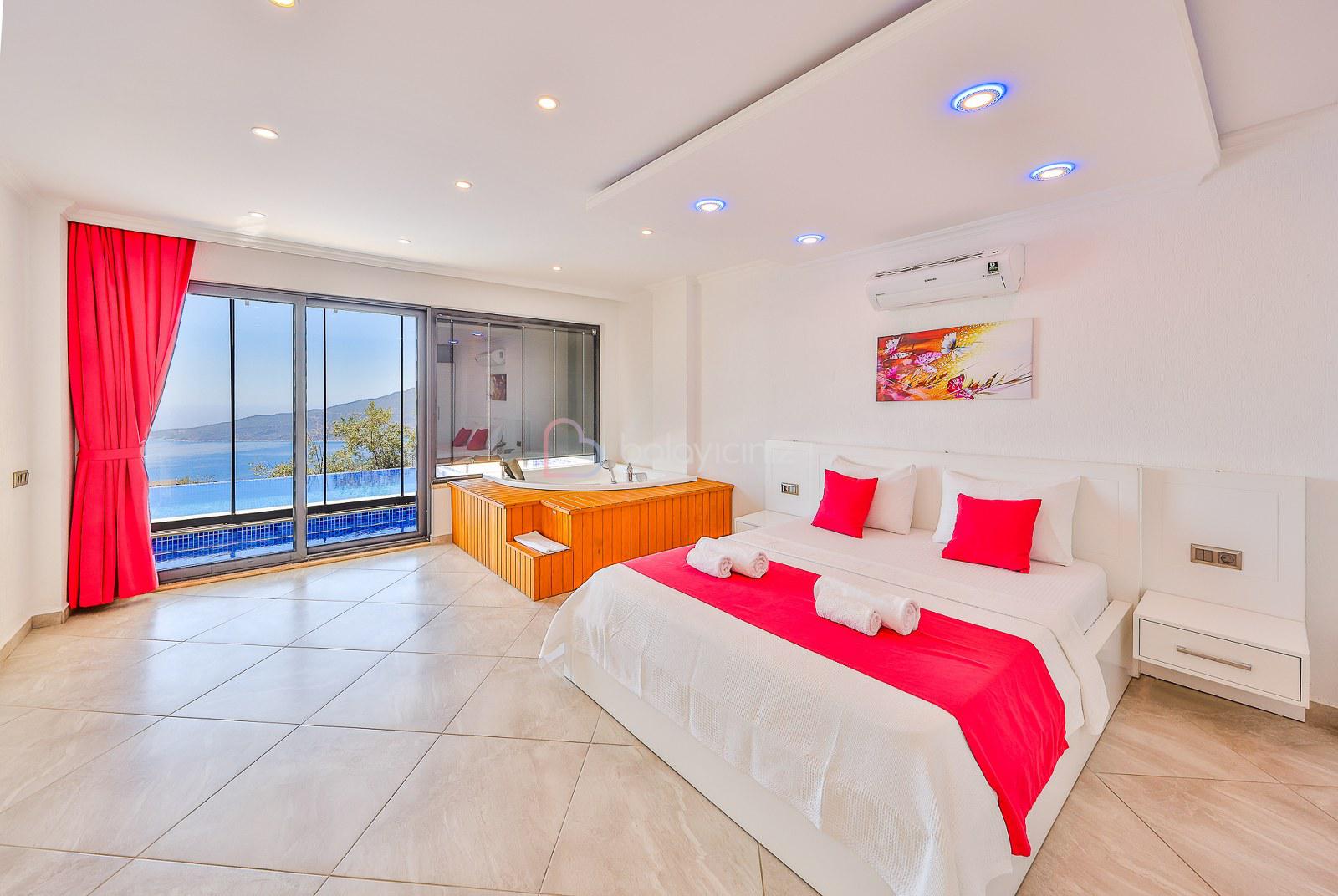 Yatak Odası1 : 1 adet çift kişilik yatak, elbise dolabı, komodin, klima, makyaj masası, kapalı havuz, jakuzi, tuvalet ve banyo bulunmaktadır.