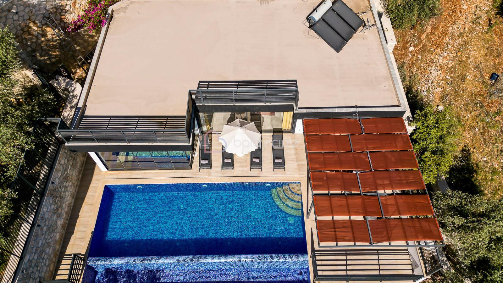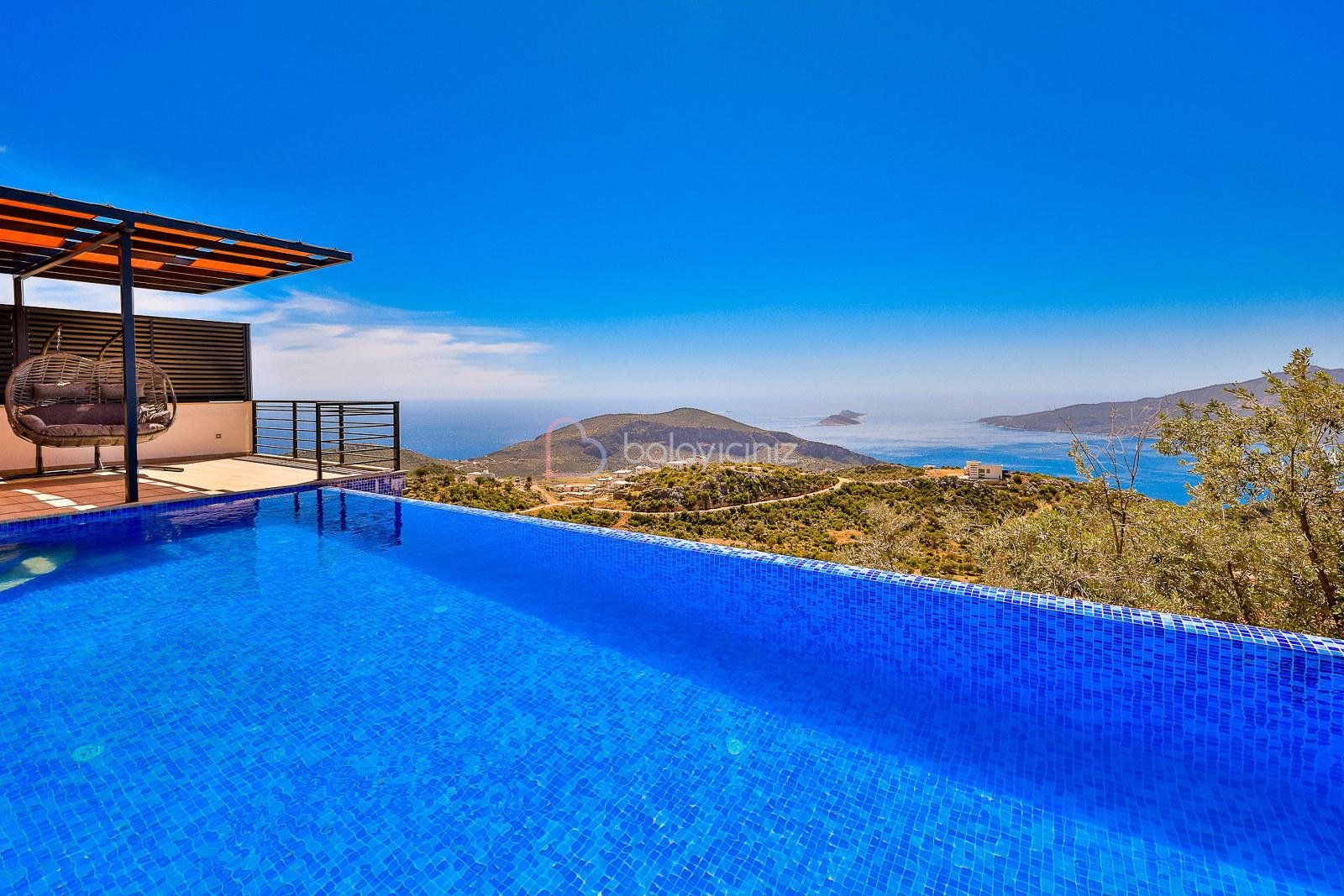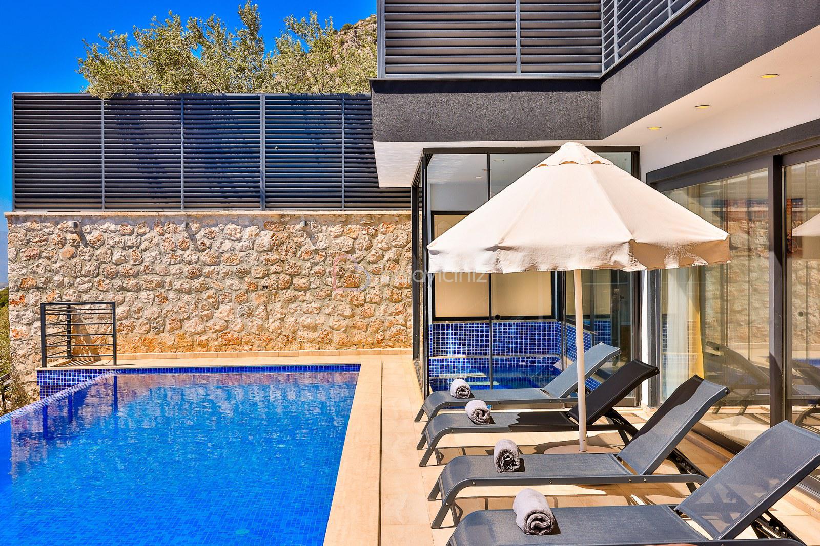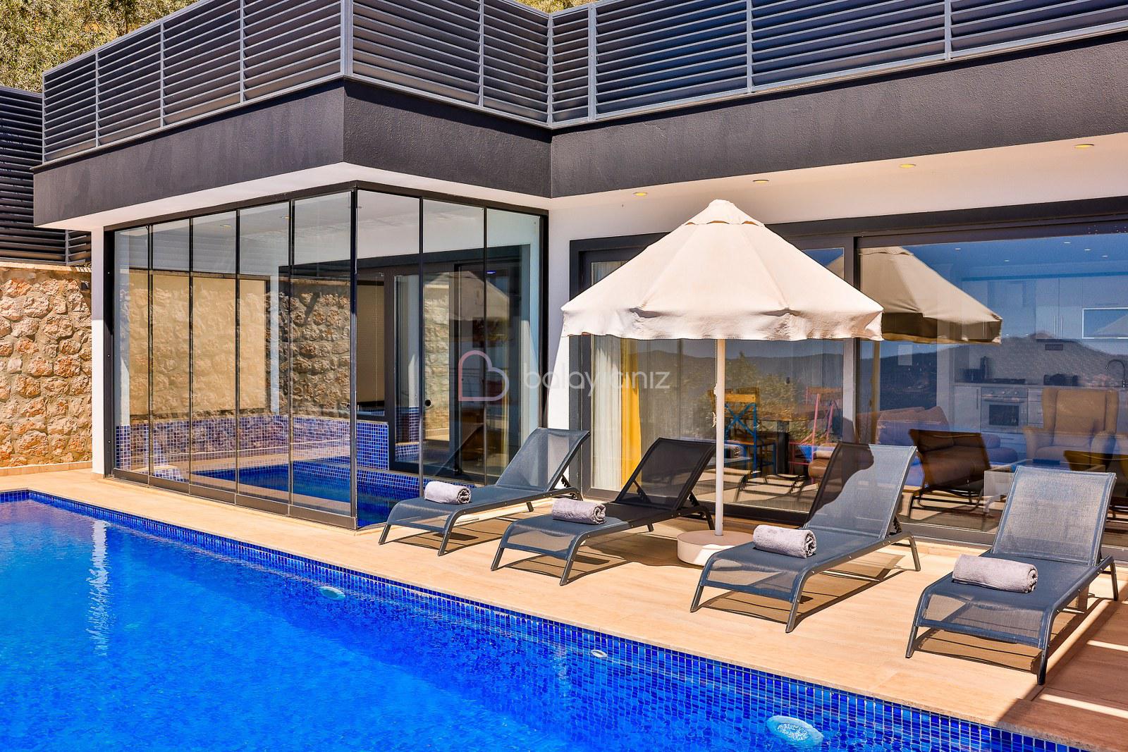 Bahçe içerisinde özel yüzme havuzu, şezlonglar, güneş şemsiyesi, bahçe mobilyaları, salıncak, barbekü bulunmaktadır.