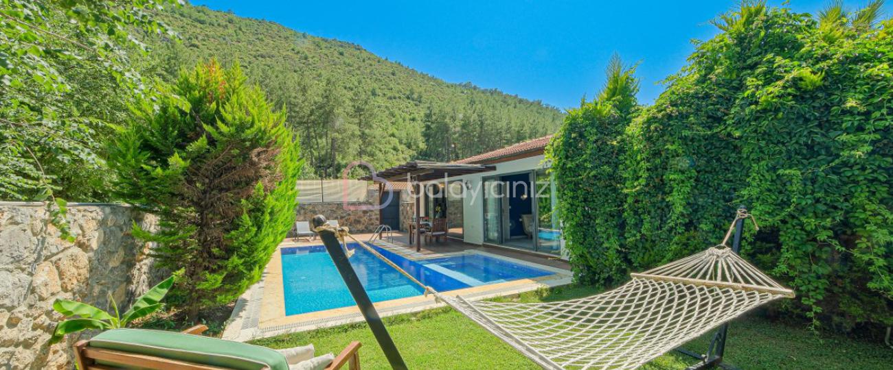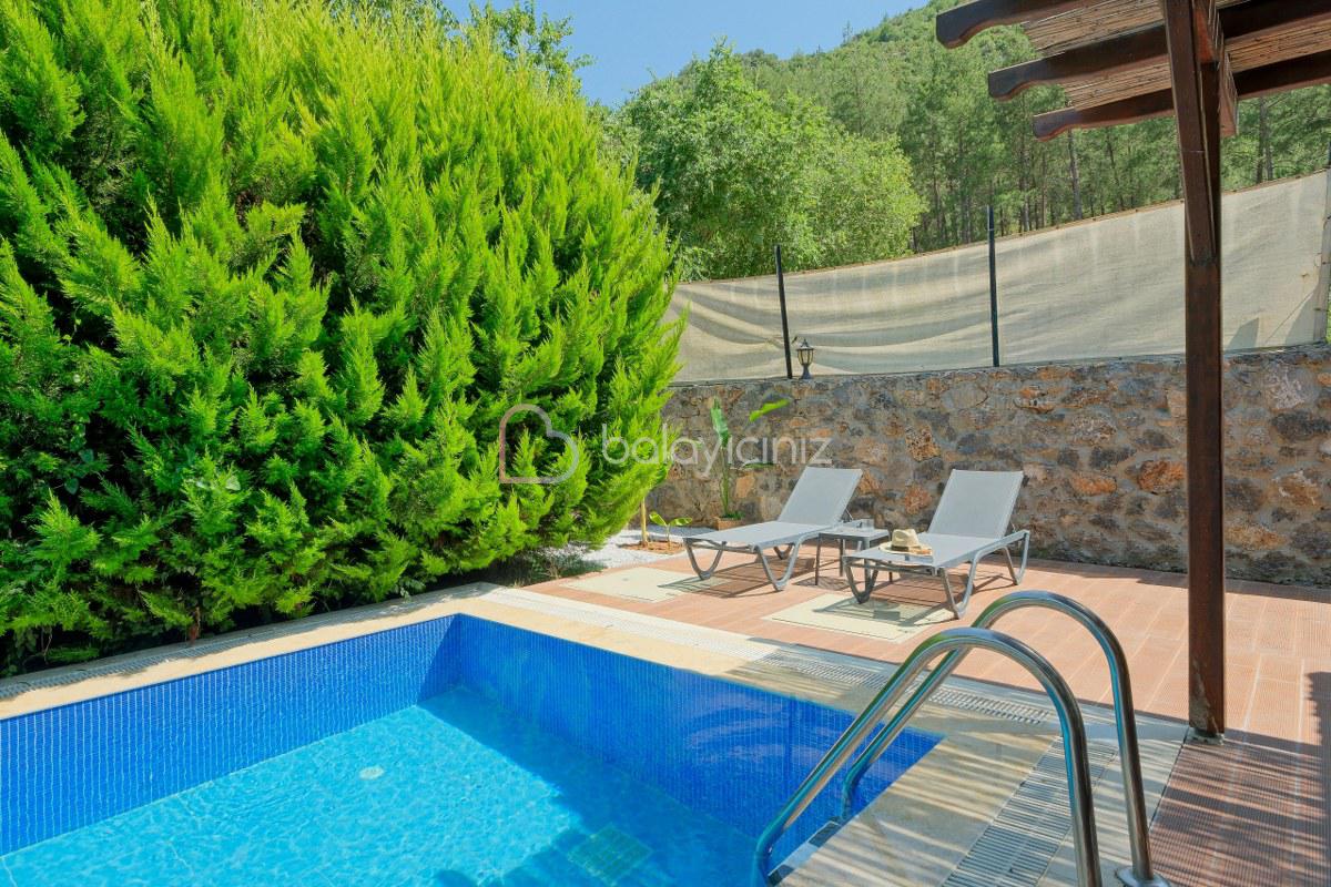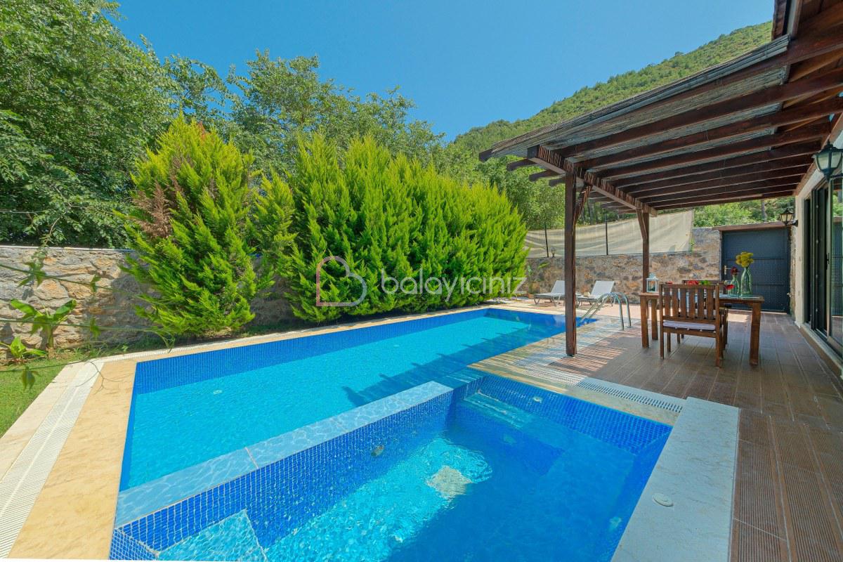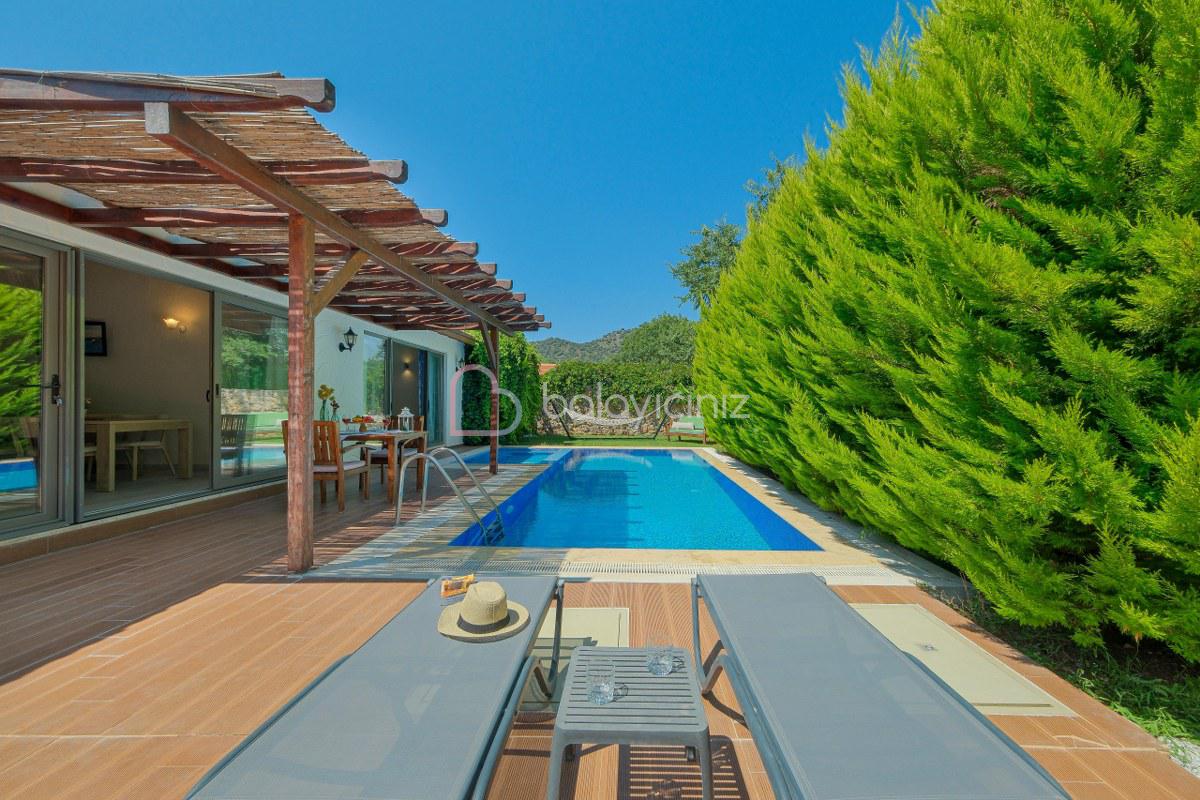 Özel yüzme havuzu, şezlong, oturma alanı, hamak, mangal, yemek masası bulunmaktadır.