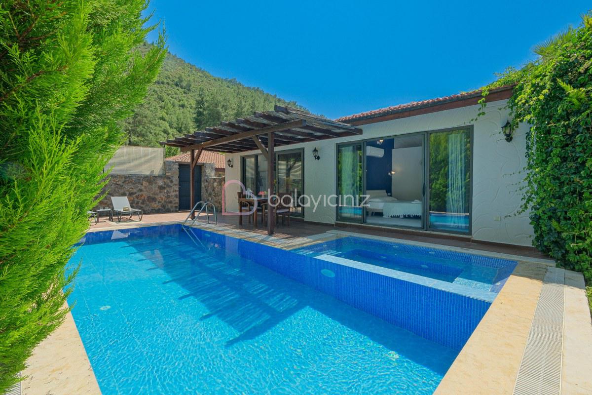 Not: Villanın güneşlenme terası ve havuzunun dış taraftan görünmeme misi için gerekli önlemler alınmıştır fakat villanın diğer bölümlerinin görünürlüğü kesin olarak garanti edilememektedir.
