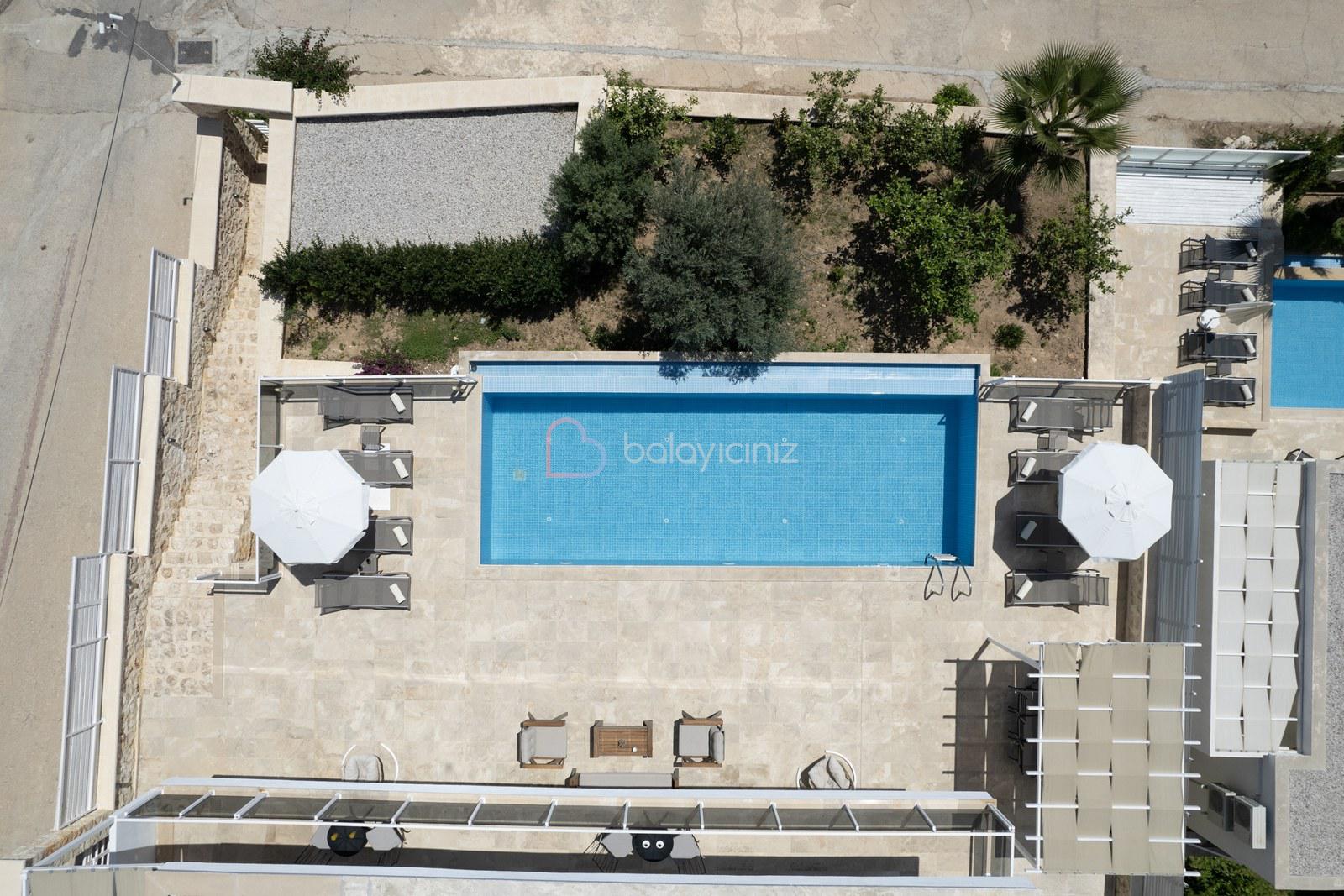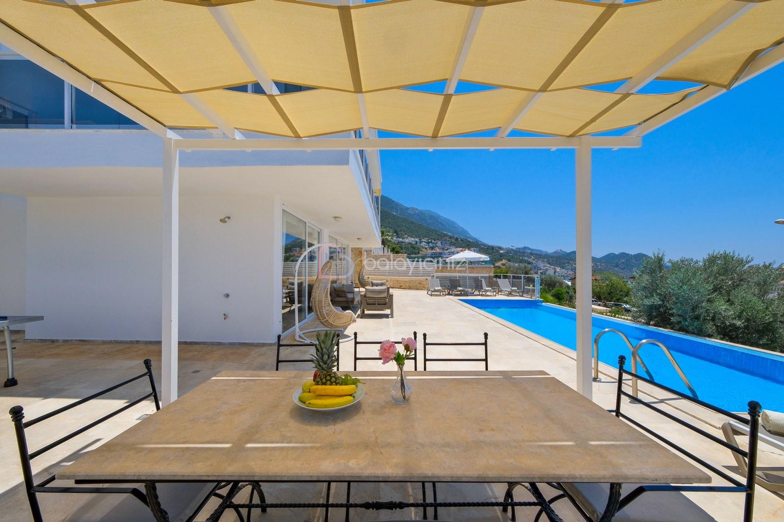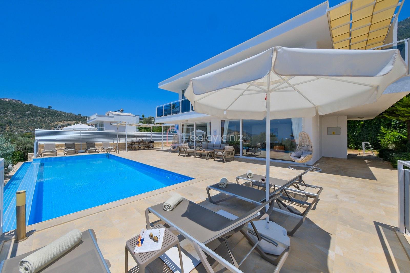 10 x 3,5 metre genişliğinde, derinliği 170 cm olan havuzu bulunmaktadır. Havuz terasında şezlong, şemsiye, salıncak, masa tenisi, oturma grubu, masa ve sandalyeler bulunmaktadır.