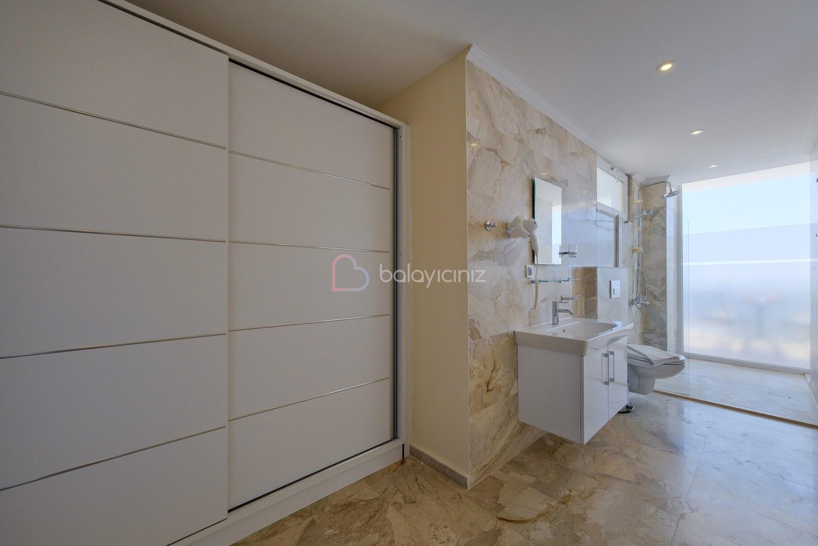 Yatak odası 3: Deniz manzaralı süit odada çift kişilik yatak, klima, komodin, makyaj masası, elbise dolabı, banyo ve tuvalet bulunmaktadır.