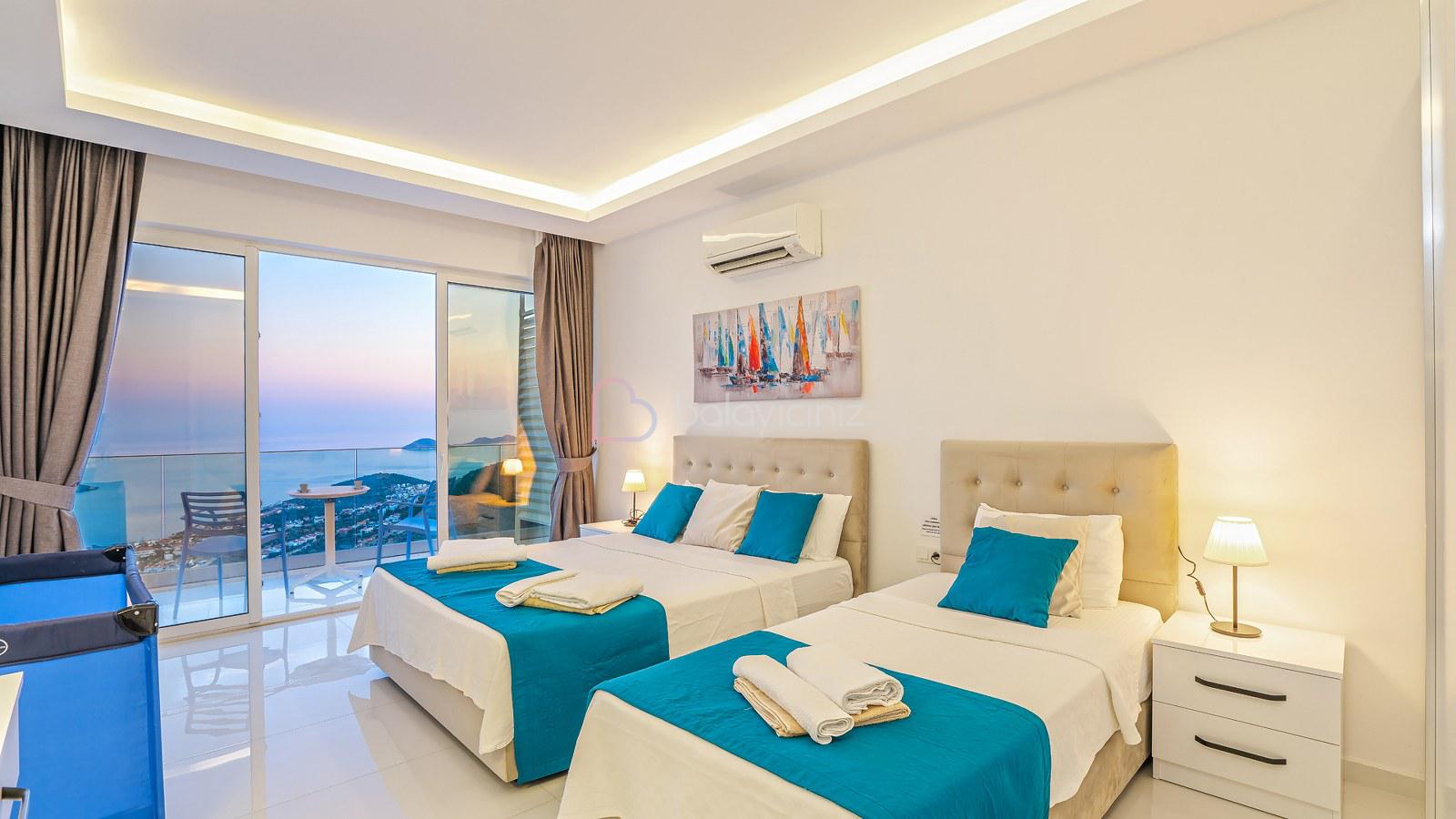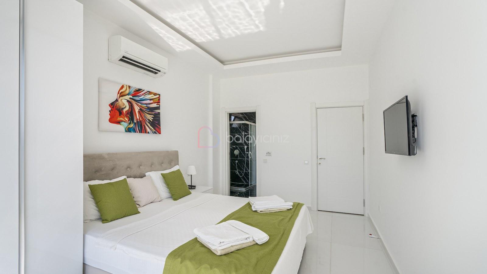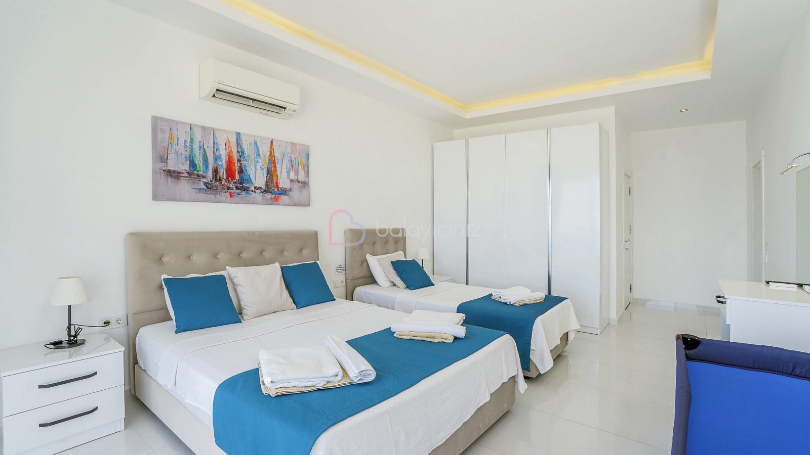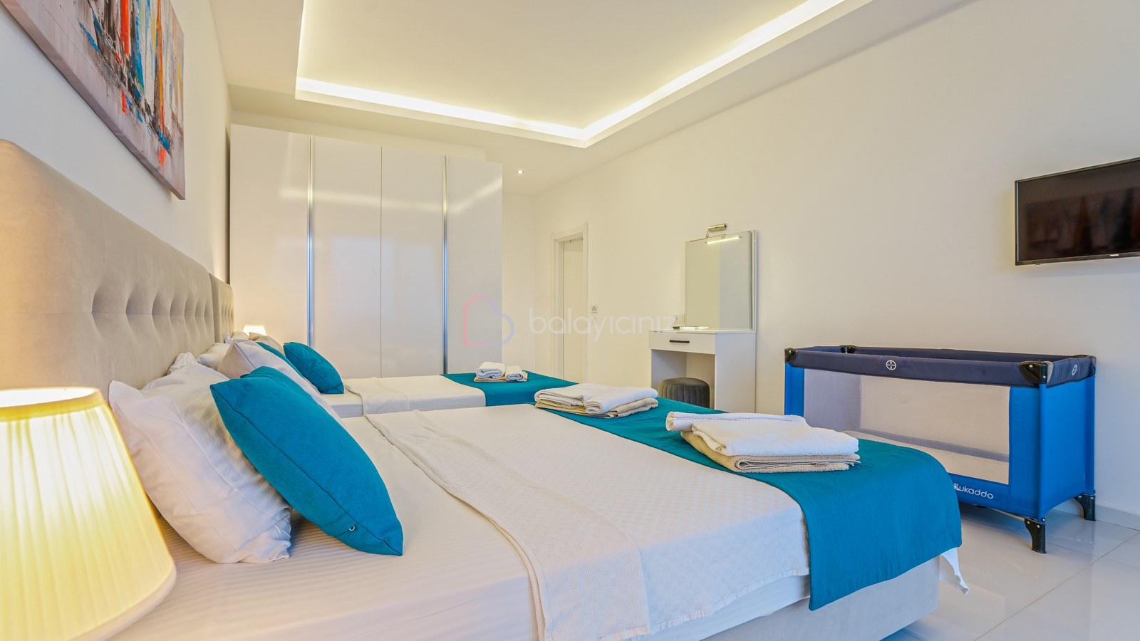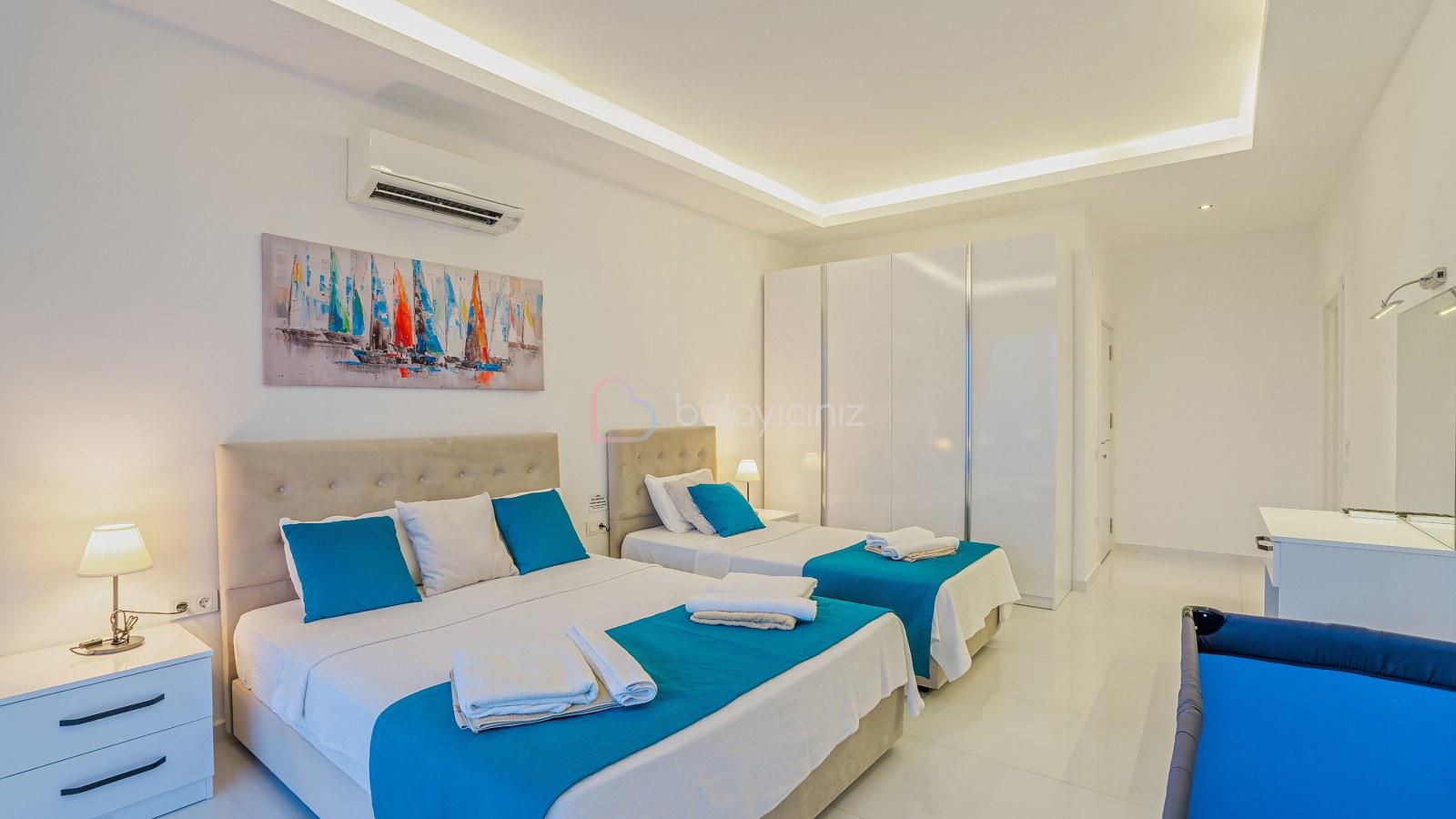 3.Yatak odasi (aile): 2 adet tek kisilik yatak, banyo, tuvalet, elbise dolabi, klima, komidin bulunmaktadir.