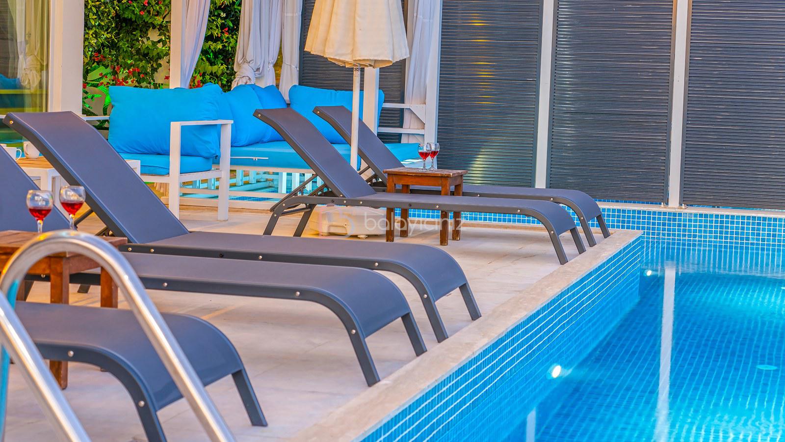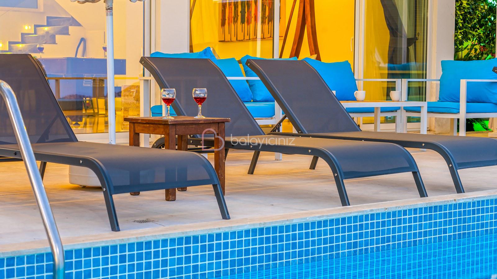 Bahçe içerisinde 1 adet özel yüzme havuzu, salincak, sezlonglar, günes semsiyesi, bahçe yemek masasi, mangal bulunmaktadir.