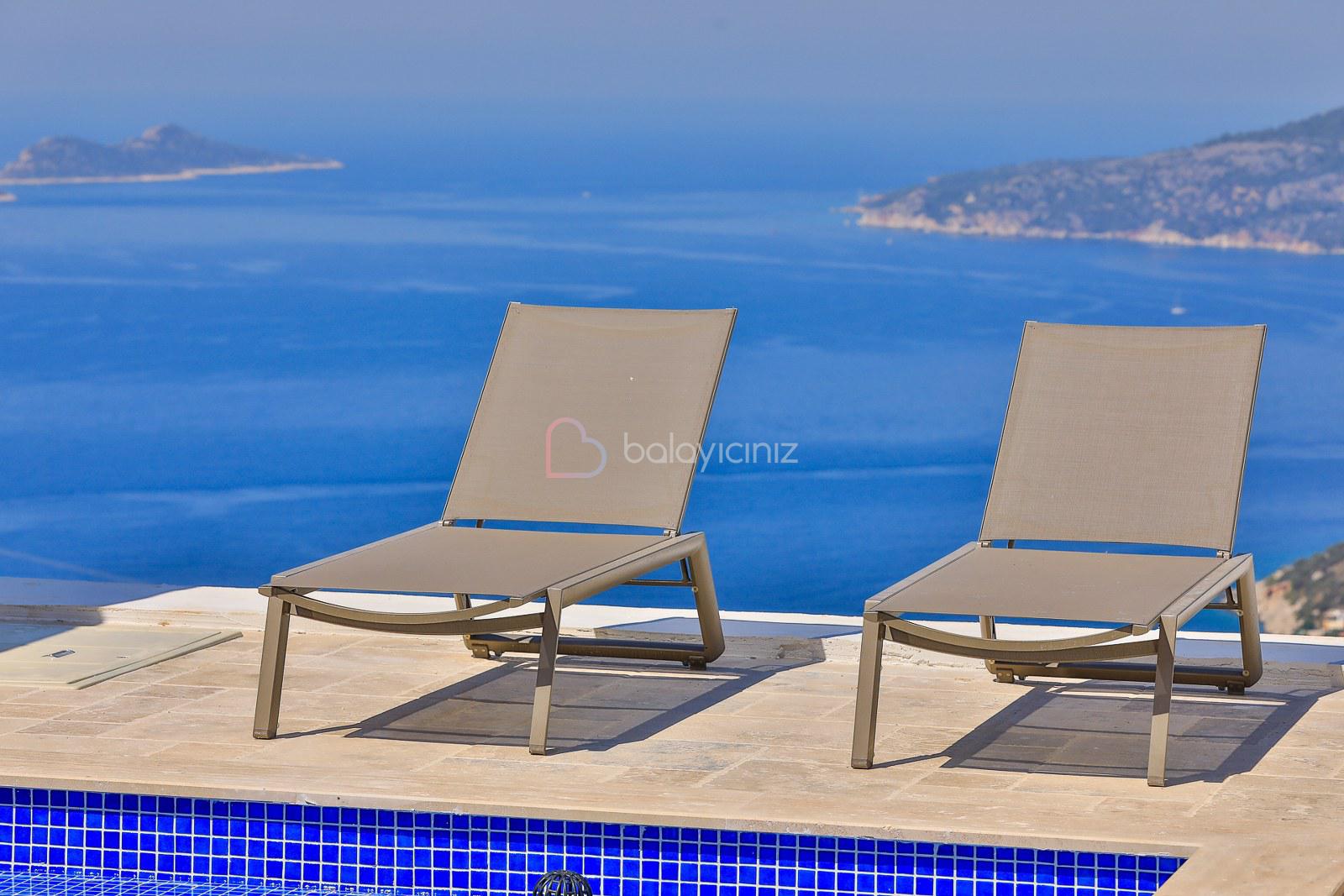 Havuz Terasında şezlong, şemsiye, oturma grubu, mangal bulunmaktadır.