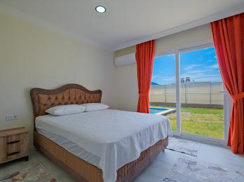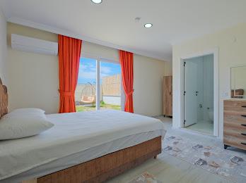 1. Yatak Odası: Çift kişilik yatak, klima, komodin, elbise dolabı, makyaj masası, banyo ve tuvalet bulunmaktadır.