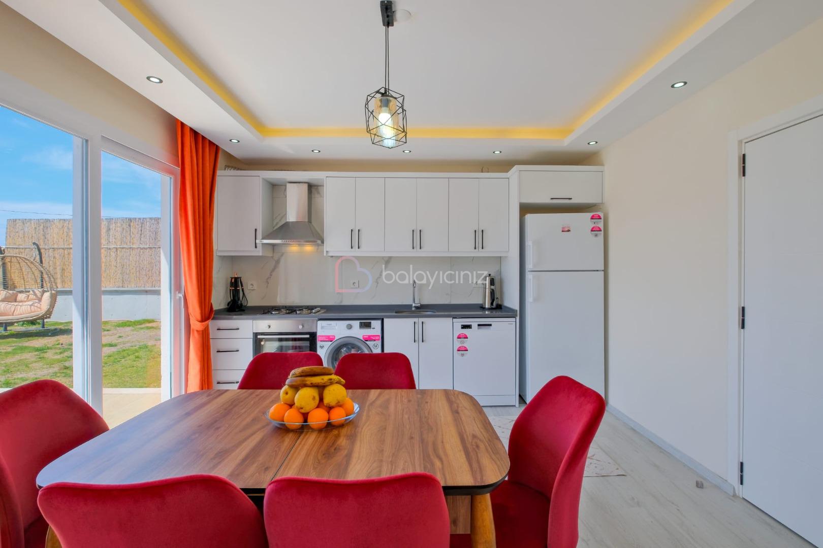 Buzdolabı, çamaşır makinesi, bulaşık makinesi fırın, 4 lü ocak, ketle, tost makinesi, yemek masası, tava & tencere vb. mutfak ekipmanları bulunmaktadır.