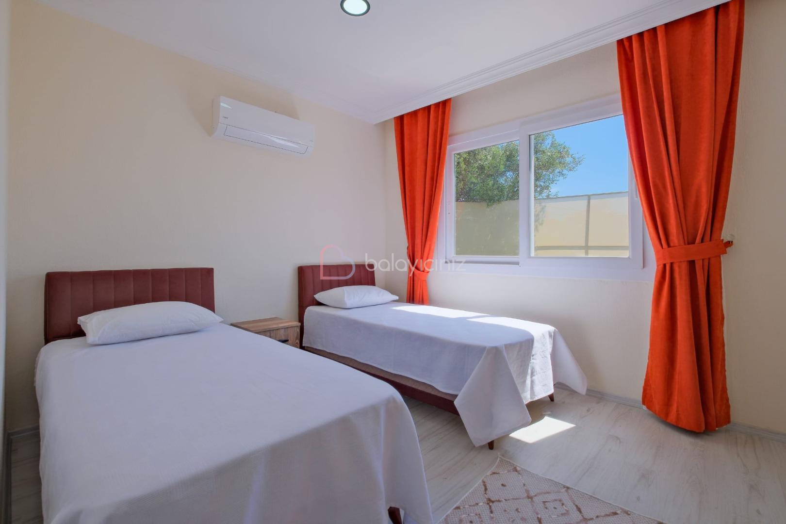 2. Yatak Odası: 2 adet tek kişilik yatak, klima, komodin, elbise dolabı, makyaj masası,tuvalet banyo ortak bulunmaktadır.