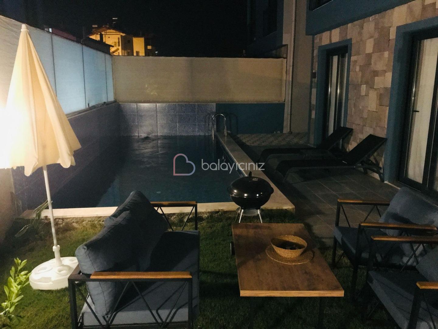Havuz terasında özel yüzme havuzu, şezlonglar, güneş şemsiyesi, bahçe oturma grubu, salıncak bulunmaktadır.