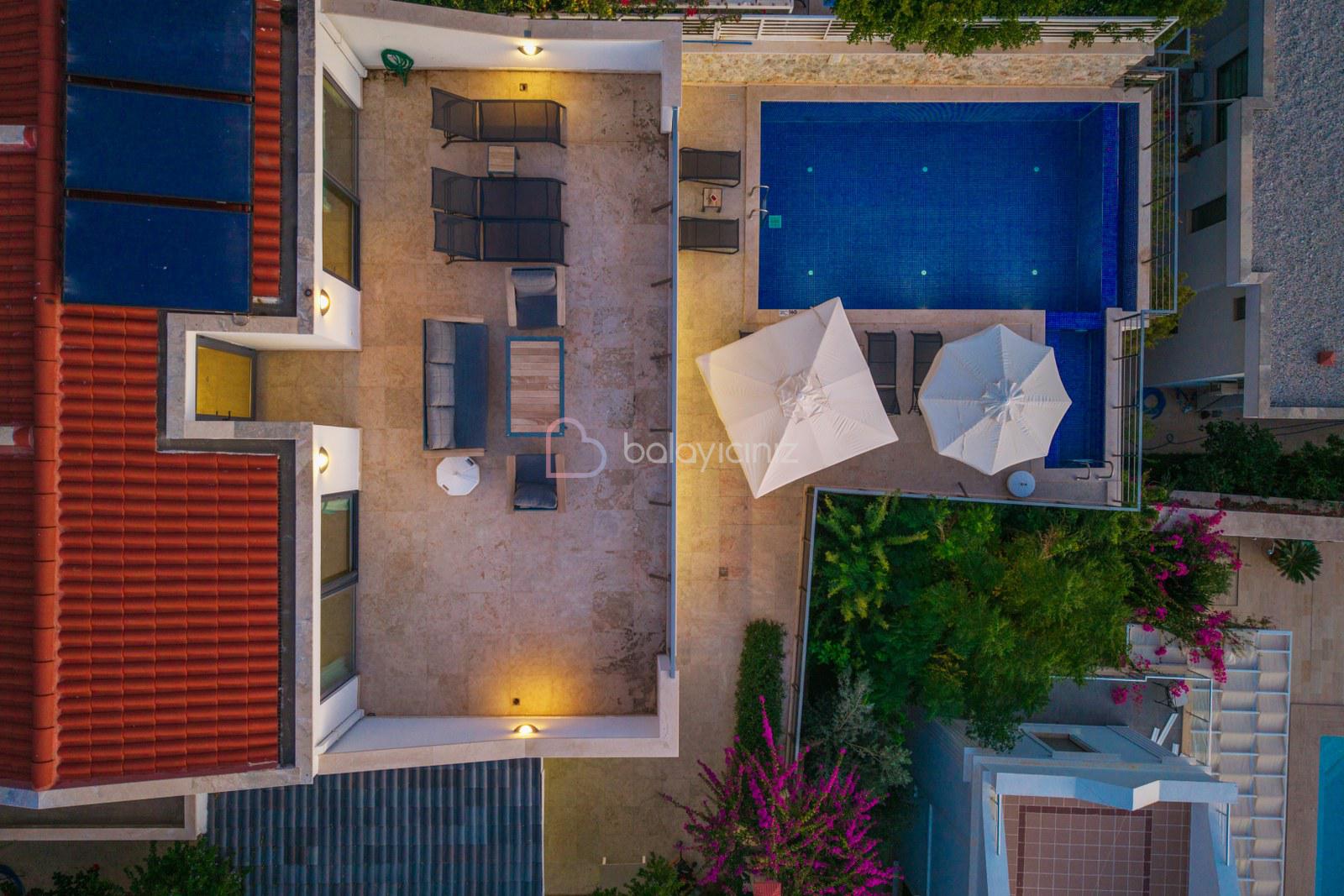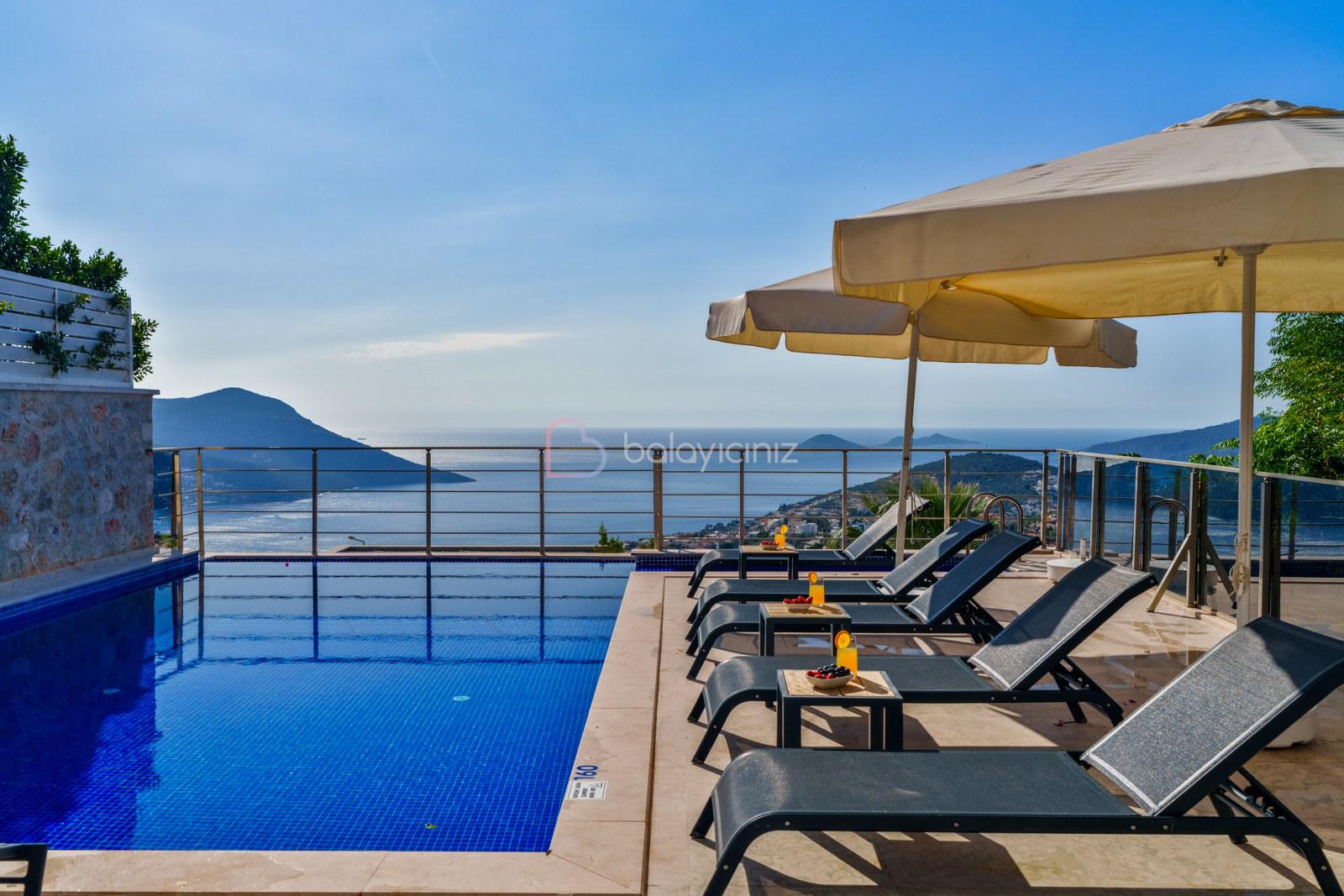 Villa Pine, Kalkan Kızıltaş mevkiinde bulunan muhteşem deniz ve panoramik Kalkan manzaralı, şehir merkezine oldukça yakın aynı zamanda da gürültüsünden uzak özel bir bölgededir. Oldukça geniş bir alan üzerinde bulunan villamızın her odasından deniz manzarasını görmeniz mümkündür. 5 yatak odalı 10 kişi kapasiteye sahip villamız geniş aileler, arkadaş grupları için ideal villa seçeneklerimizdendir. Muhteşem Kalkan manzaralı villamız da tatiliniz boyunca rahat edebilmeniz adına düşünülmüş her türlü imkân sunulmaktadır. Konforunuz için her şeyin düşünüldüğü Villa Pine ‘in bahçe alanında çocuklarınızın eğlenceli vakitler geçirebileceği geniş bir çim alan ve çocuk yüzme havuzu da bulunmaktadır.