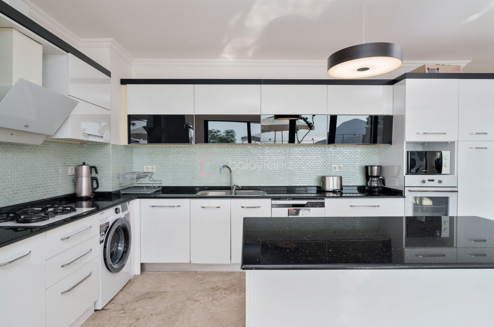 Deniz ve adalar manzaralı Modern Mutfak, Buzdolabı, Bulaşık Makinesi, Çamaşır Makinesi, Fırın, 4’lü Ocak (ankastre), Elektrikli Su Isıtıcı, Yemek takımı, Tava, Tencereler, Çatal Bıçak vb.