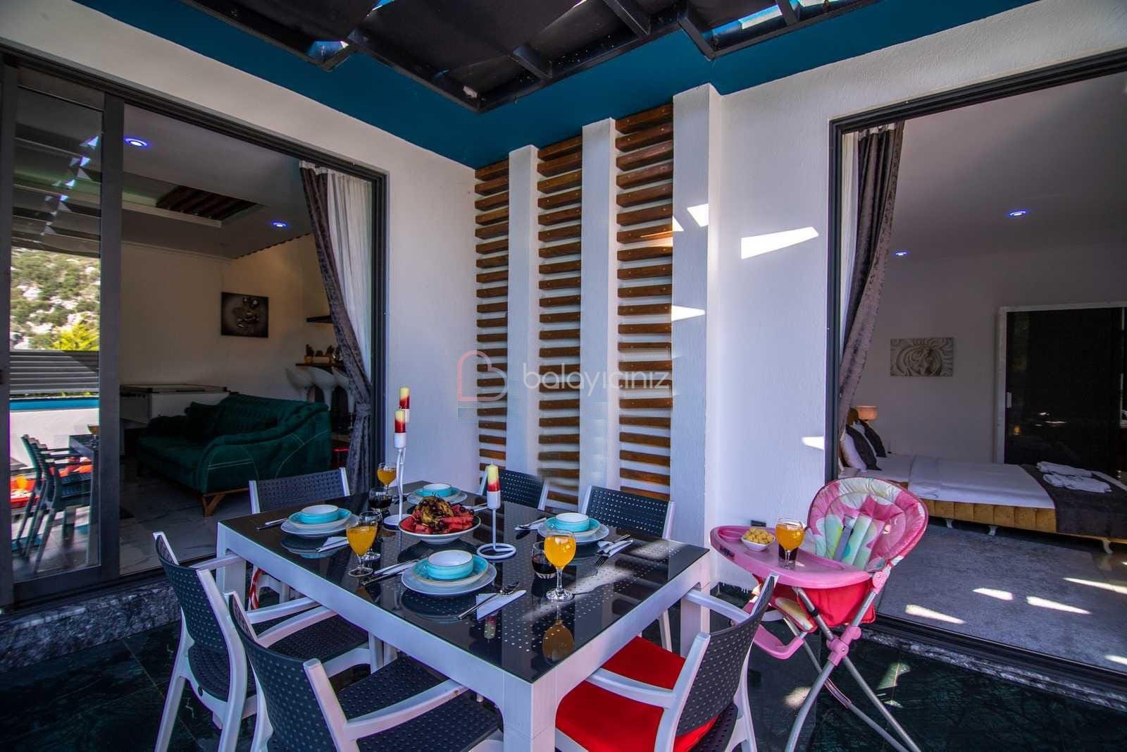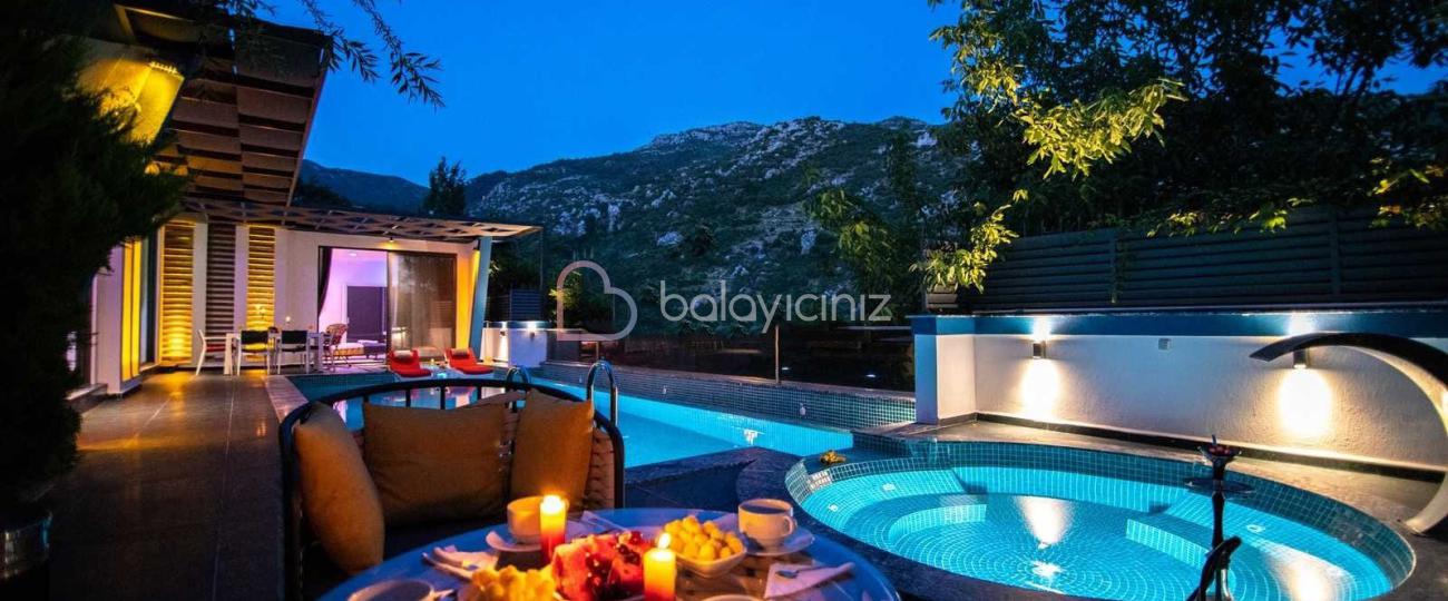 Yemek HizmetiVilla Rixos 1,Kalkan mahallesinin İslamlar mevkiinde doğa ile iç içe konum almaktadır. Villamız panoramik doğa manzarasına sahiptir. Müstakil, özel yüzme havuzunun etrafı yabancı gözlerden uzak, muhafazakâr bir villadır. Bahçe alanında masa tenisi, oturma odasında langırt bulunmaktadır. Villa Rixos 1, 2 yatak odasına sahiptir ve 4 kişinin konaklayabileceği kapasiteye göre modern ve şık dekore edilmiştir. Ebeveyn yatak odasında jakuzi bulunmaktadır. Balayı çiftlerimiz ve çekirdek ailelerimiz için lüks bir tatil fırsatı oluşturmaktadır. Villa Rixos 1, siz değerli misafirlerimize doğa içerisinde huzur dolu bir tatil için kapılarını aralamaktadır.