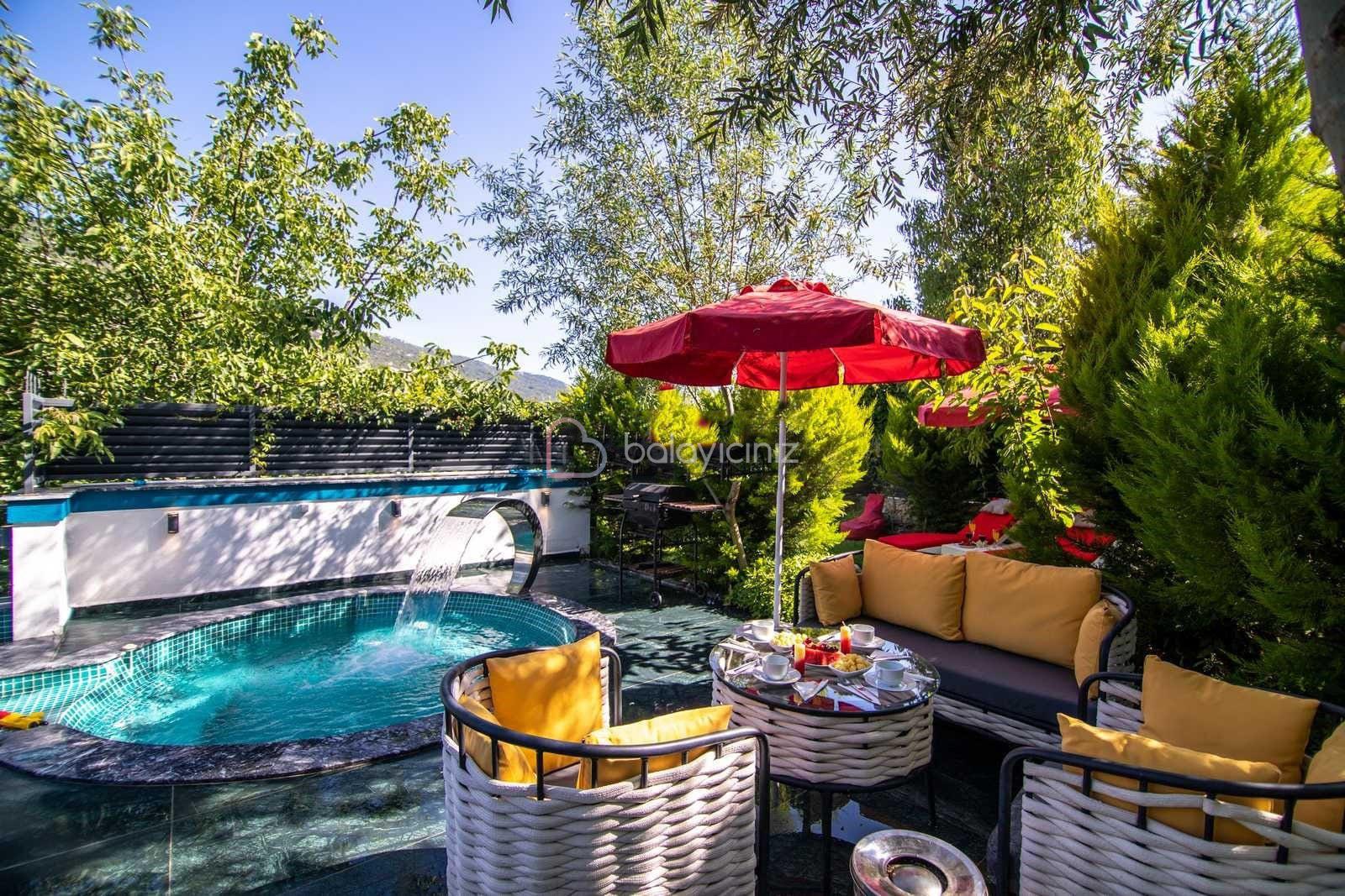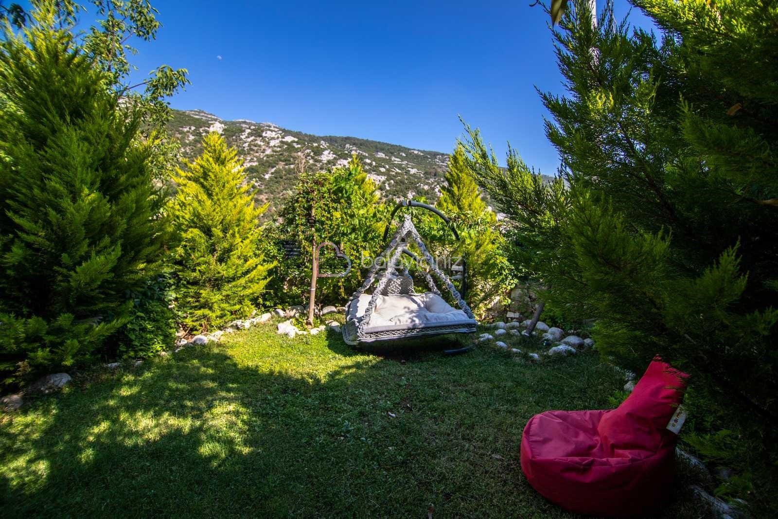 Bahçe içerisinde güneşlenme terası, özel yüzme havuzu, şezlonglar, güneş şemsiyesi, masa tenisi, 4 kişilik bahçe yemek masası ve sandalyeler, salıncak ve mangal bulunmaktadır.