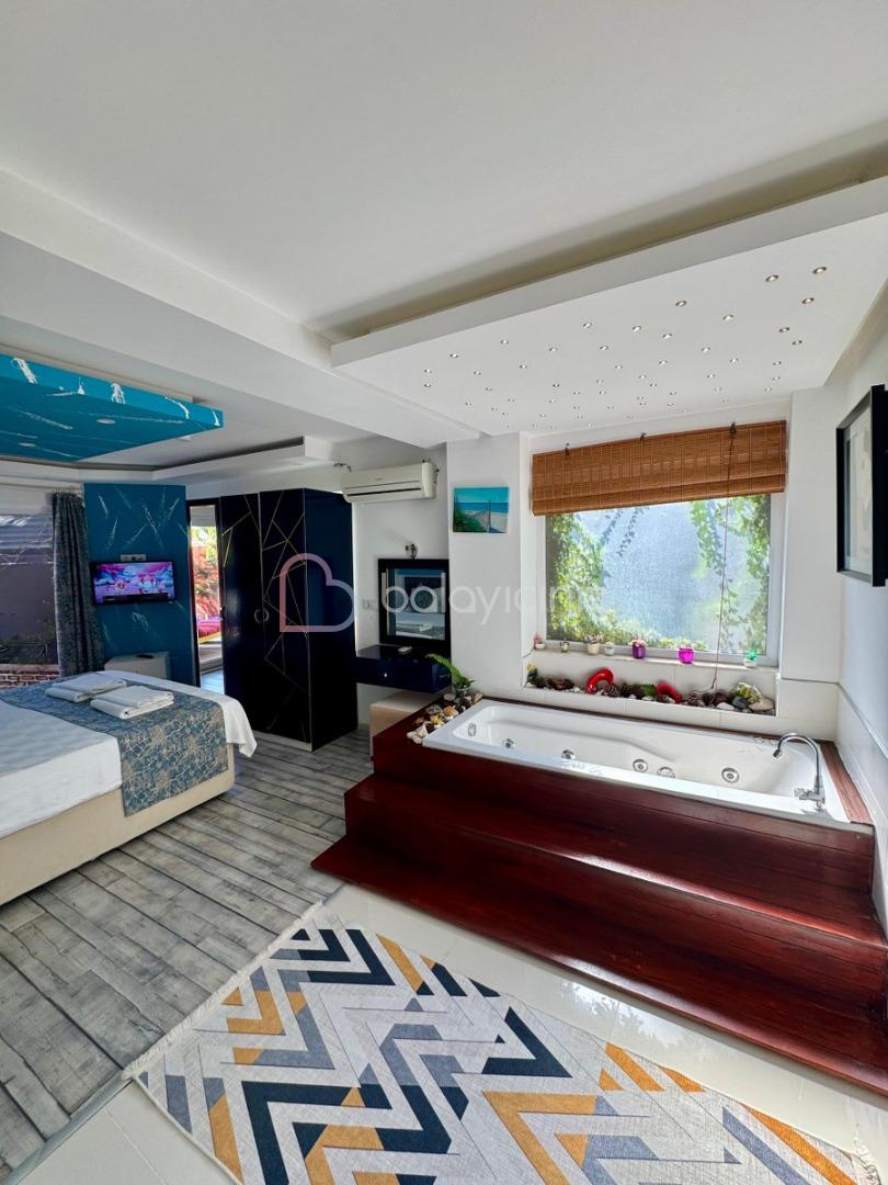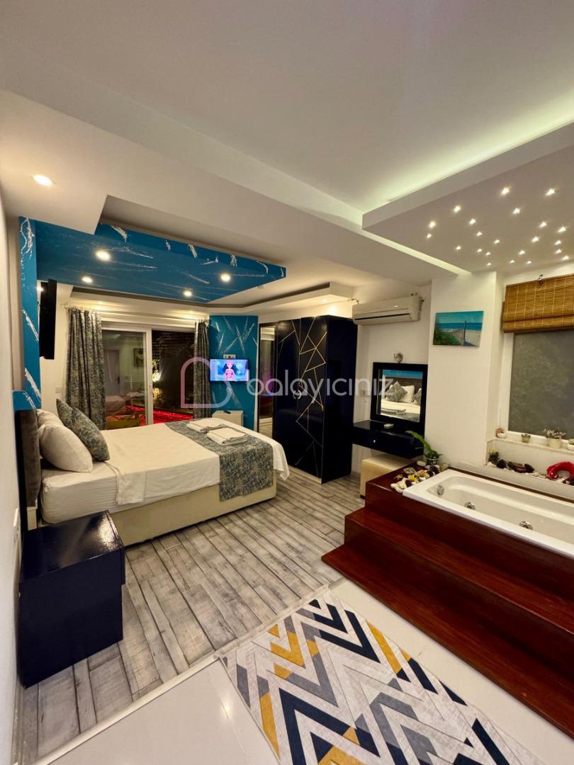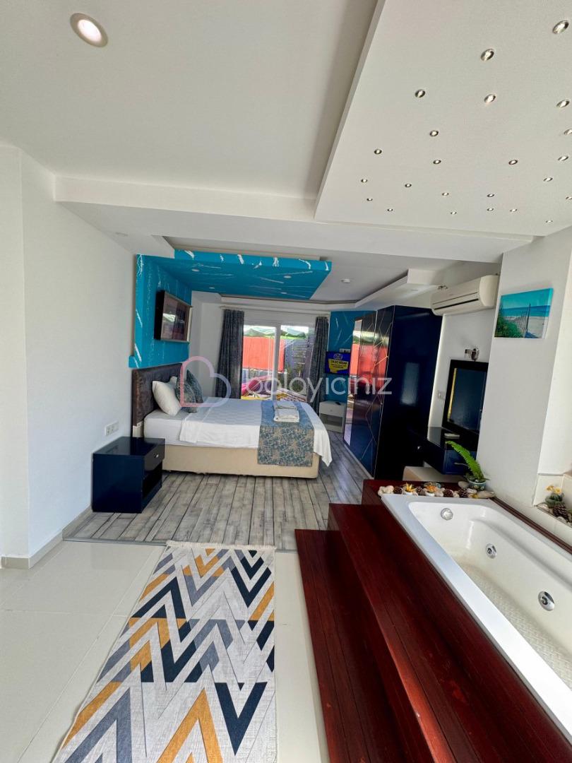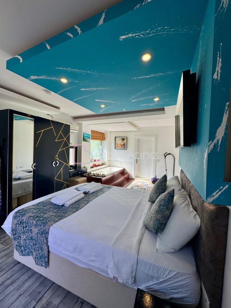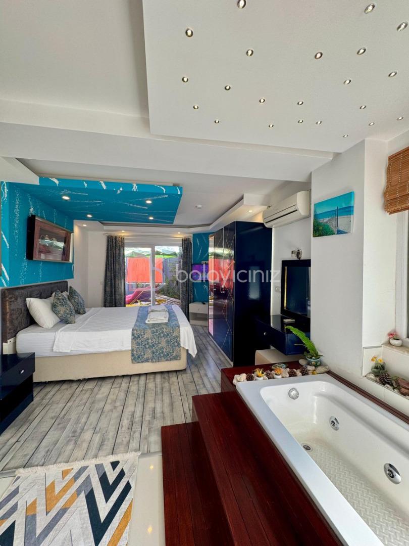 1. Yatak Odası: 1 adet çift kişilik yatak, klima, komodin, makyaj masası, elbise dolabı, jakuzi ve banyo tuvalet bulunmaktadır.
