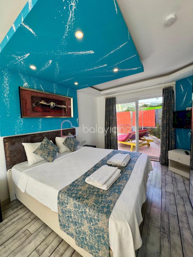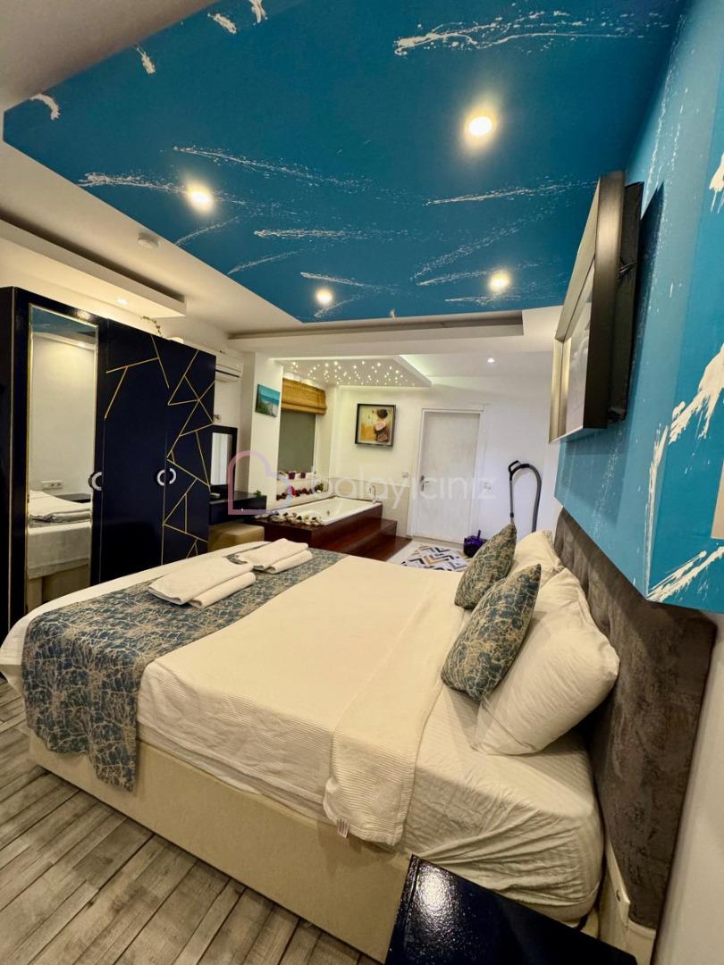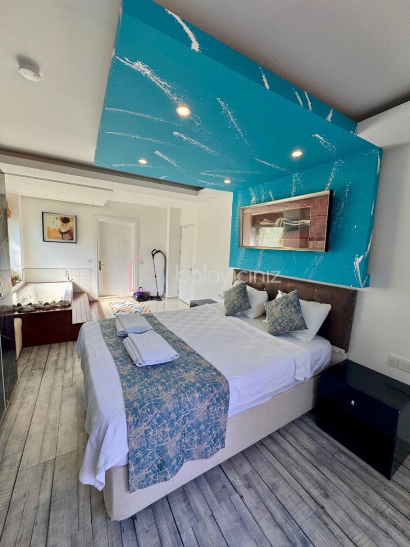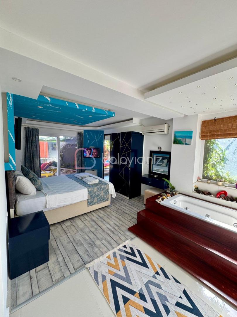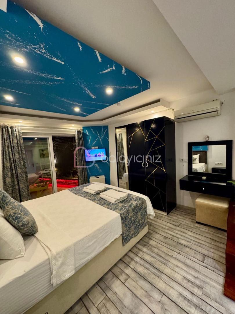 1. Yatak Odası: 1 adet çift kişilik yatak, klima, komodin, makyaj masası, elbise dolabı, jakuzi ve banyo tuvalet bulunmaktadır.