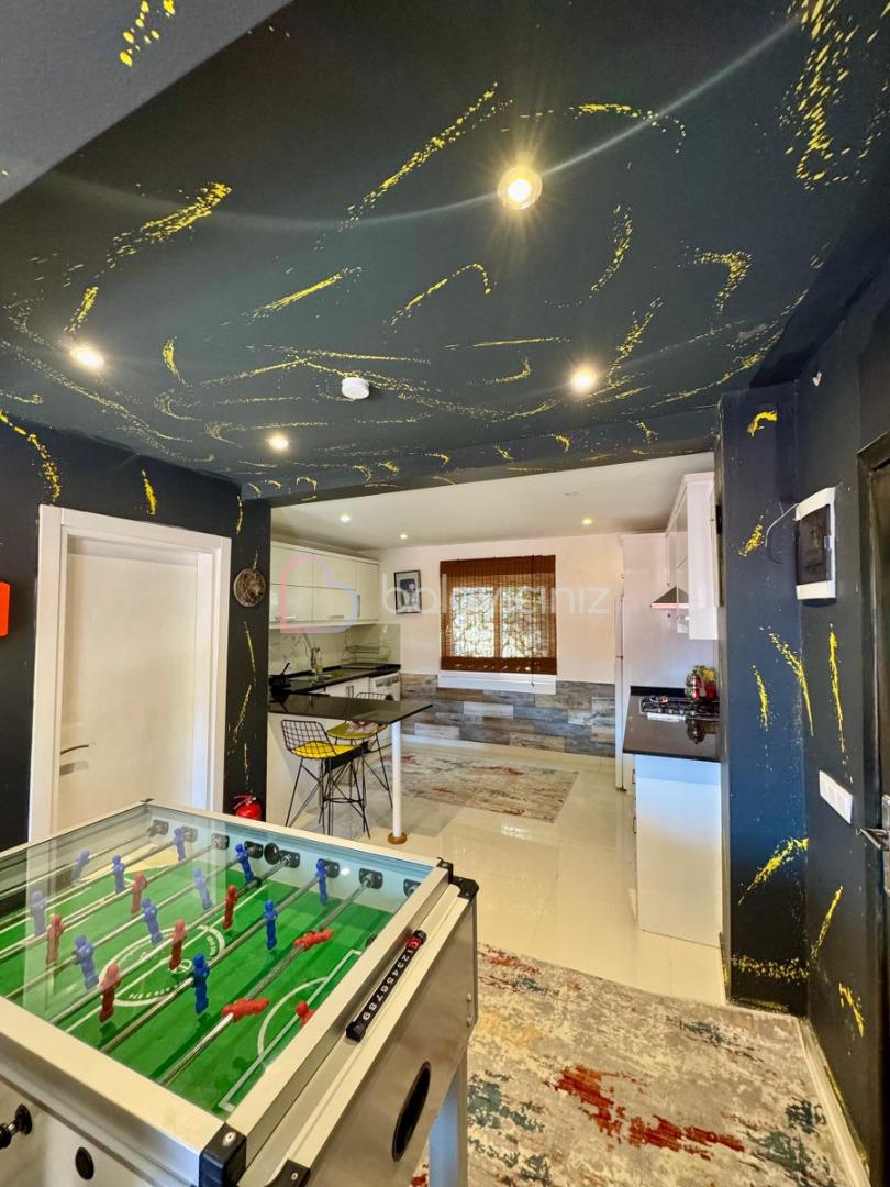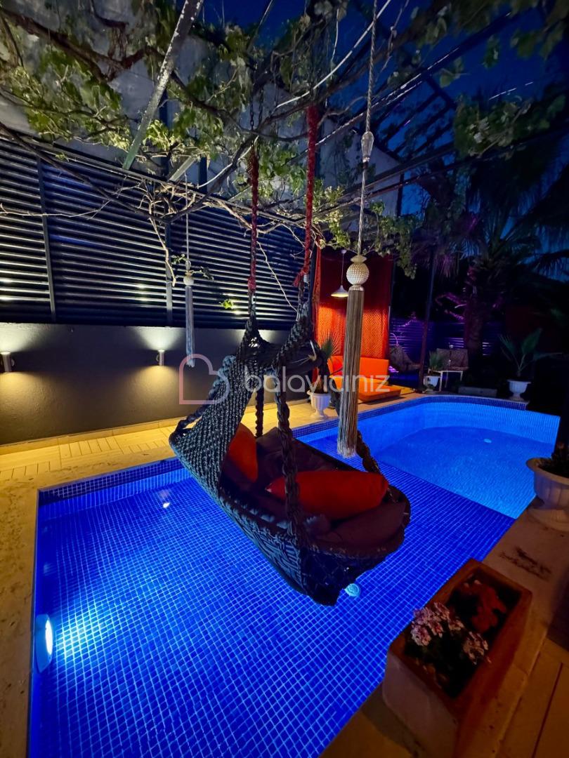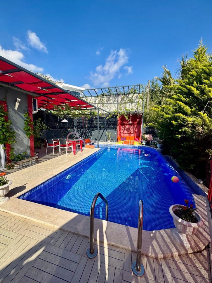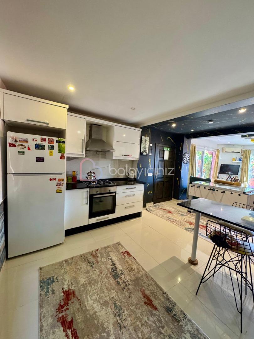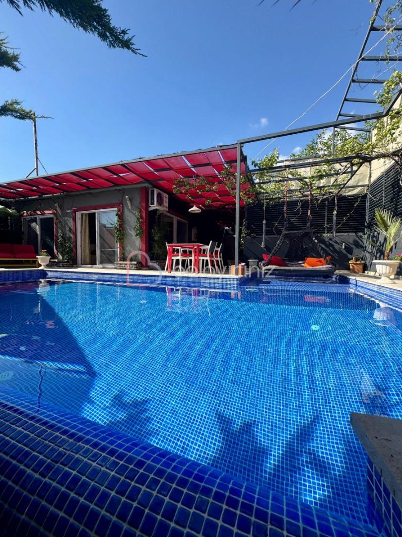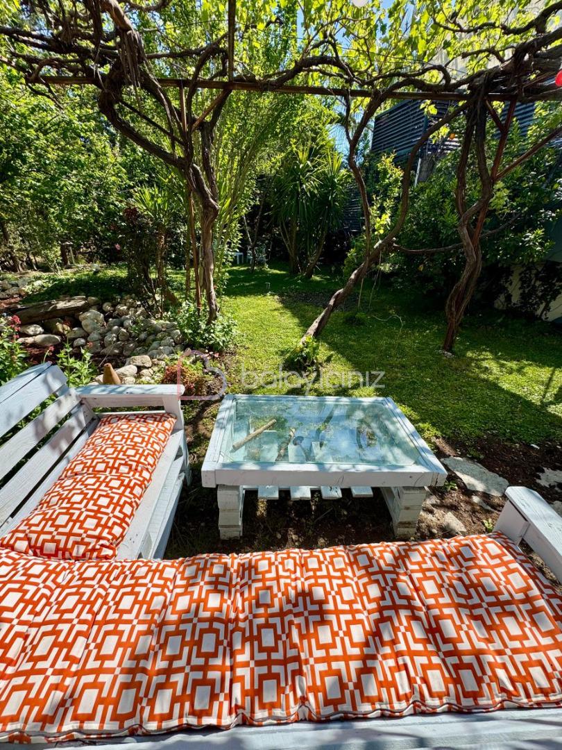 Bahçe içerisinde güneşlenme terası, özel yüzme havuzu, şezlonglar, güneş şemsiyesi, langırt, 4 kişilik bahçe yemek masası ve sandalyeler, salıncak ve mangal bulunmaktadır.