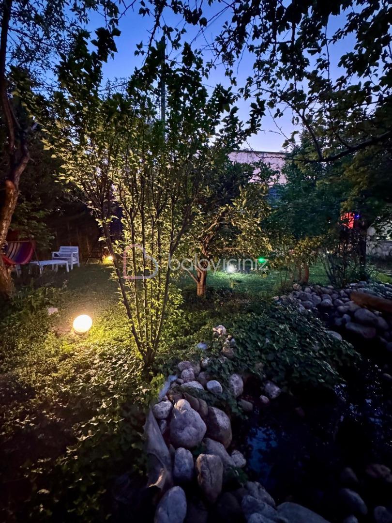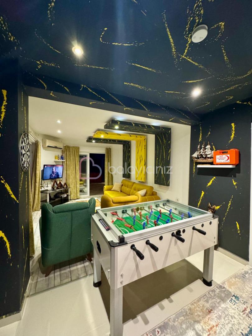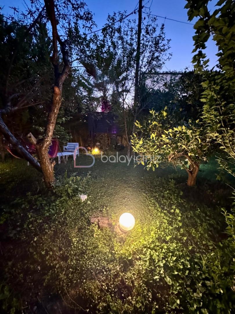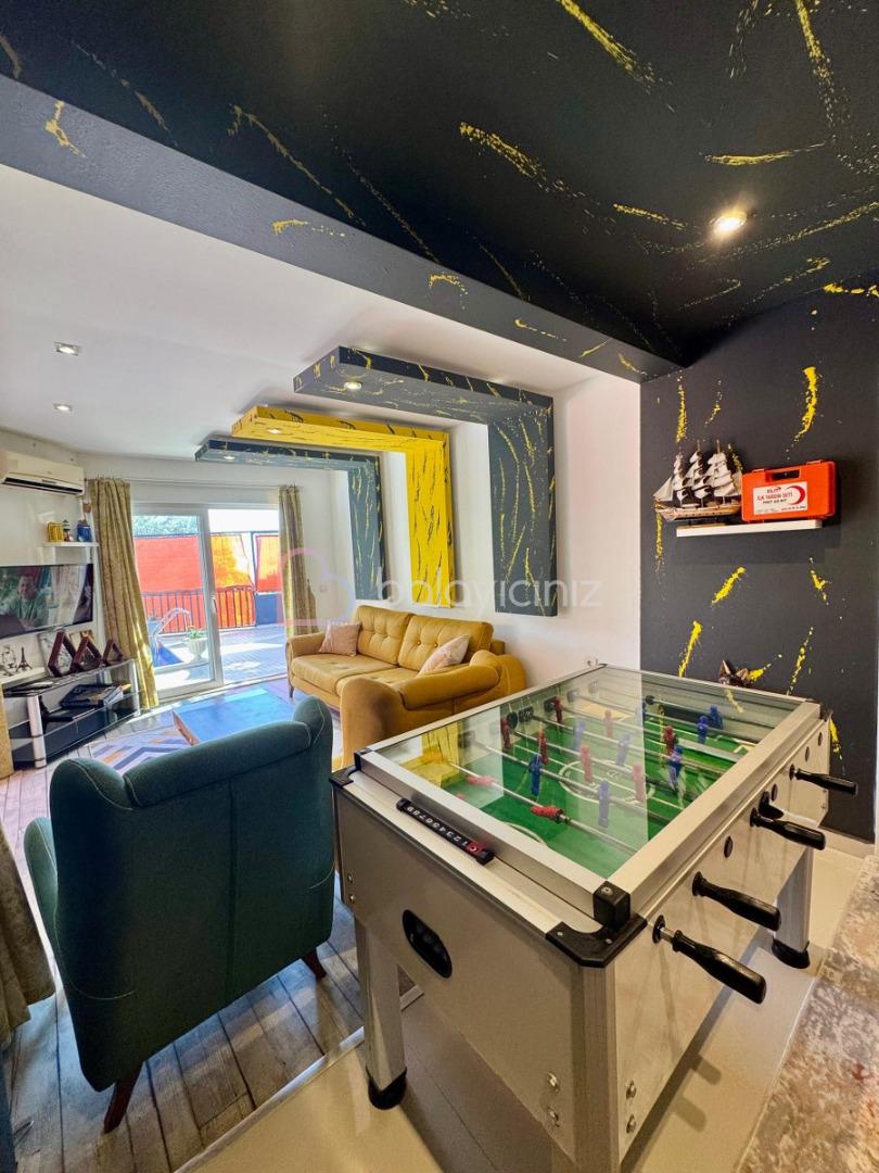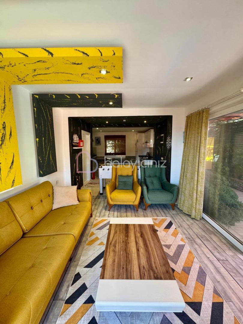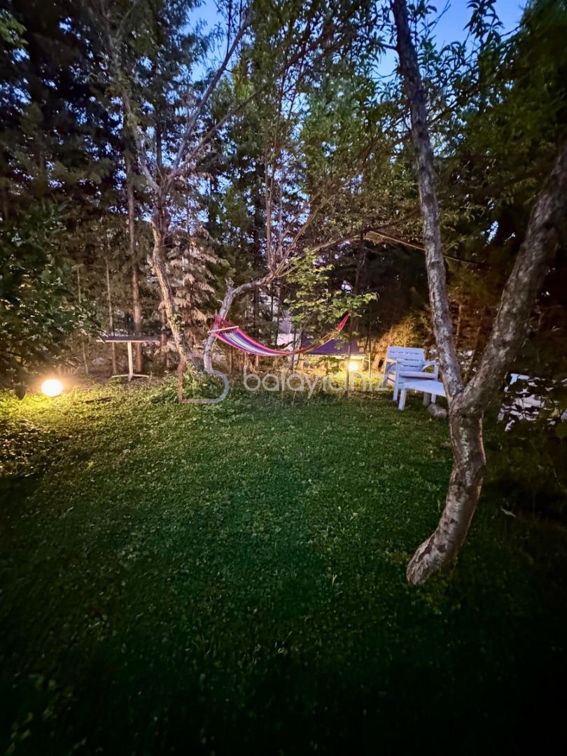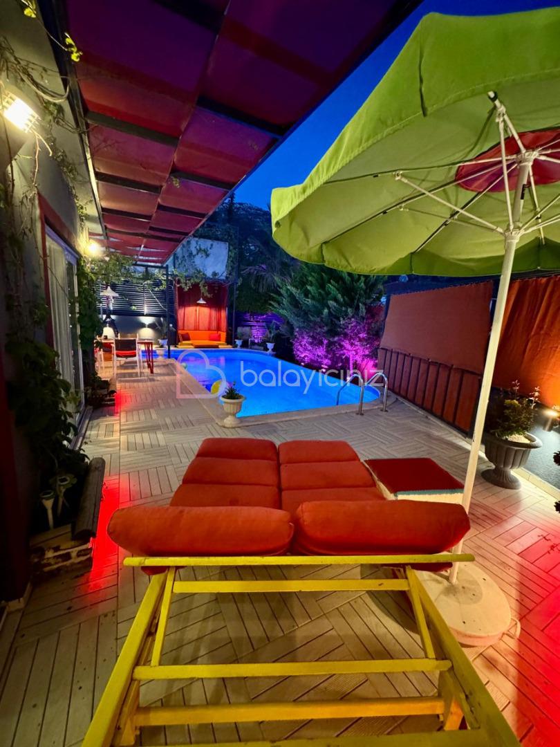 Bahçe içerisinde güneşlenme terası, özel yüzme havuzu, şezlonglar, güneş şemsiyesi, langırt, 4 kişilik bahçe yemek masası ve sandalyeler, salıncak ve mangal bulunmaktadır.