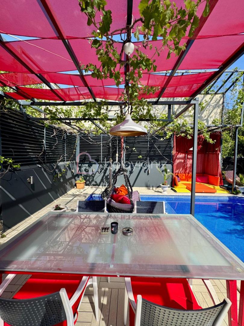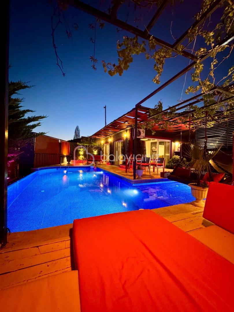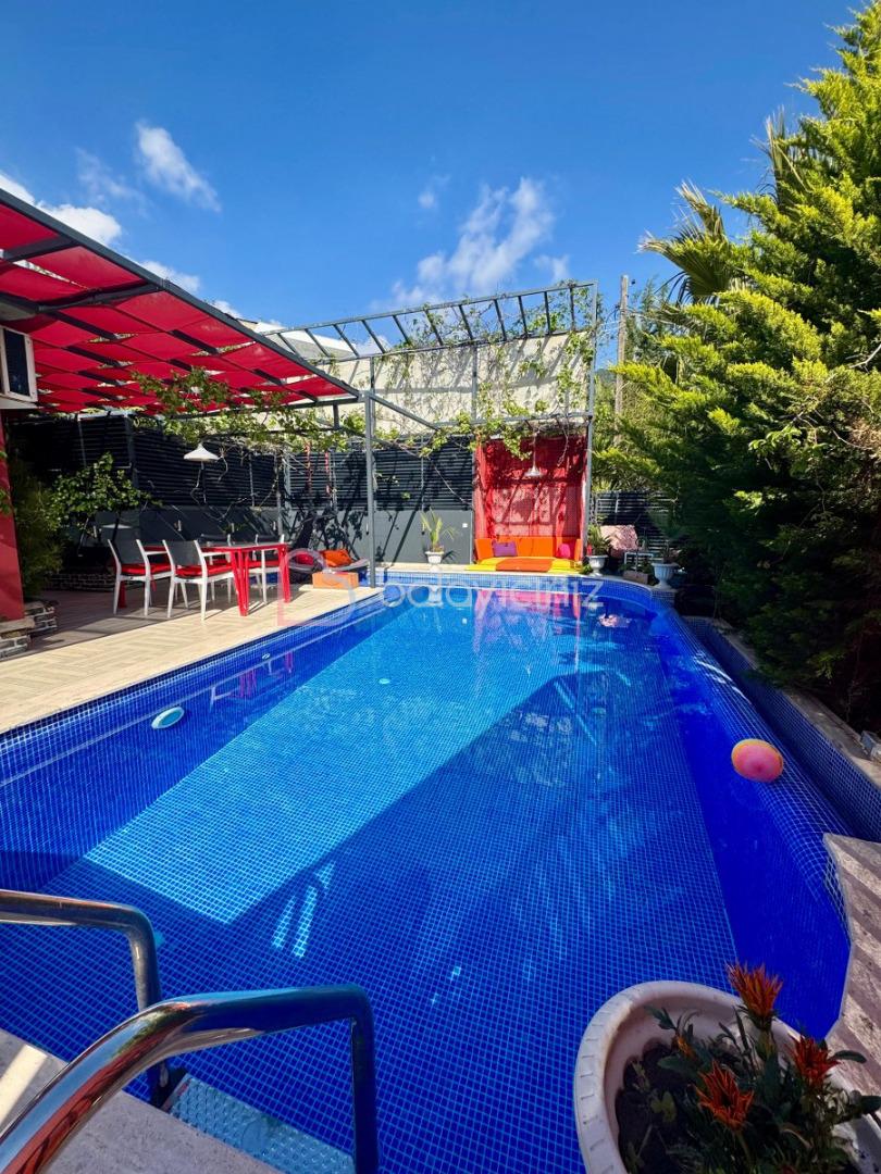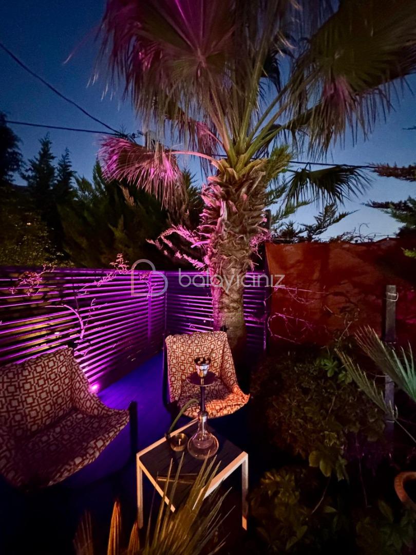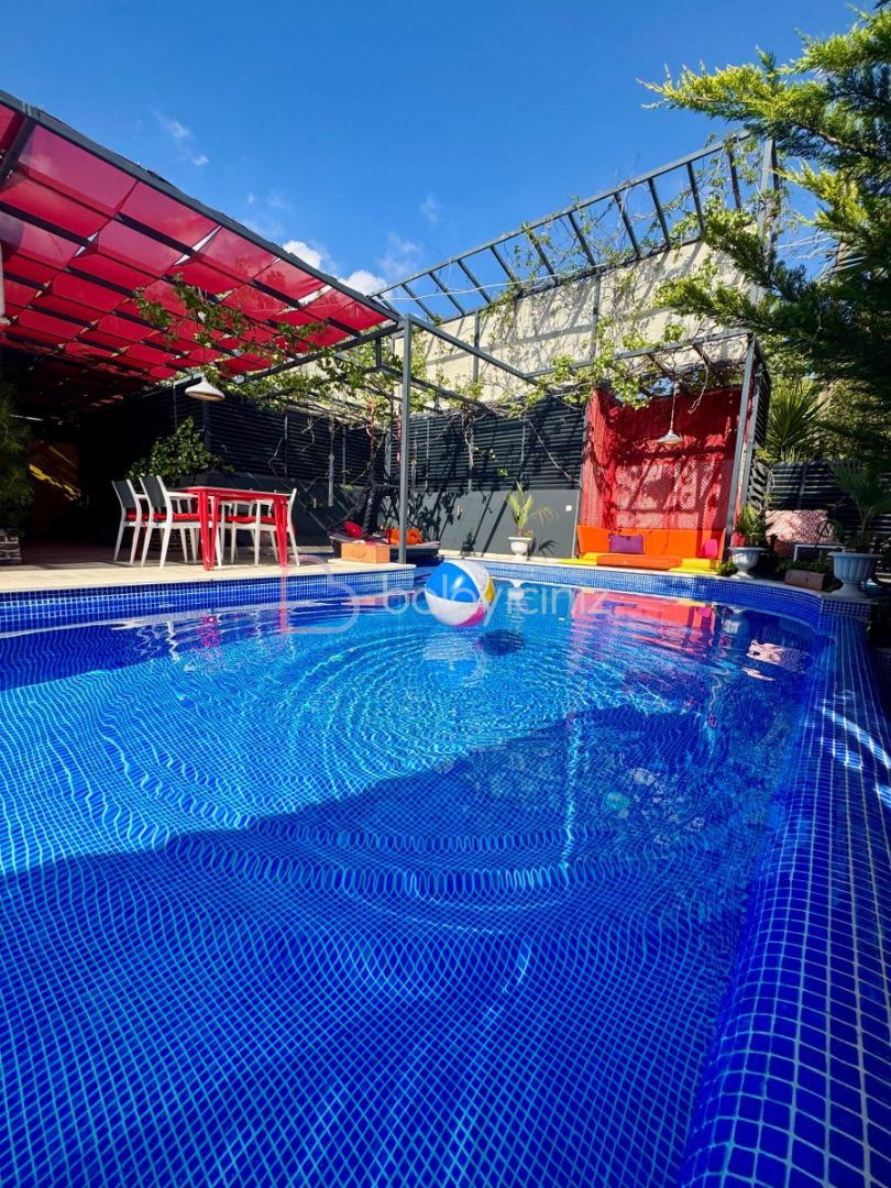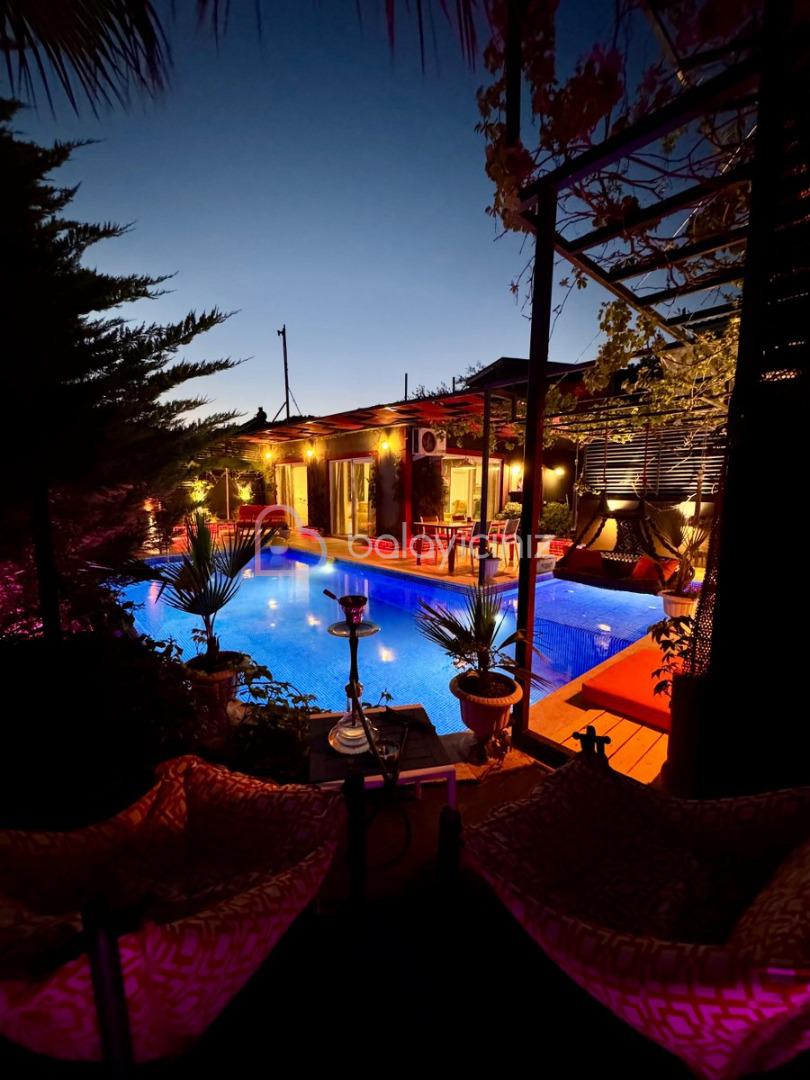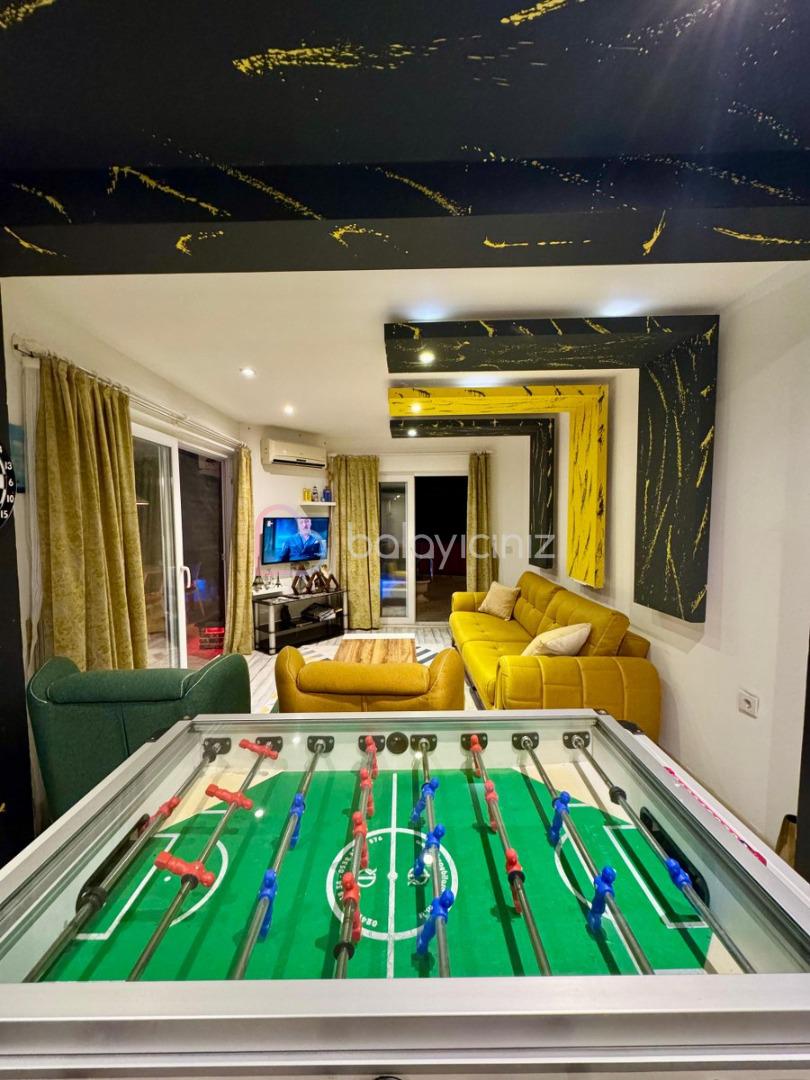 Bahçe içerisinde güneşlenme terası, özel yüzme havuzu, şezlonglar, güneş şemsiyesi, langırt, 4 kişilik bahçe yemek masası ve sandalyeler, salıncak ve mangal bulunmaktadır.