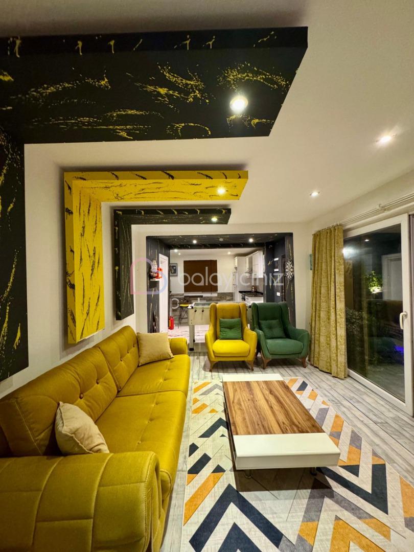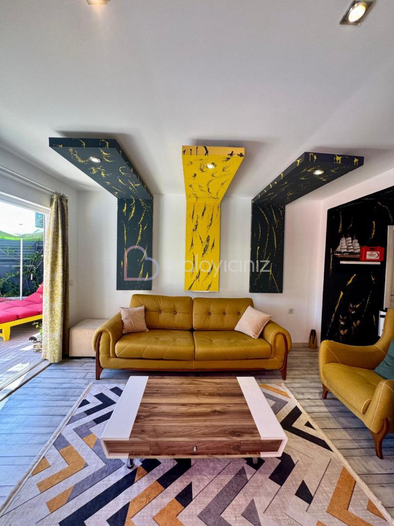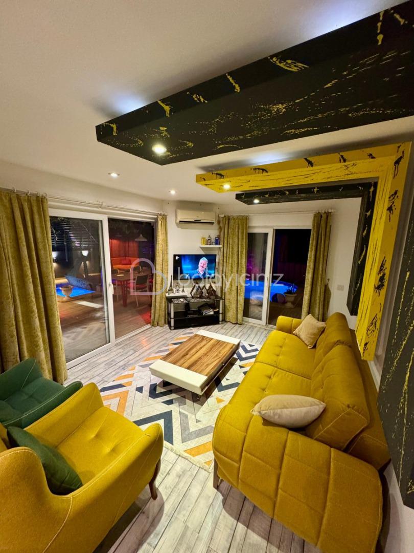 Villamızın salonunda; oturma grubu, klima, sehpa, televizyon, uydu alıcı ve kablosuz modem yer almaktadır.